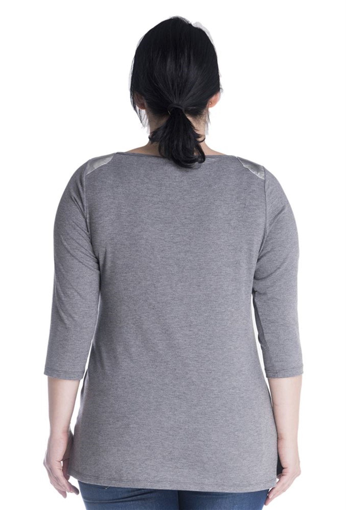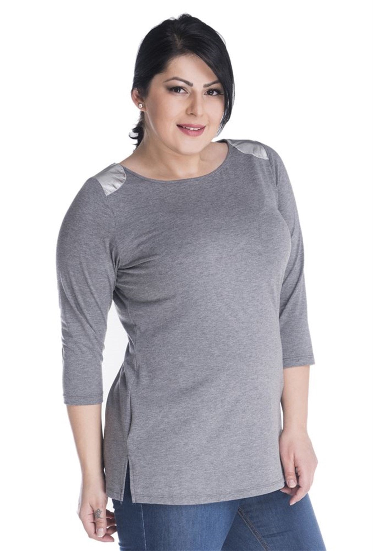 3/4 Kollu Omuz Garnili Tişört