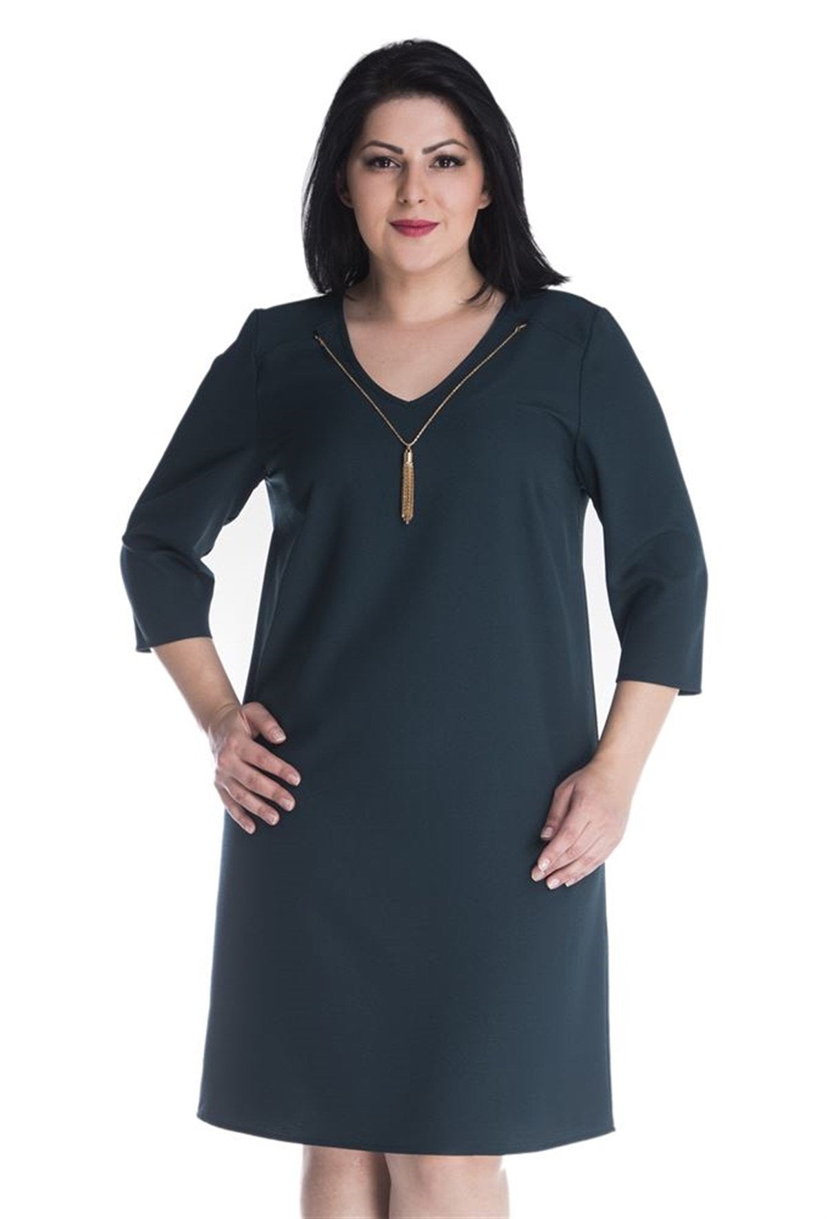 3/4 Kollu V Yakalı Kolyeli Elbise