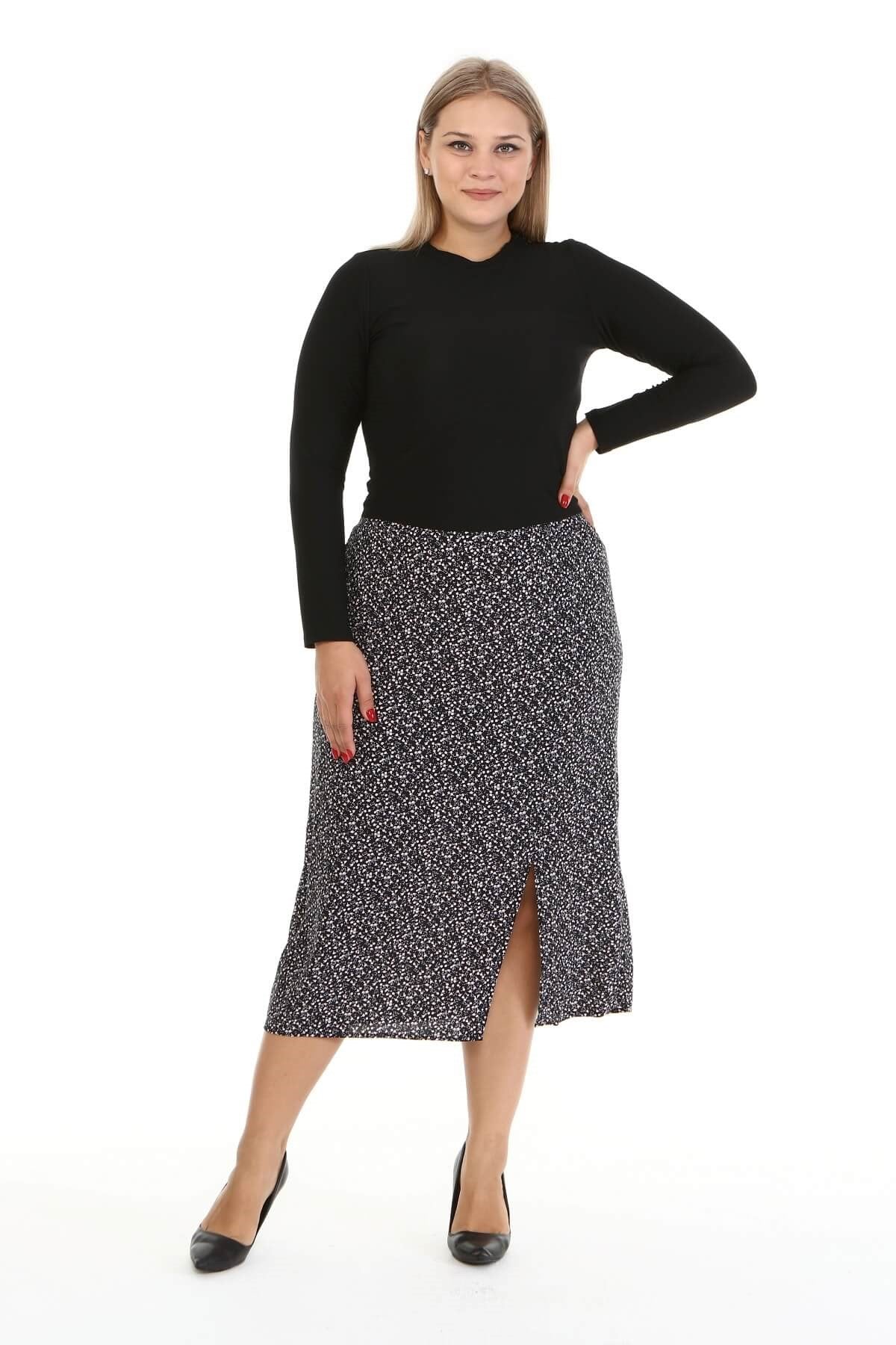 Arka Beli Lastikli Yırtmaçlı Etek