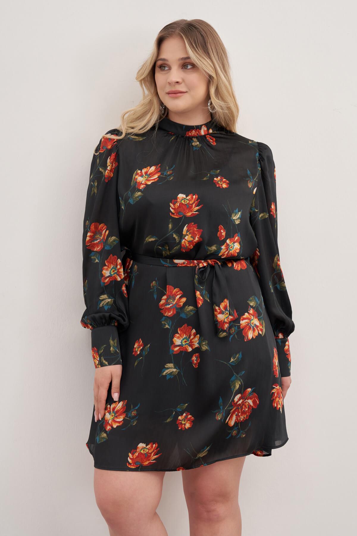 Astarlı Saten Kuşak Detaylı Elbise