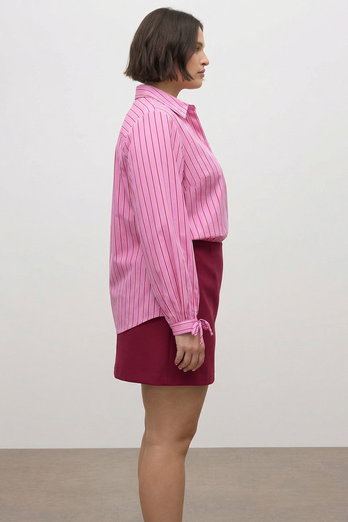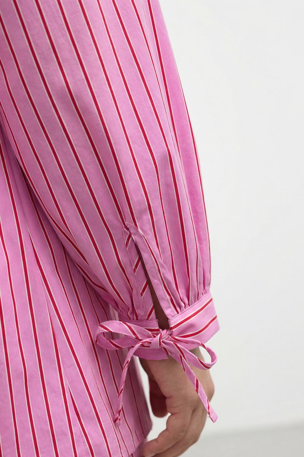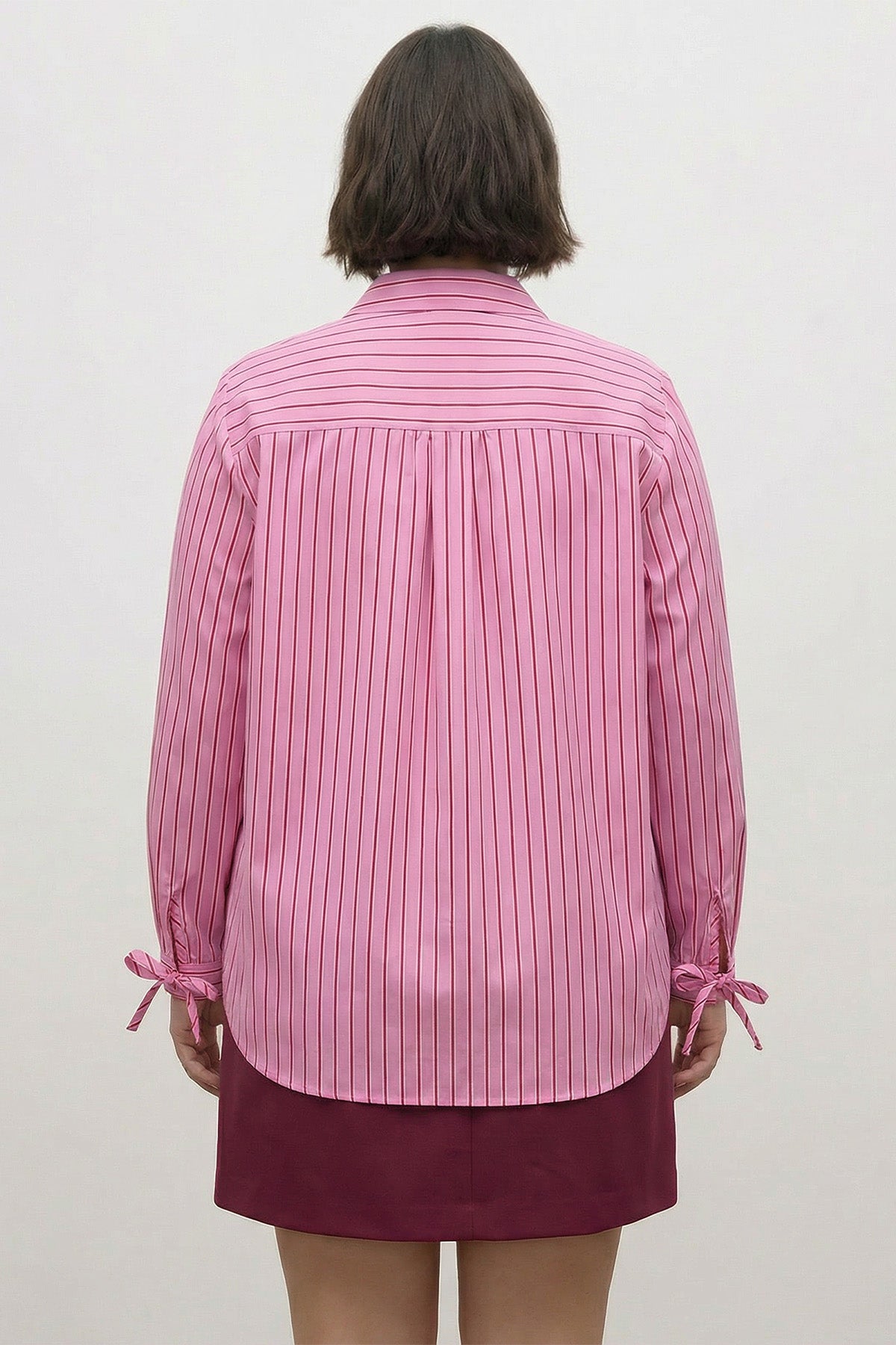 Bağcıklı Kol Detaylı Çizgili Gömlek