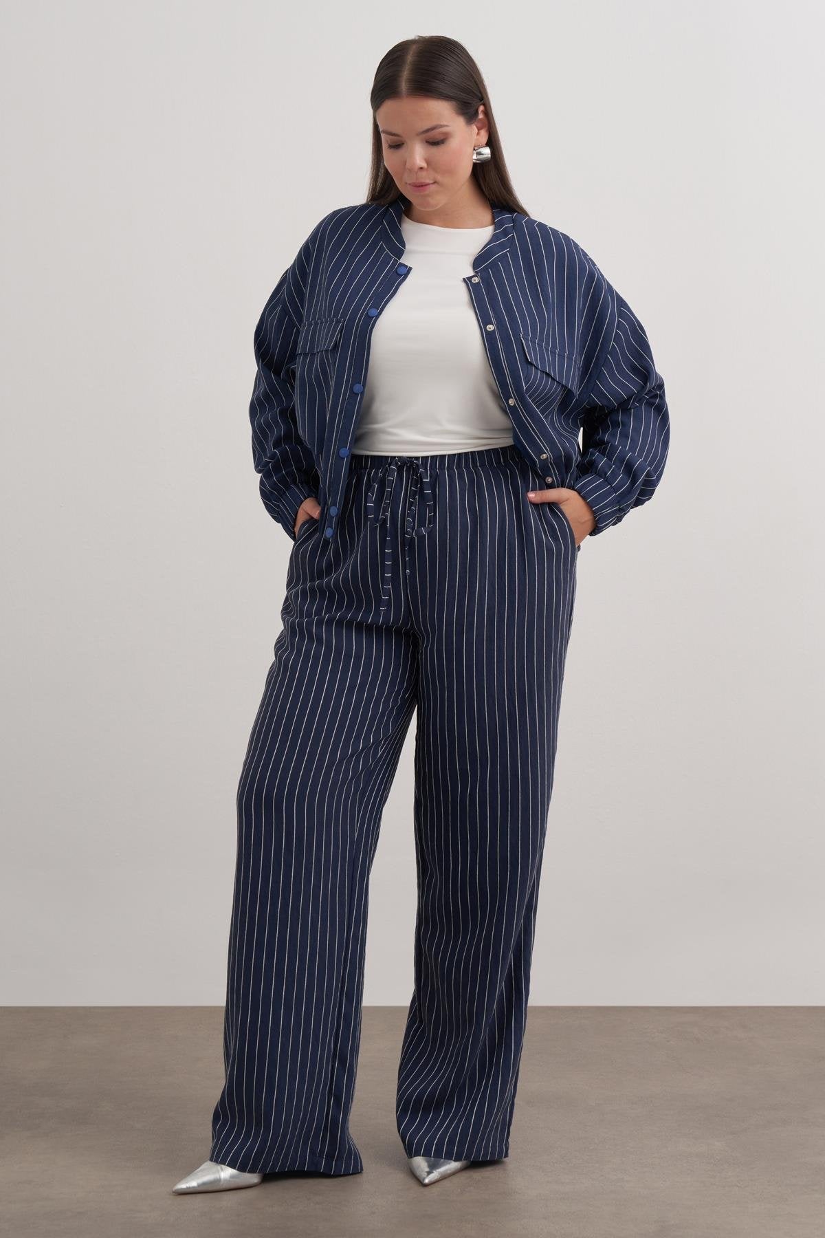 Beli Bağcıklı Düz Kesim Pantolon