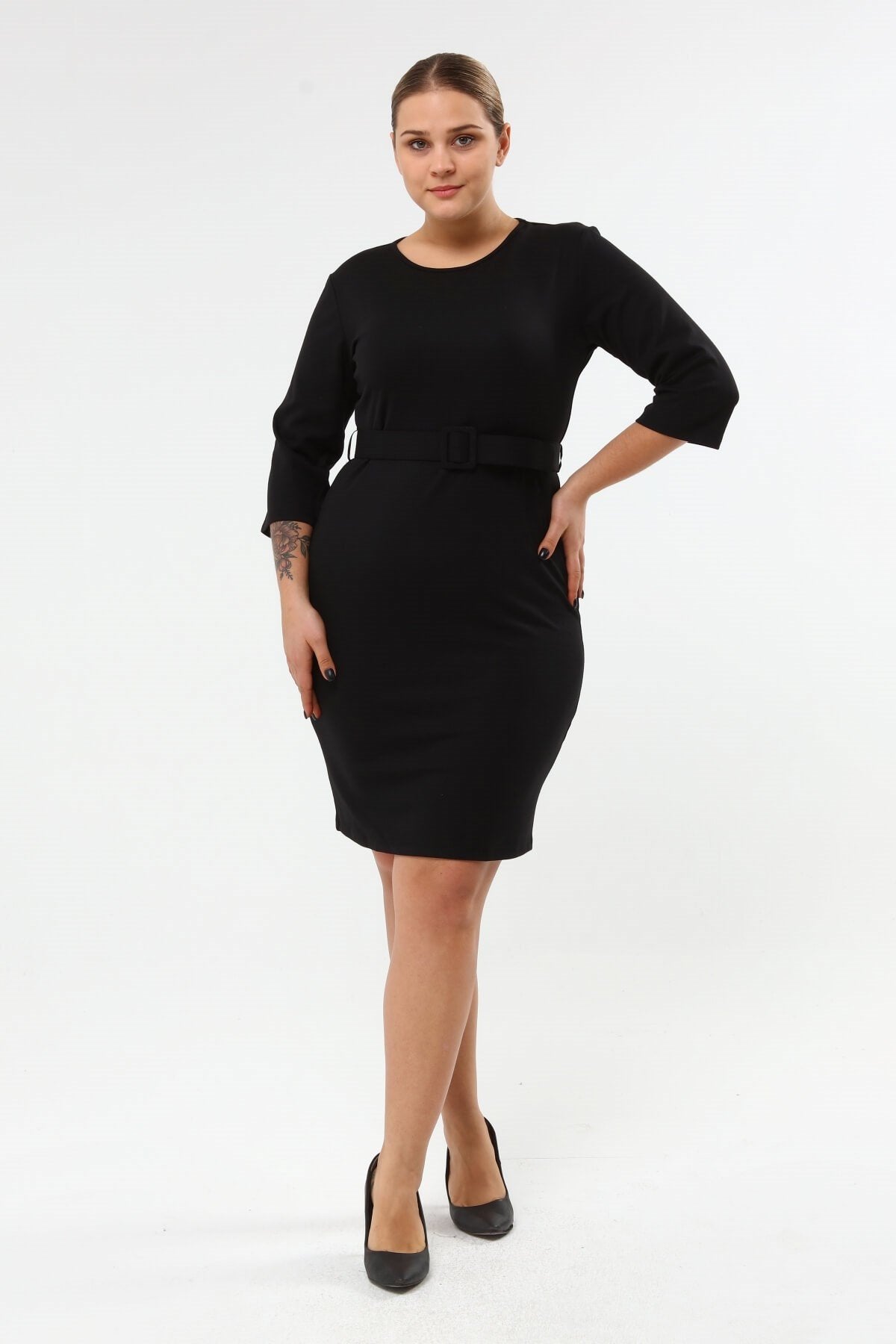 Beli Kemerli Örme Elbise