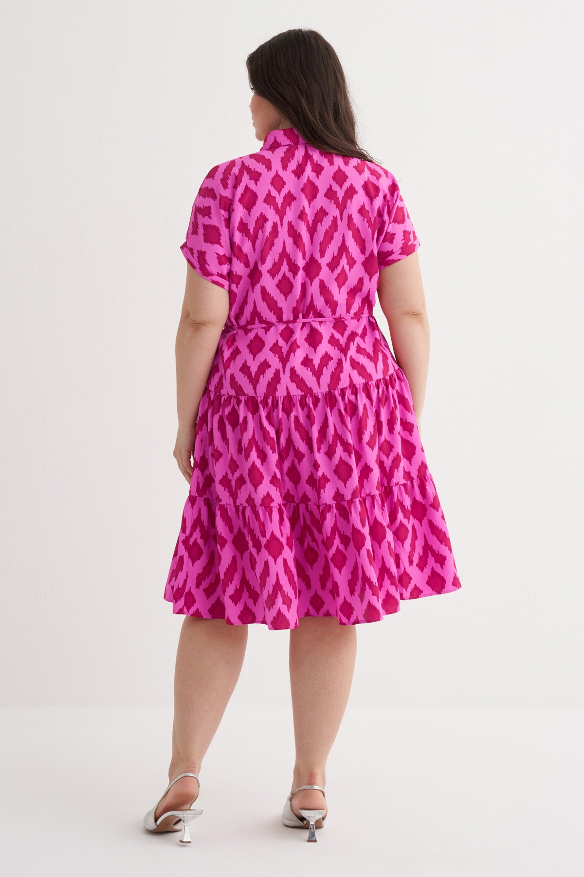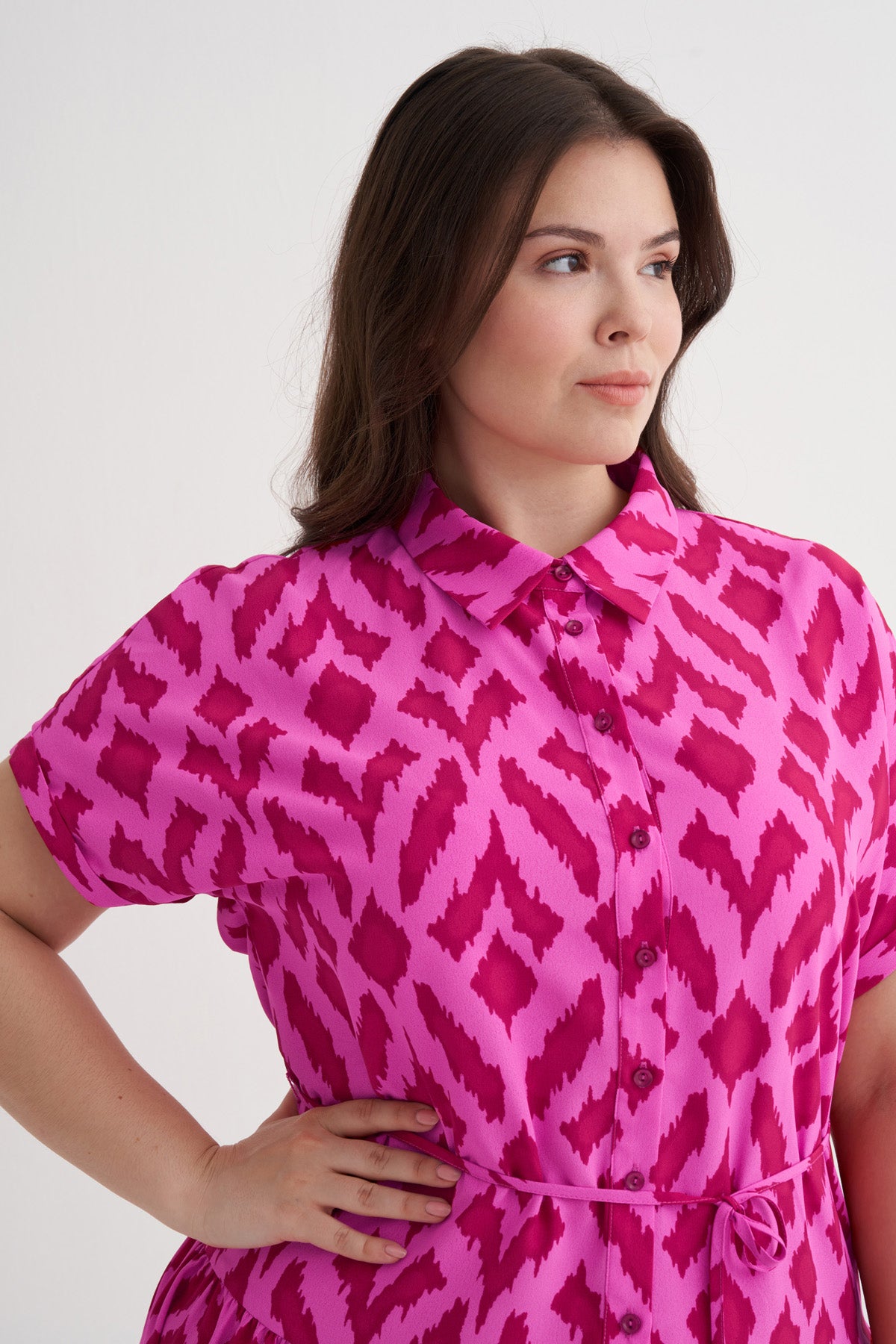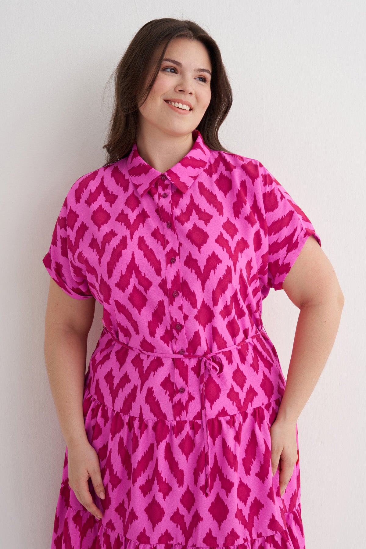 Beli Kuşaklı Desenli Gömlek Elbise