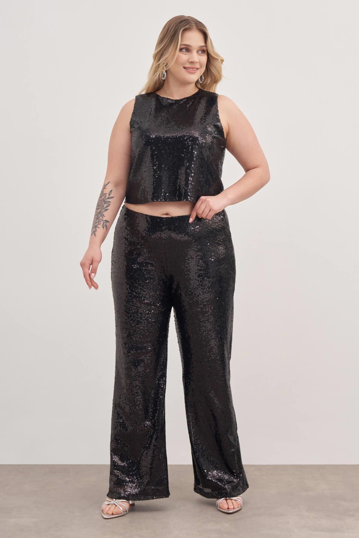 Beli Lastikli Astarlı Payetli Pantolon
