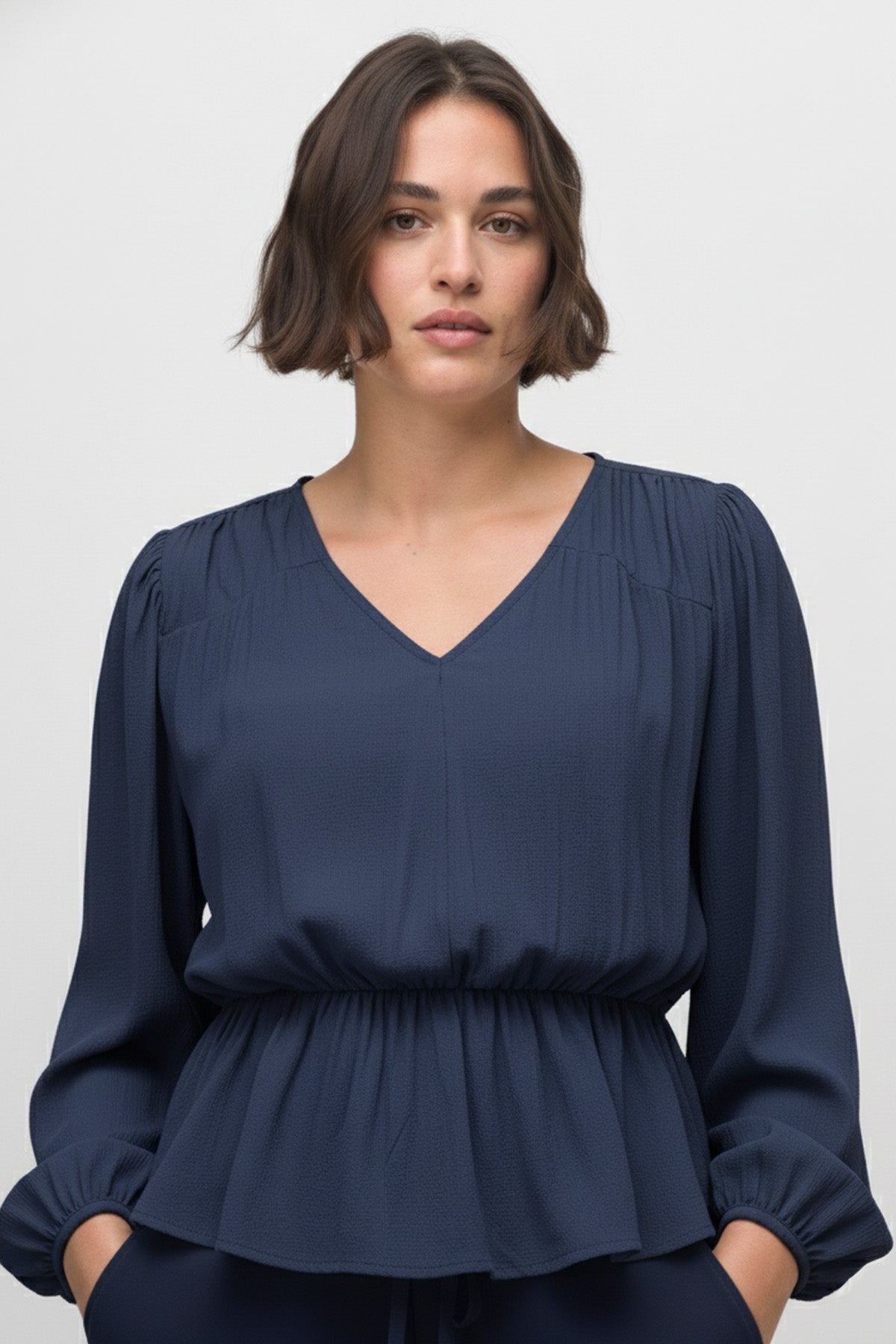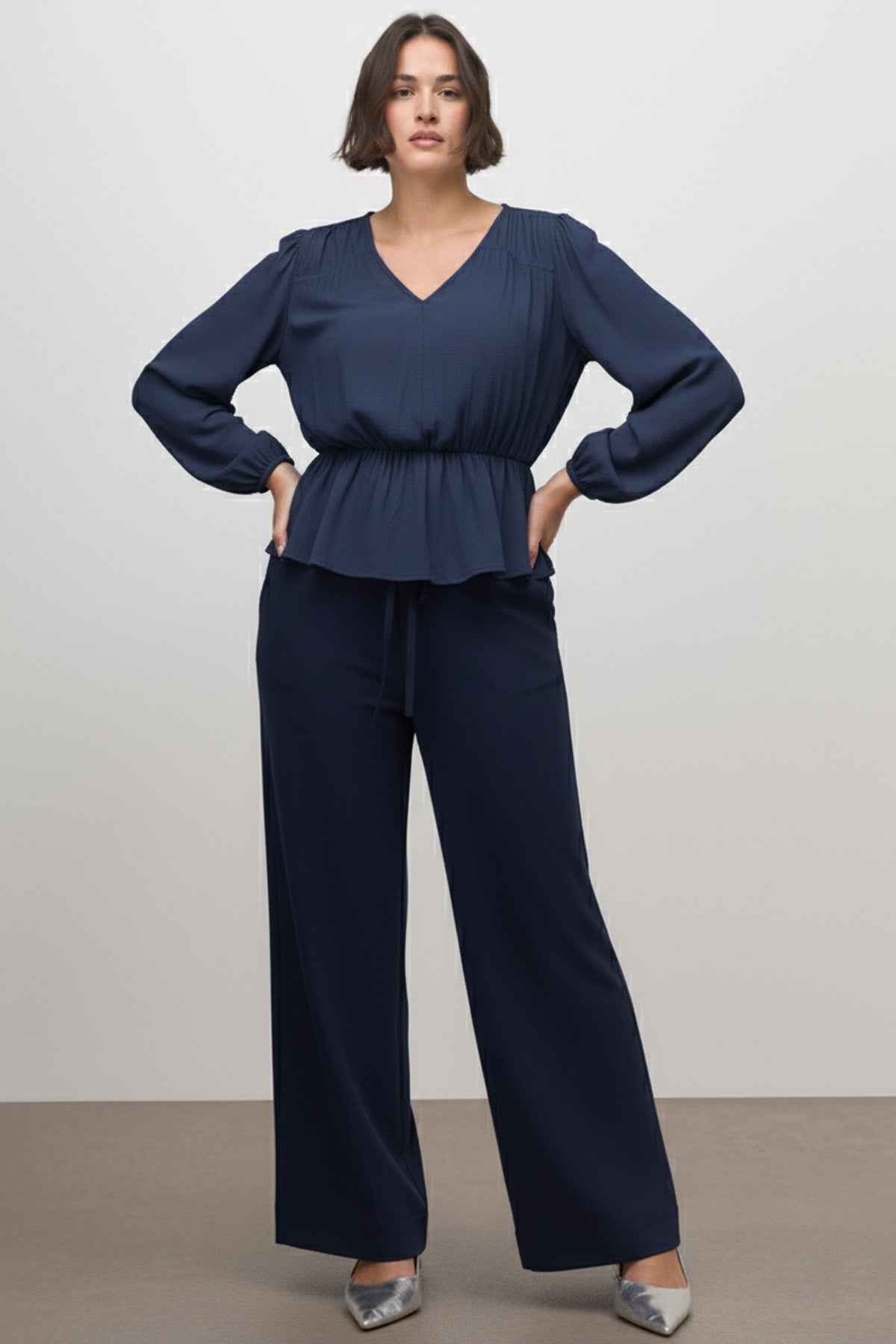 Lacivert rengin asaletini şık desenlerle birleştiren büyük beden lacivert desenli beli lastikli bluz, modern tasarımıyla günlük stilinize konforlu bir şıklık katıyor. Bel kısmındaki lastik detayı sayesinde vücudunuza mükemmel uyum sağlarken, rahat kalıbı ile gün boyu hareket özgürlüğü sunar. Zarif V-yaka kesimi ve uzun kol yapısı, zamansız bir görünüm sergilemenize yardımcı olur. %100 Viskon dokuma kumaşı, yumuşak dokusuyla cildinize nefes aldırır. Hem ofis kombinlerinizde hem de sosyal aktivitelerinizde rahatlıkla tercih edebileceğiniz bu bluz, gardırobunuzun favori parçalarından biri olacak.