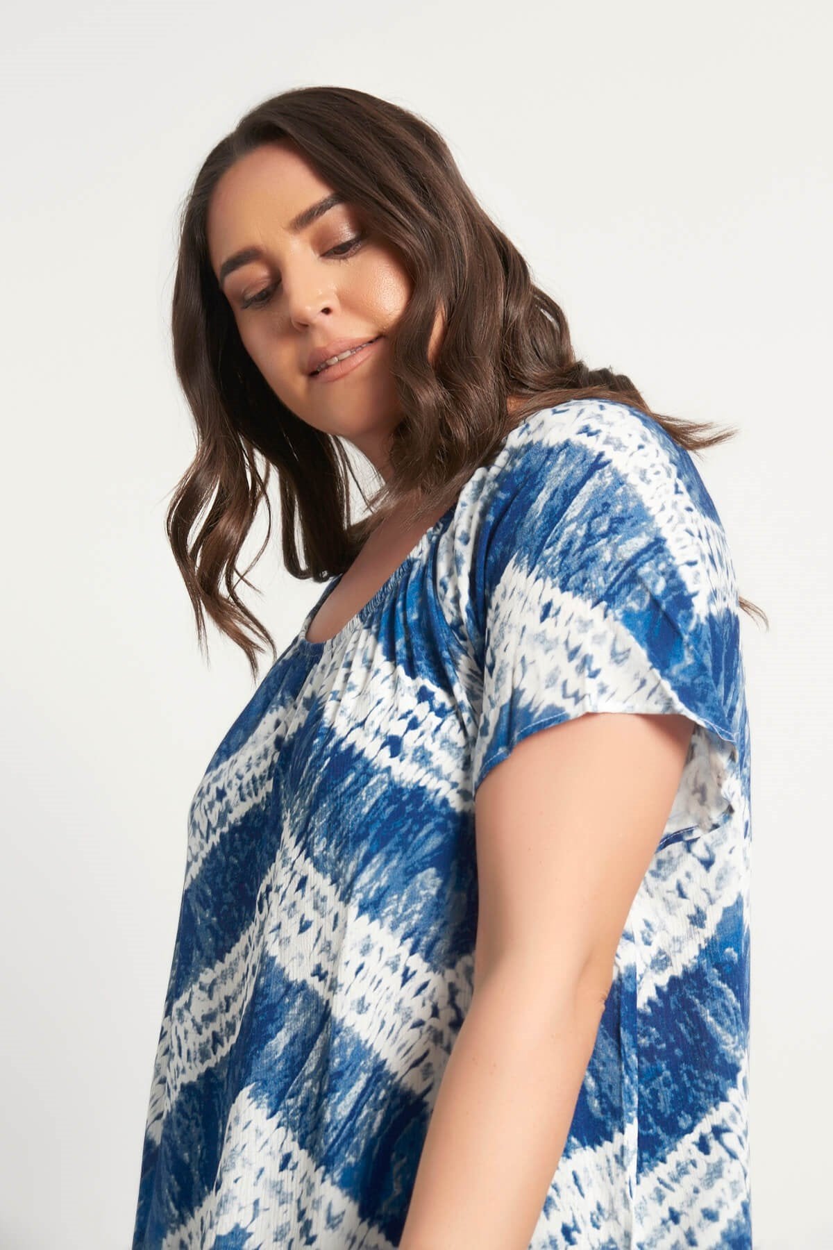 Düşük Omuzlu Büzgü Detaylı Elbise
