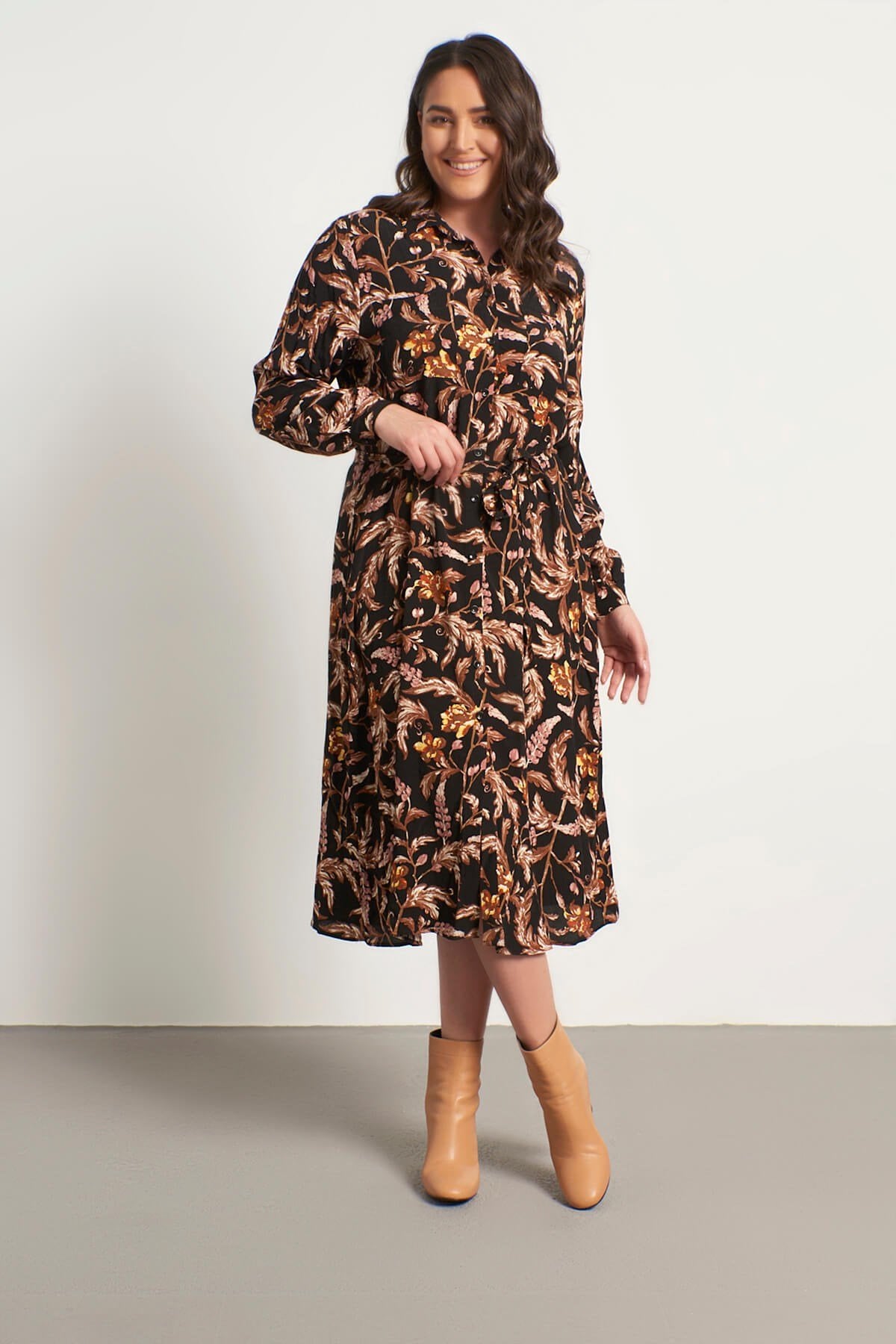Cepli Kuşaklı Gömlek Elbise