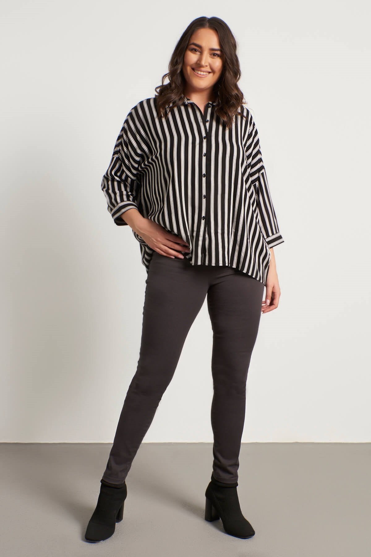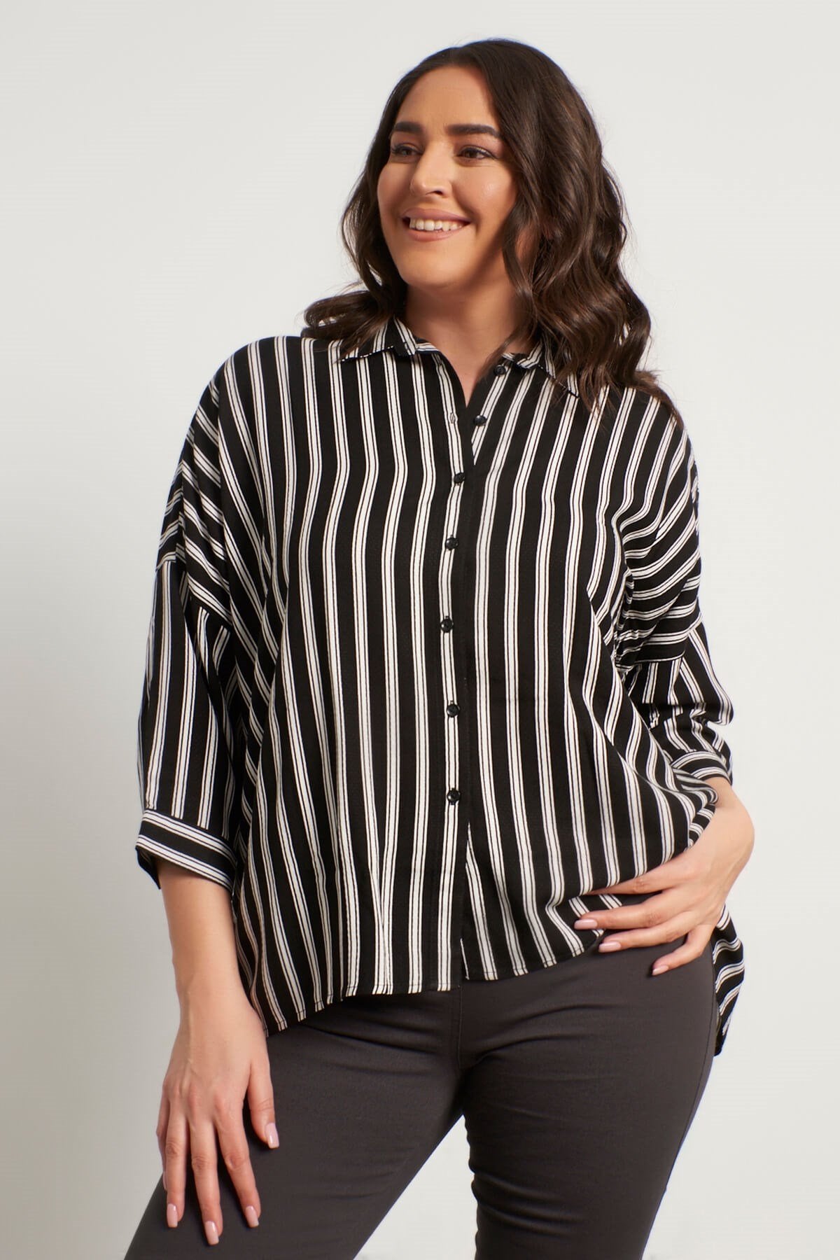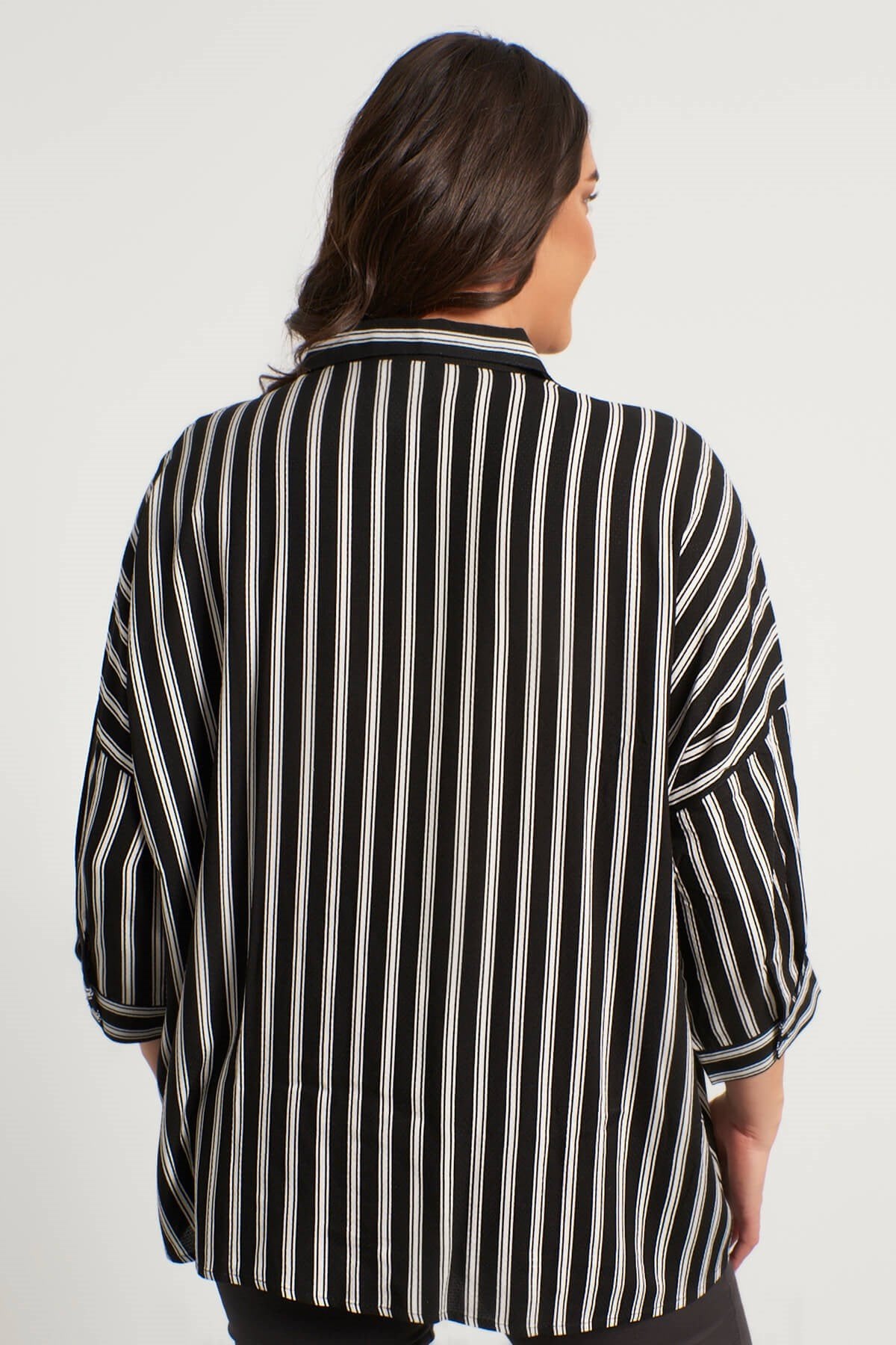 Çizgili 3/4 Kollu Gömlek