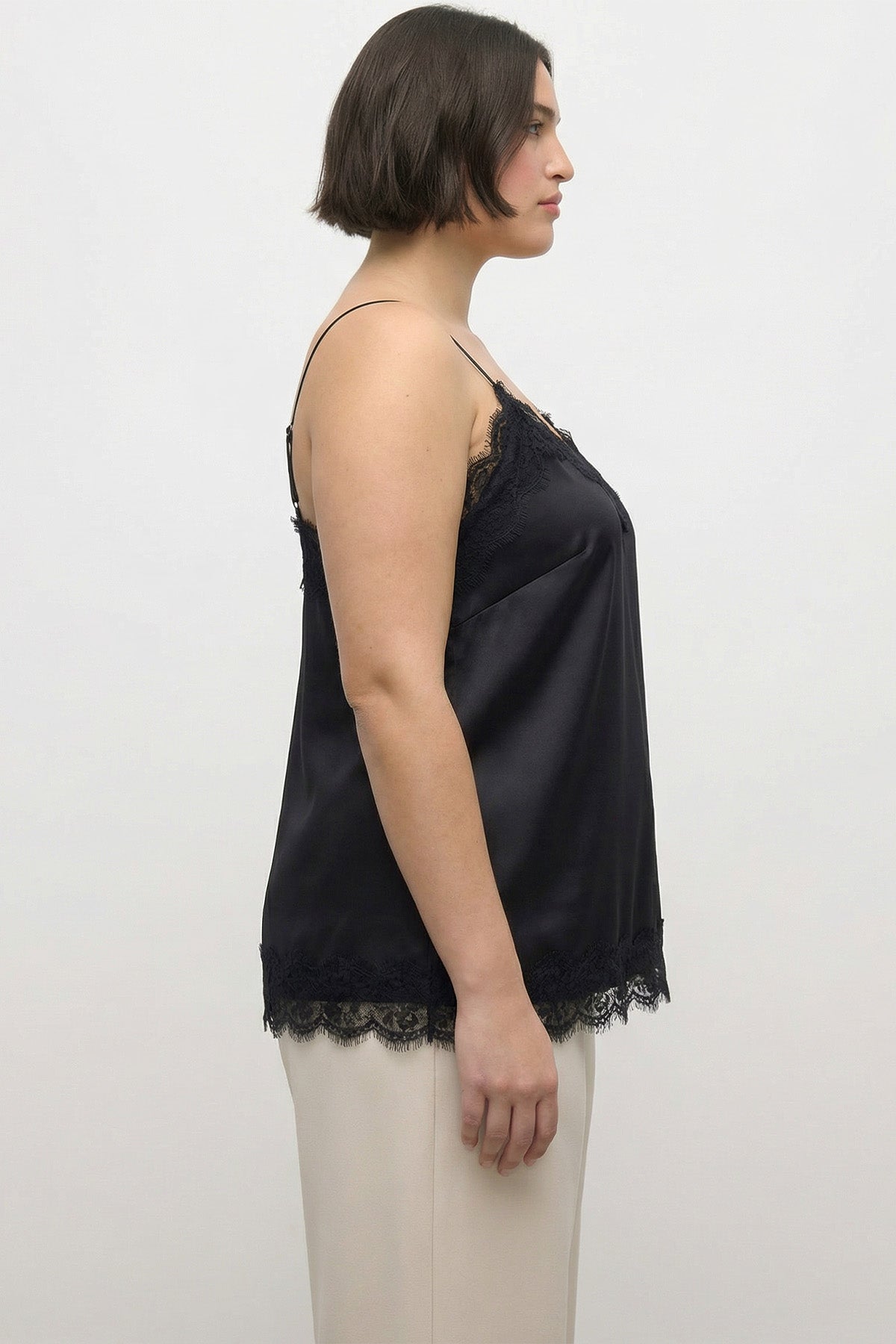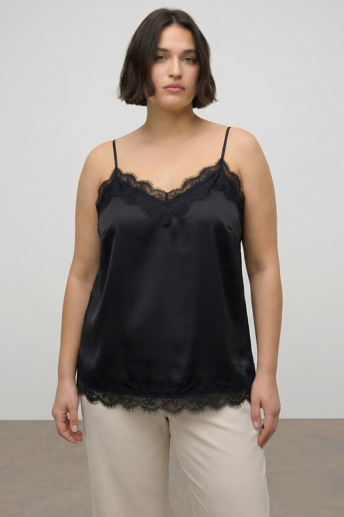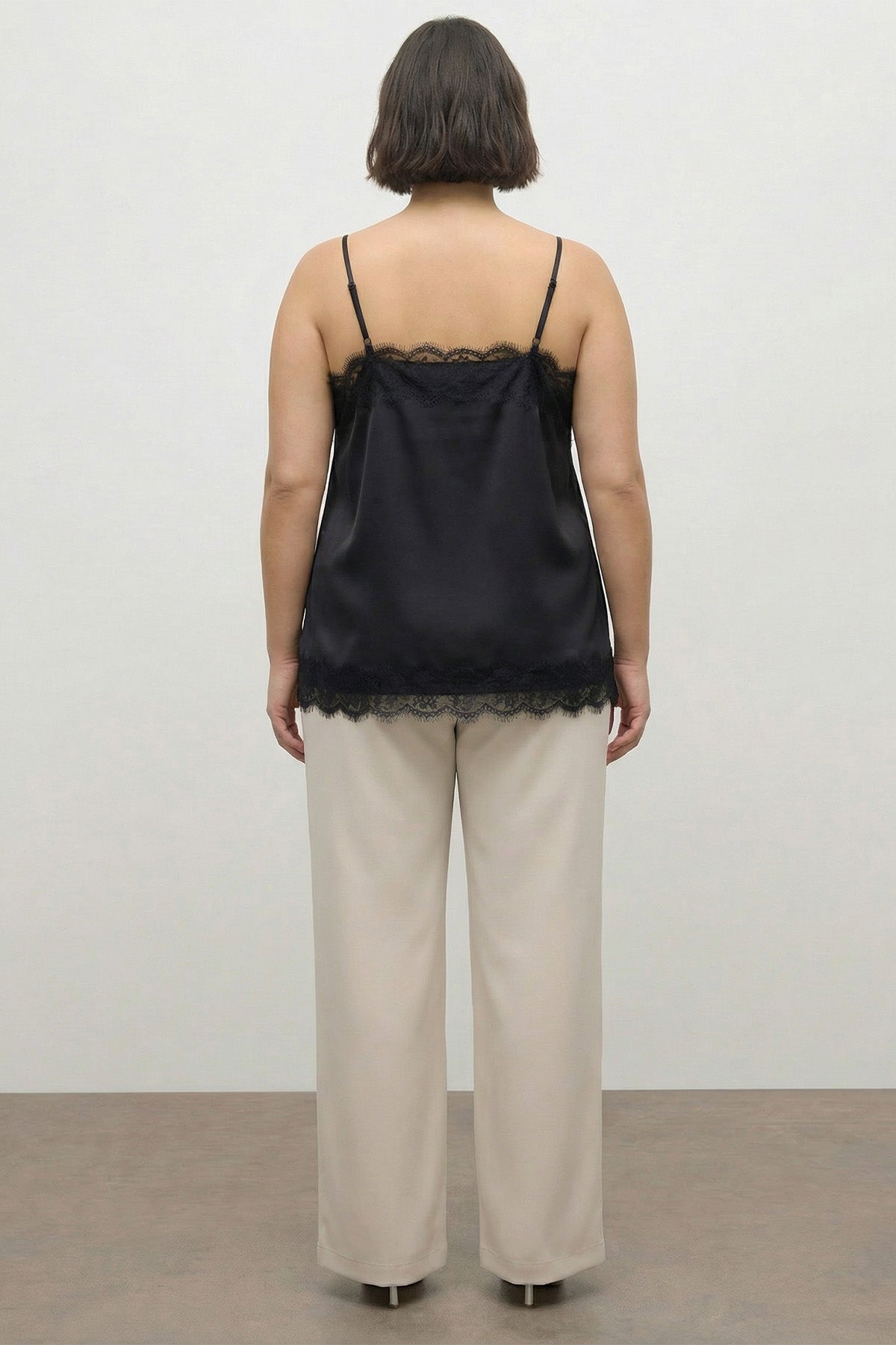 Dantel Detaylı İp Askılı Saten Bluz