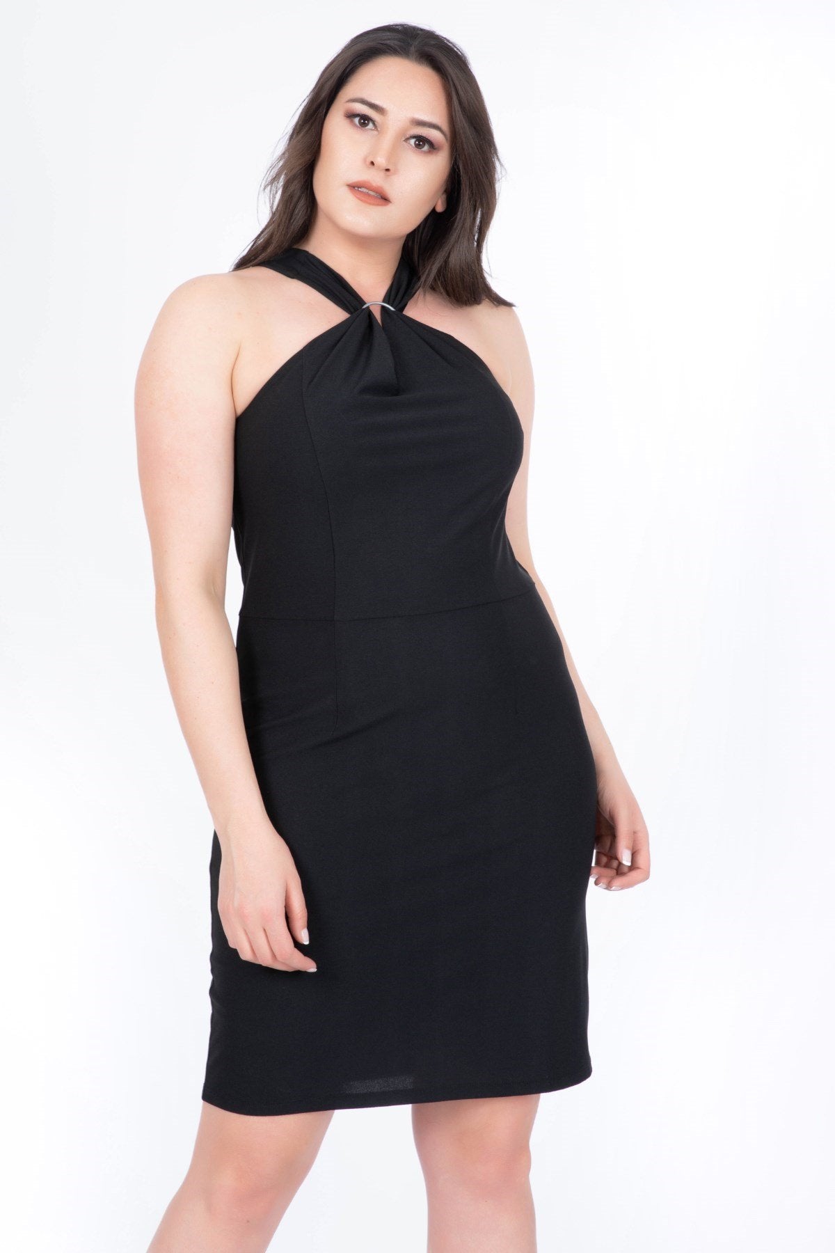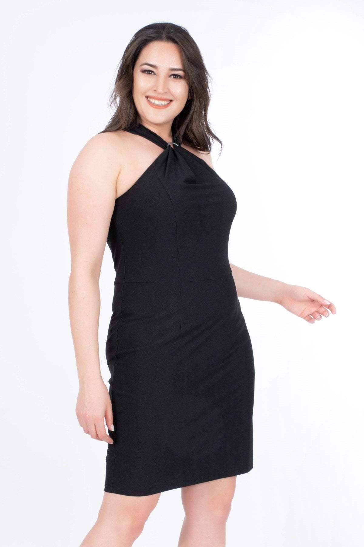 Demir Aksesuarlı Siyah Elbise