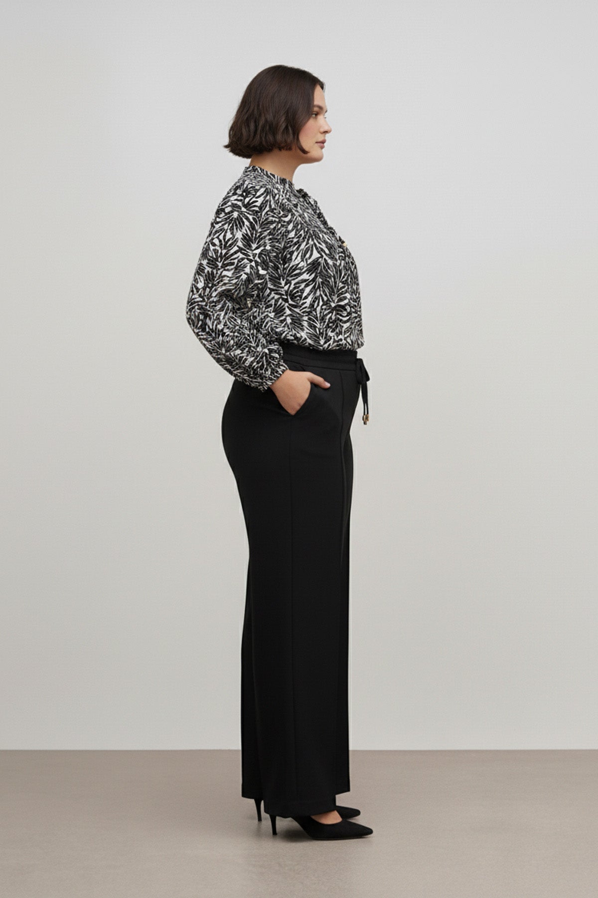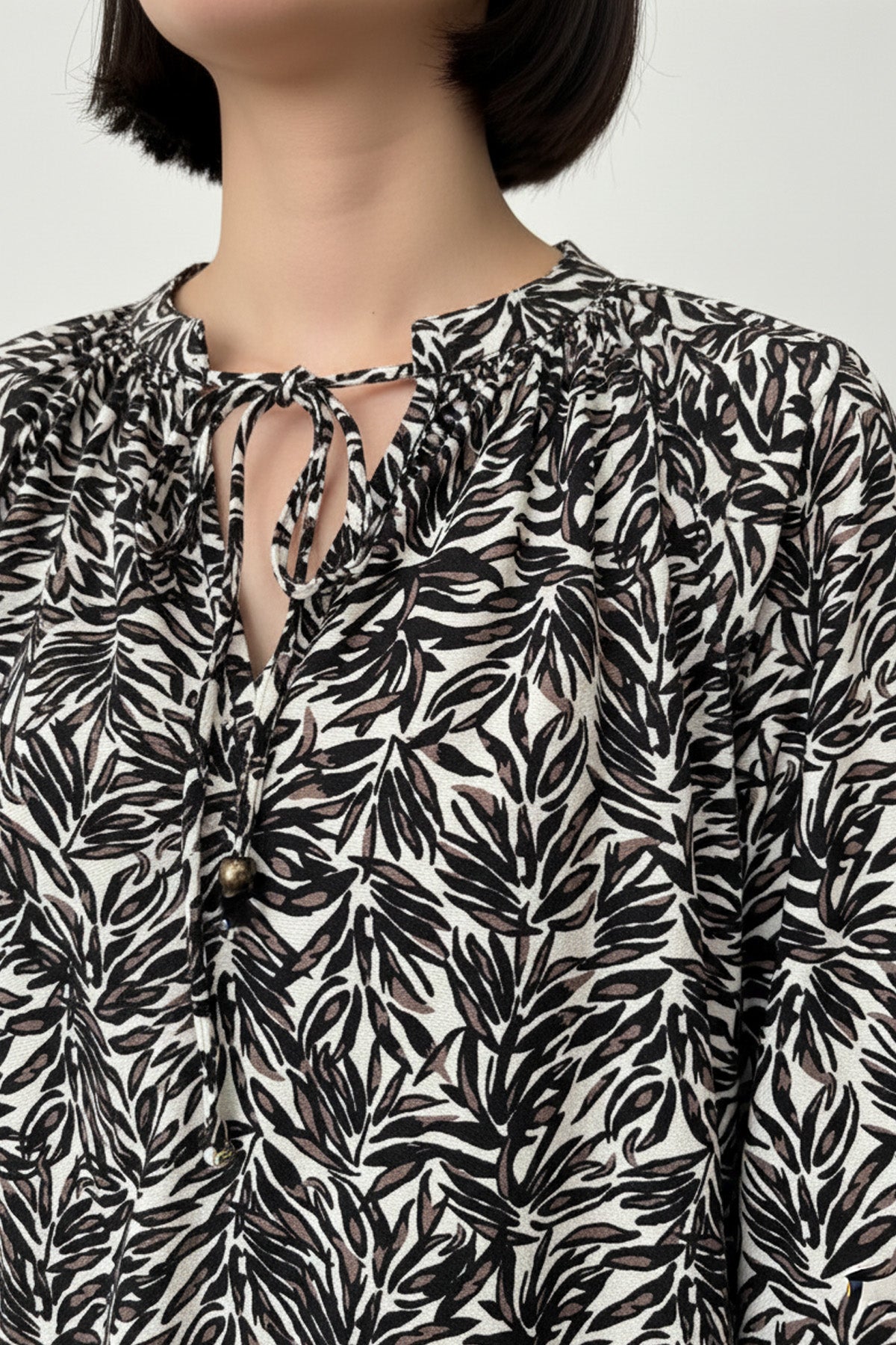 Stilinize dinamizm katan büyük beden desenli bol kesim bluz, konforu ve şıklığı bir arada sunuyor. Vücut hatlarını nazikçe örten bol kesim (rahat kalıp) yapısı ve V-yaka tasarımıyla ferah bir kullanım sağlar. Yaka kısmındaki zarif bağcık detayı ve göz alıcı desenleri ile dikkat çeken bu bluz, sürdürülebilir moda anlayışıyla üretilen %100 ECOVERO Viskon kumaşı sayesinde ipeksi bir yumuşaklık ve nefes alabilirlik sunar. Hem günlük kombinlerinizde hem de ofis şıklığınızda tercih edebileceğiniz bu parça, her mevsim stilinizin favorisi olacak.
