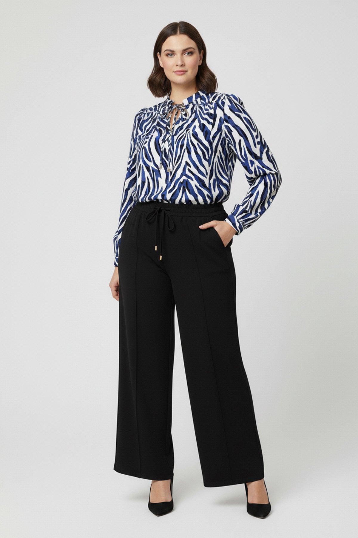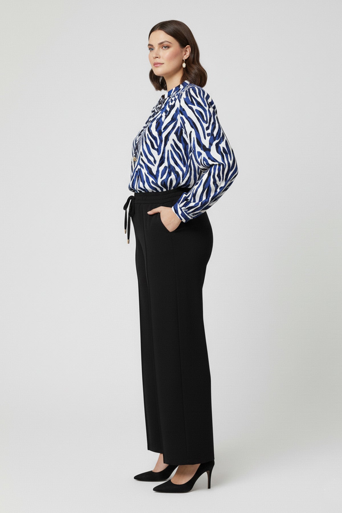 Mavinin huzur veren tonlarını dinamik desenlerle buluşturan büyük beden mavi desenli bol kesim bluz, stilinize modern ve ferah bir dokunuş katar. Rahatlığı ön plana çıkaran bol kesim (rahat kalıp) yapısı ve zarif V-yaka tasarımıyla vücut hatlarını yumuşak bir şekilde tamamlar. Yaka kısmındaki ikonik bağcık detayı ve sürdürülebilir moda anlayışıyla üretilen %100 ECOVERO Viskon kumaşı, cildinize nefes aldırırken gün boyu süren bir konfor sunar. Hem jean pantolonlarla hem de klasik alt gruplarla kolayca kombinlenebilen bu bluz, gardırobunuzun en joker parçalarından biri olacak.