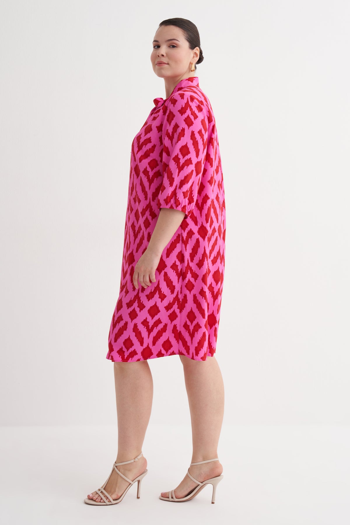 Desenli Fular Yaka Elbise