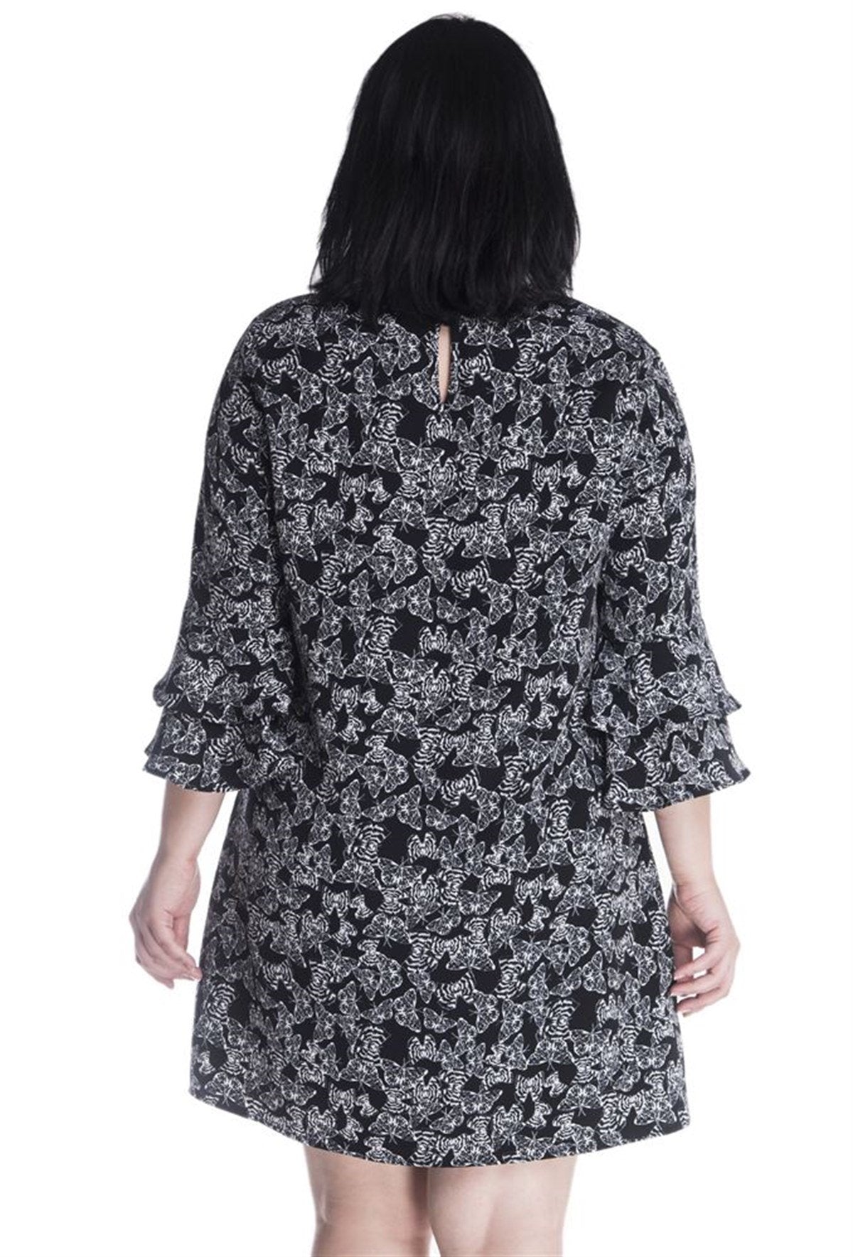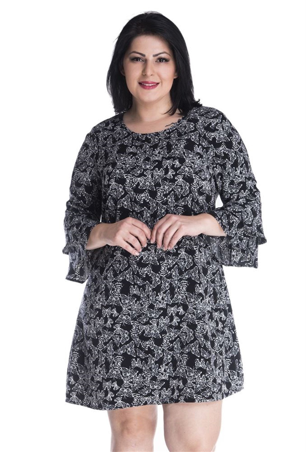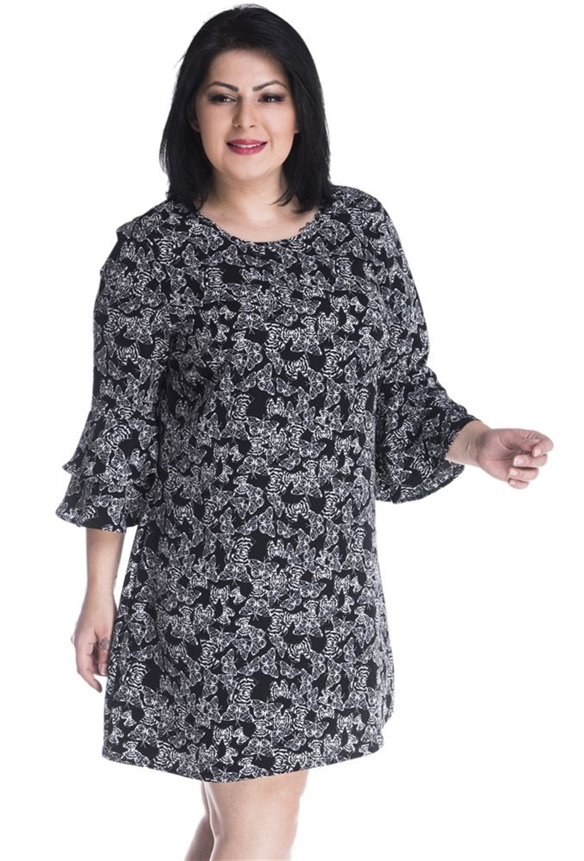 Desenli Kolları Volanlı Elbise