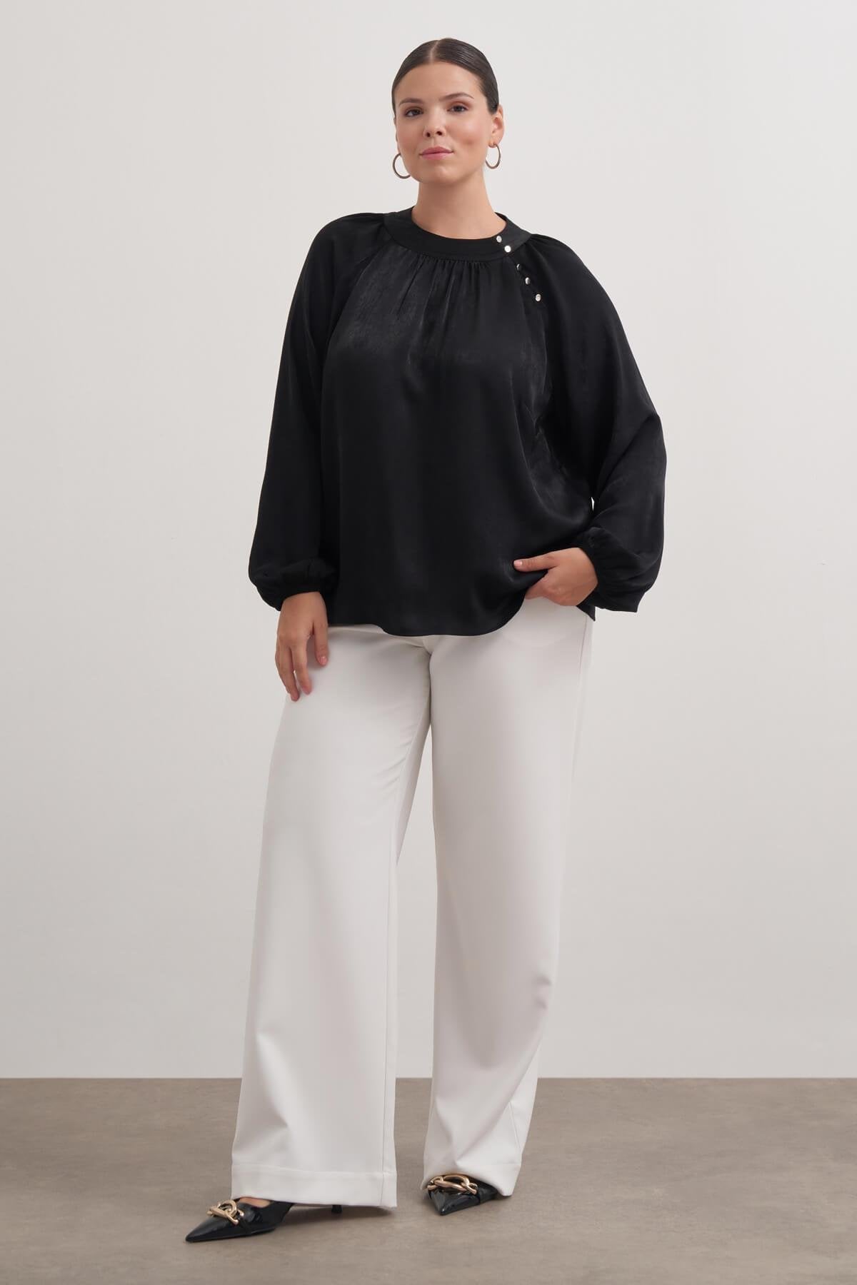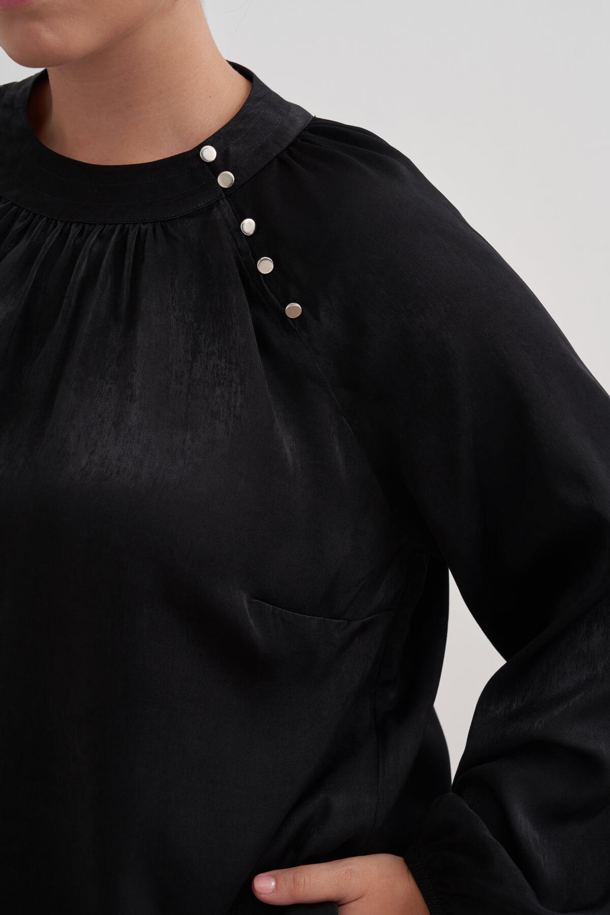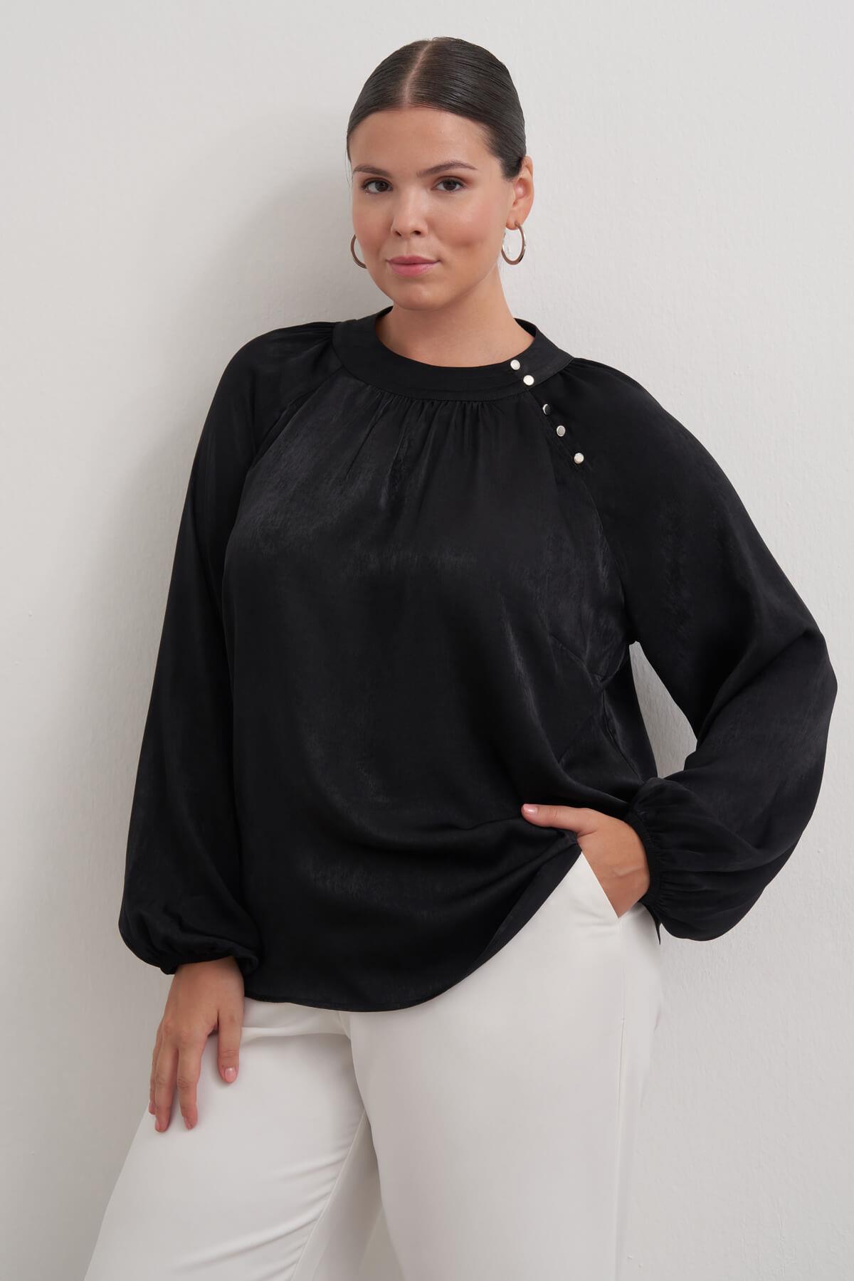 Düğme Detaylı Saten Bluz