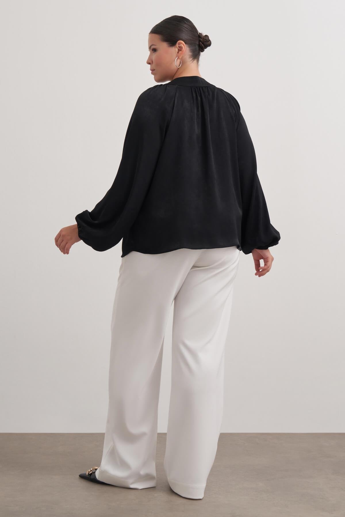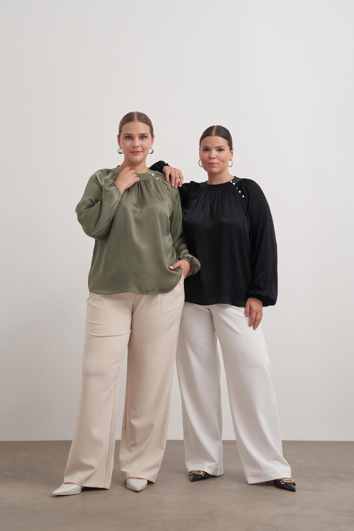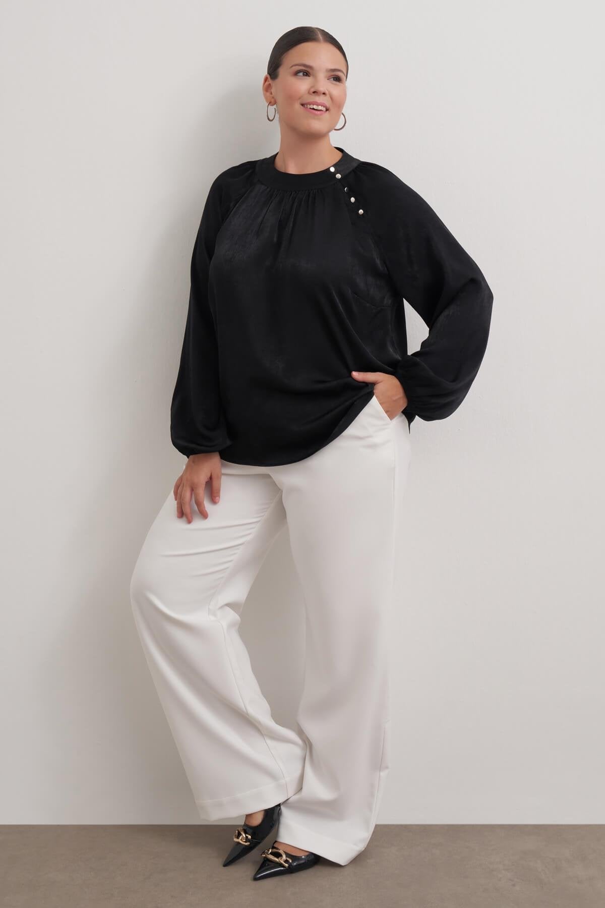 Düğme Detaylı Saten Bluz