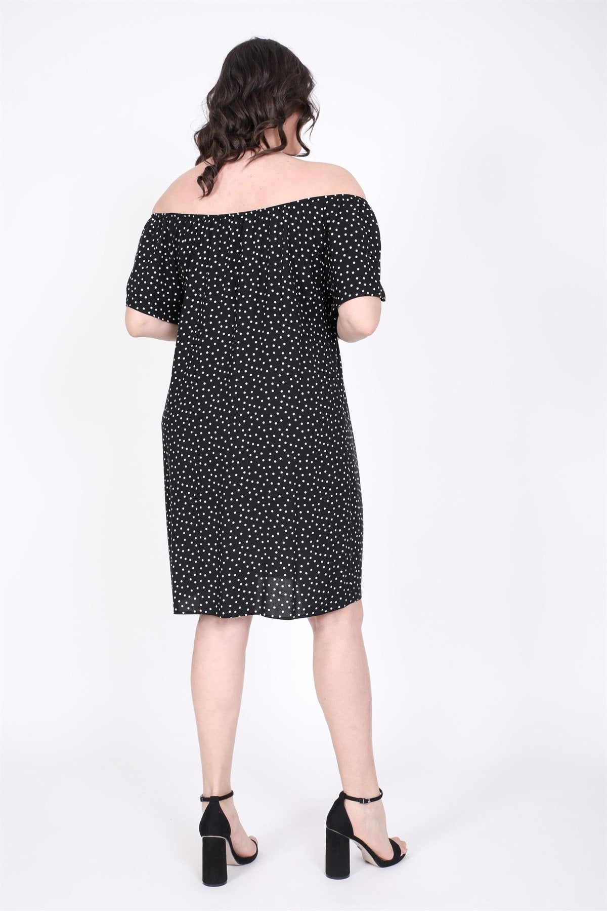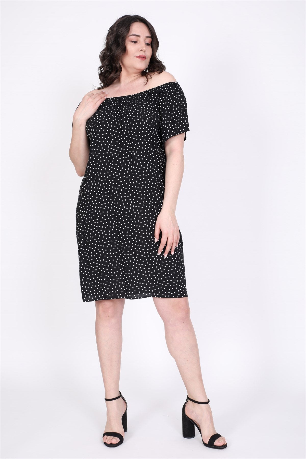 Düşük Omuzlu Büzgü Detaylı Elbise