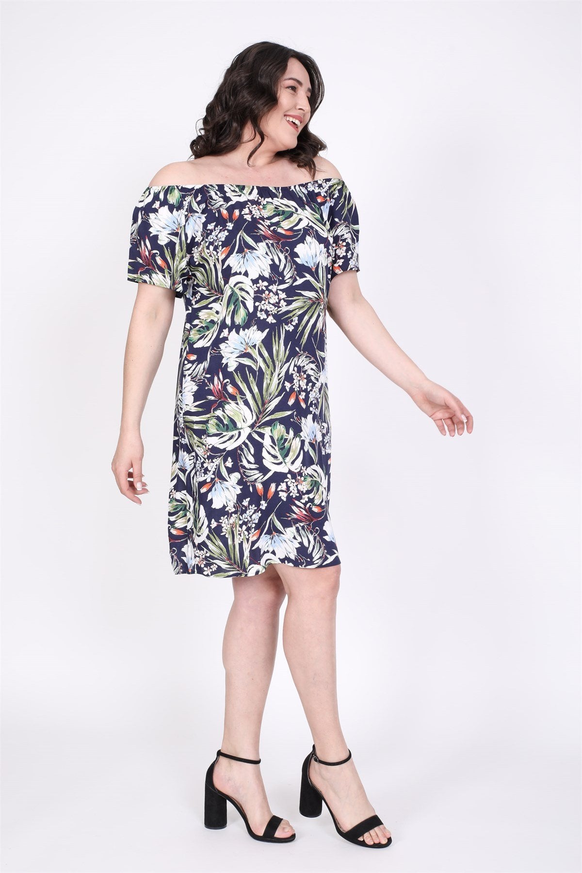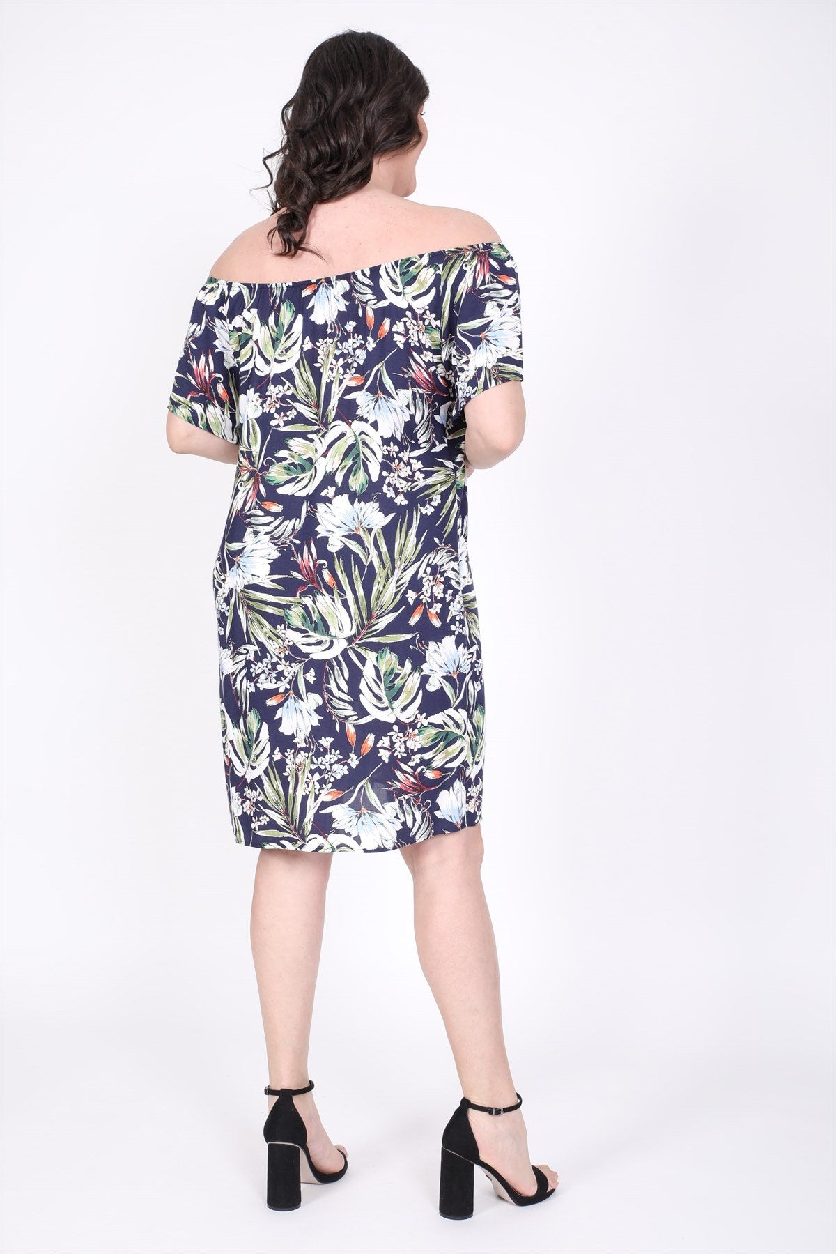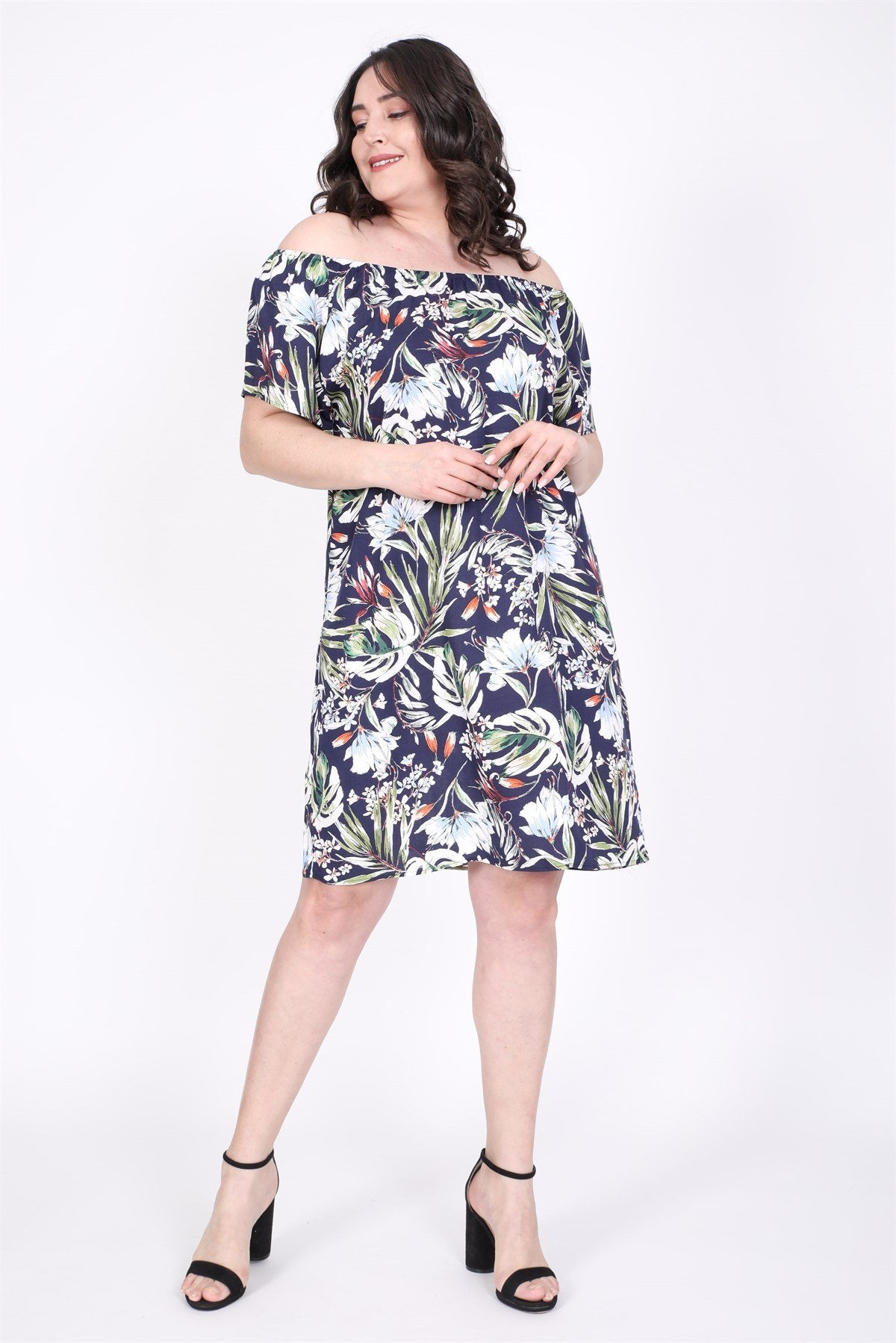 Düşük Omuzlu Büzgü Detaylı Elbise