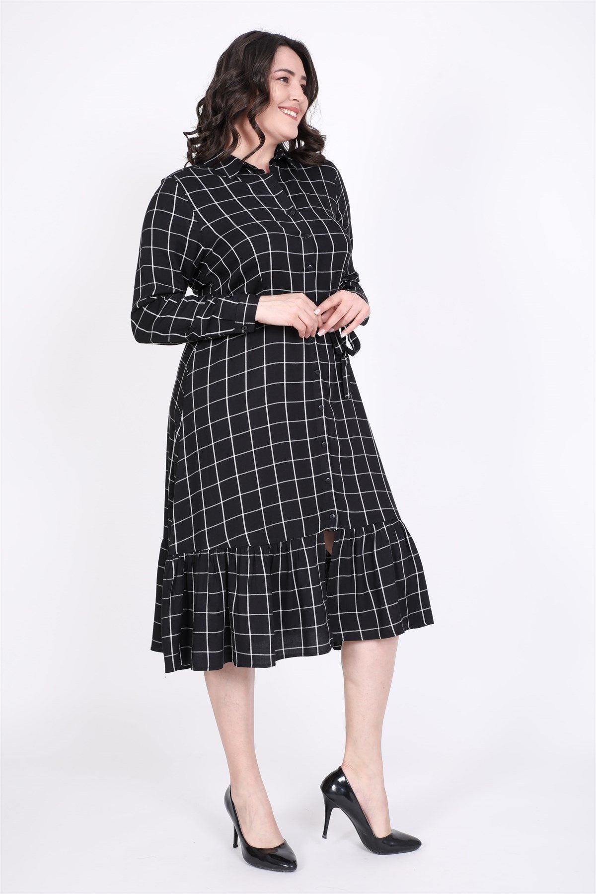 Eteği Fırfırlı Gömlek Elbise