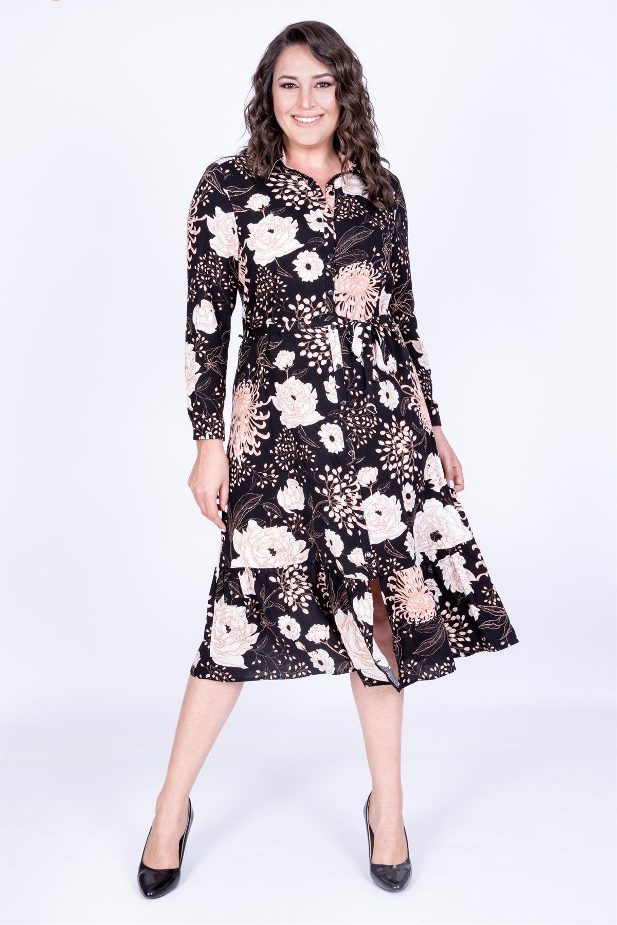 Eteği Fırfırlı Gömlek Elbise