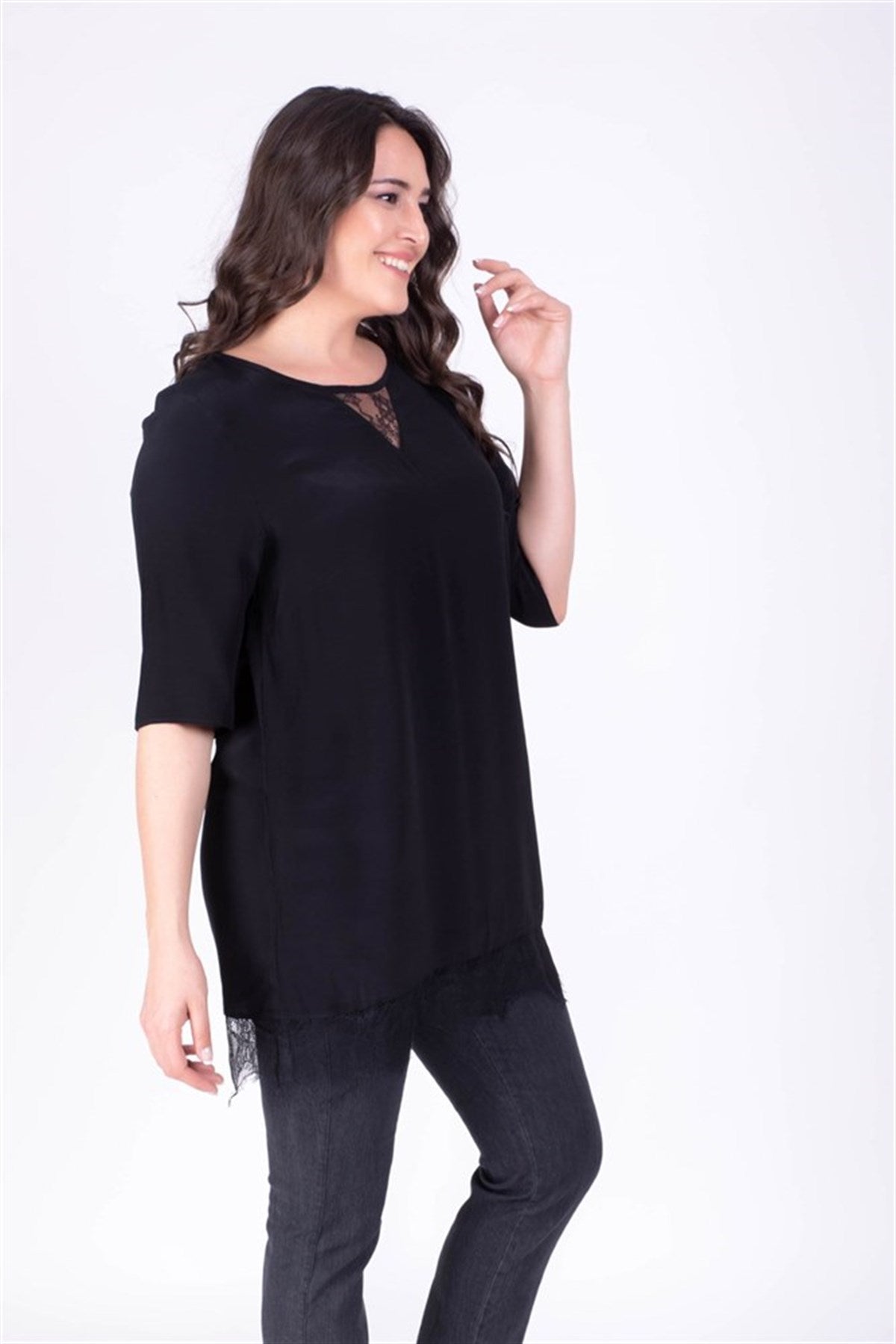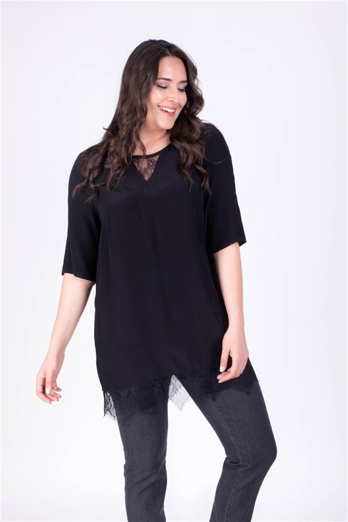 Eteği Yakası Dantelli Tunik