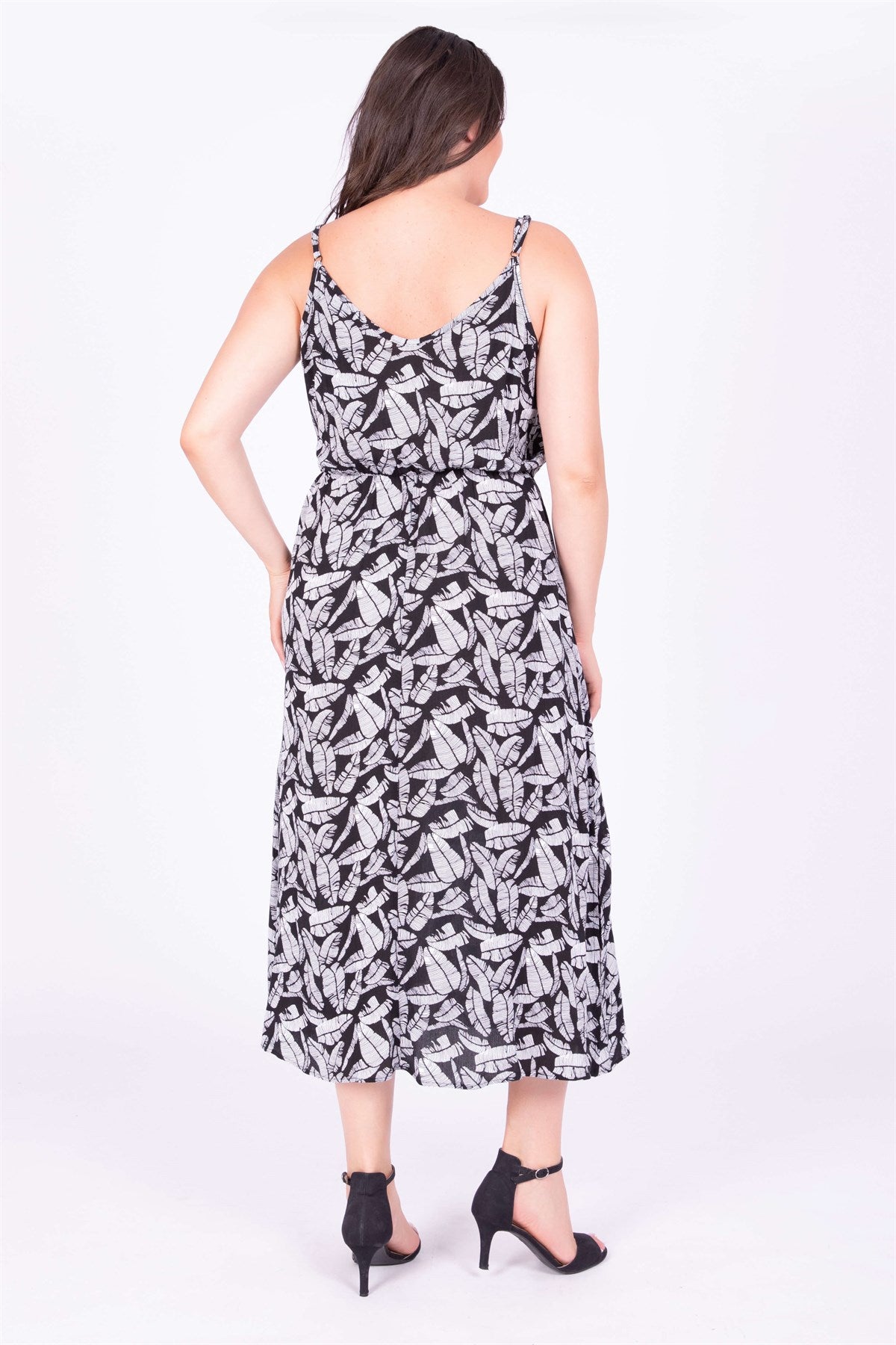 İp Askılı Beli Lastikli Yırtmaçlı Elbise
