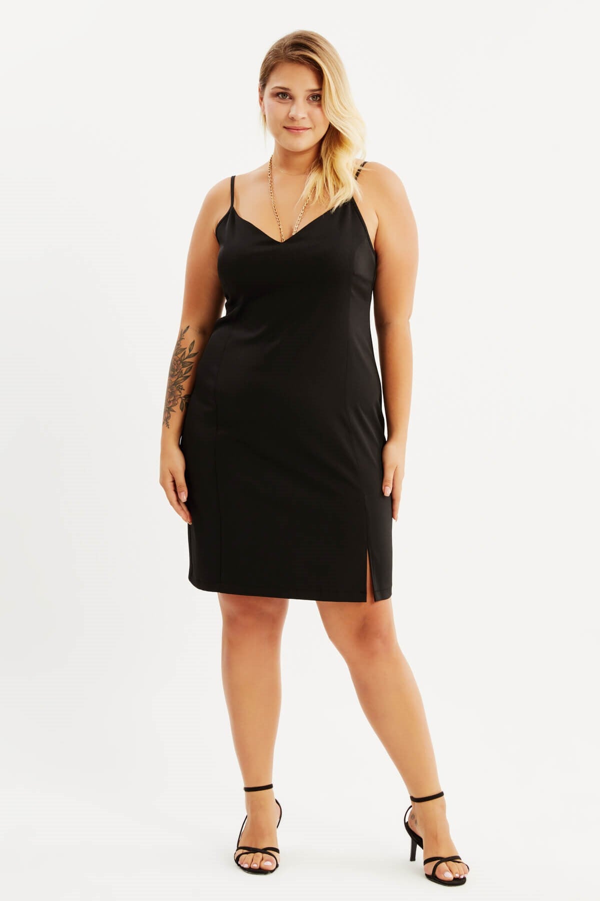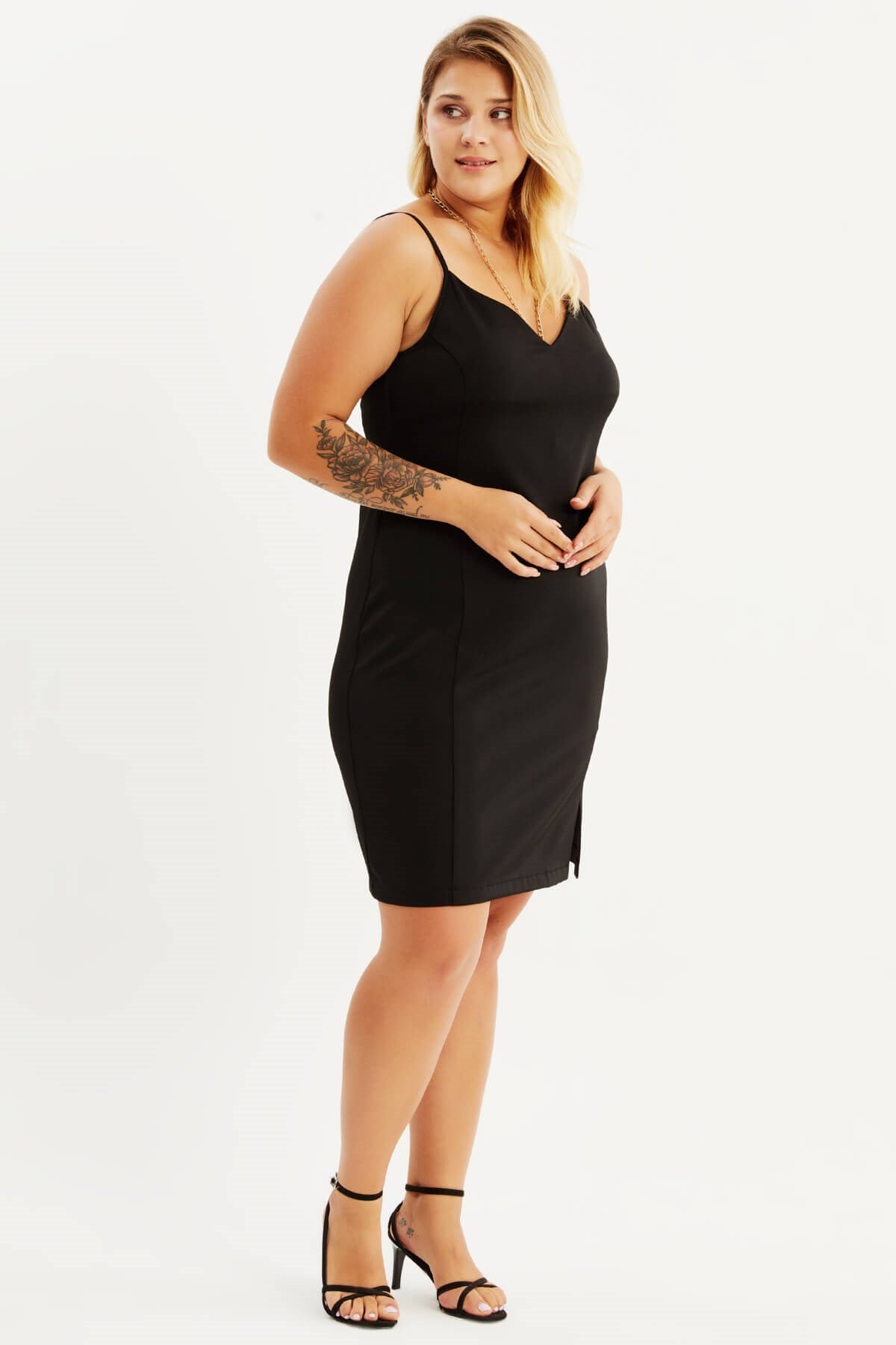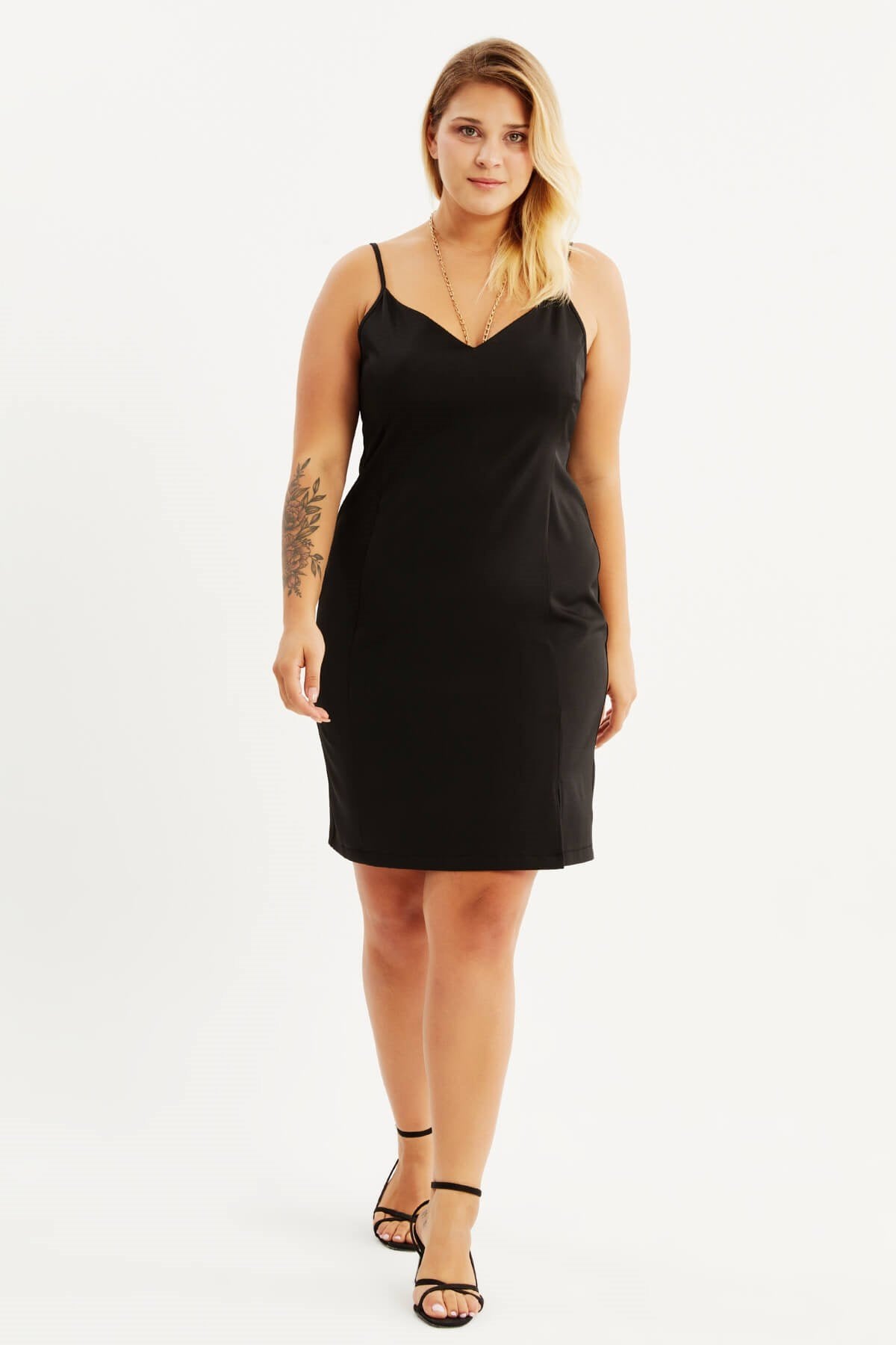 İp Askılı Yırtmaçlı Elbise