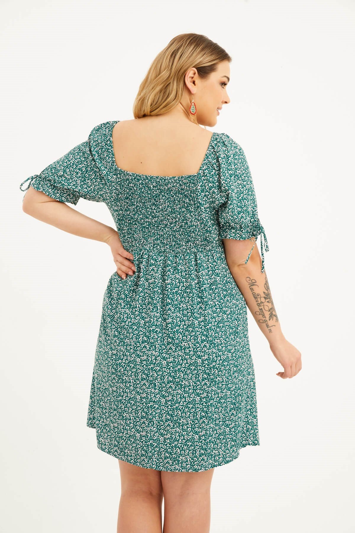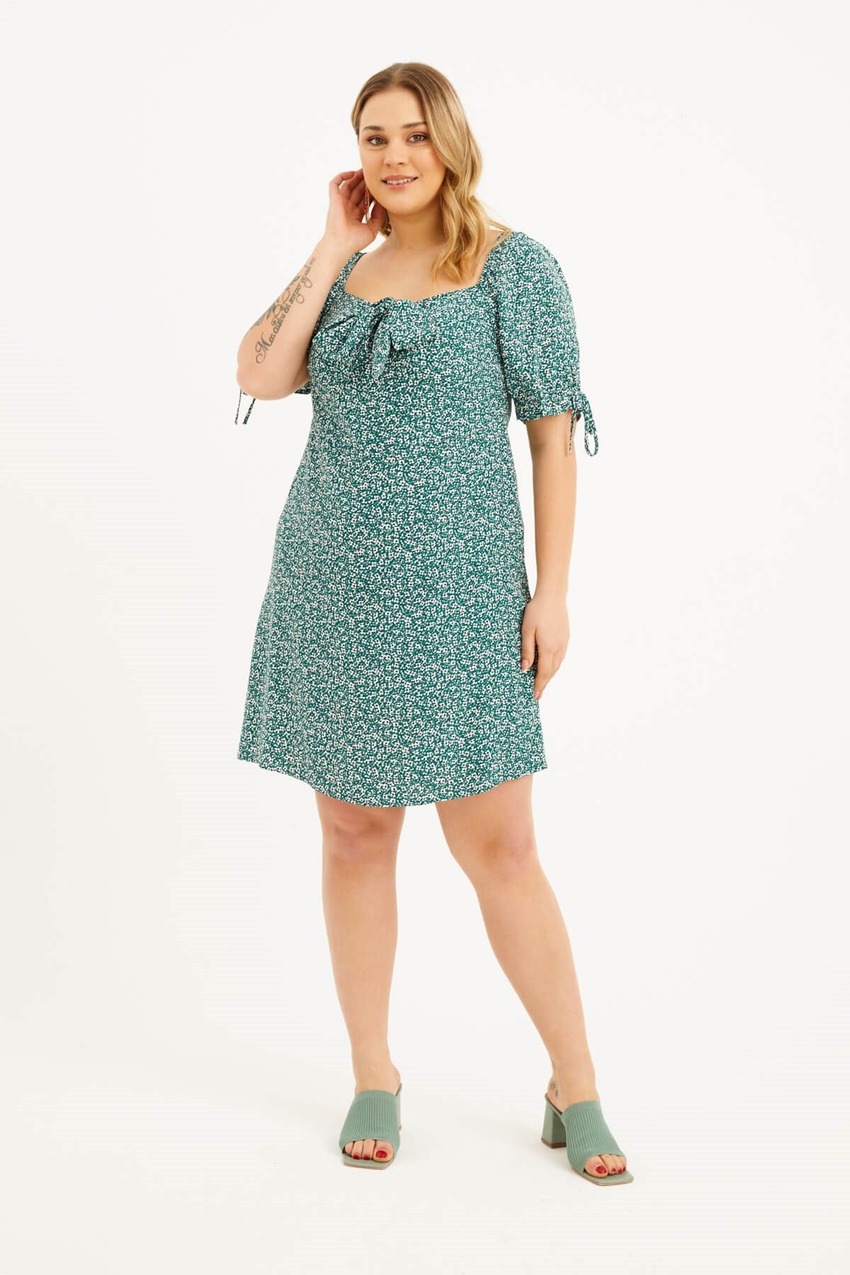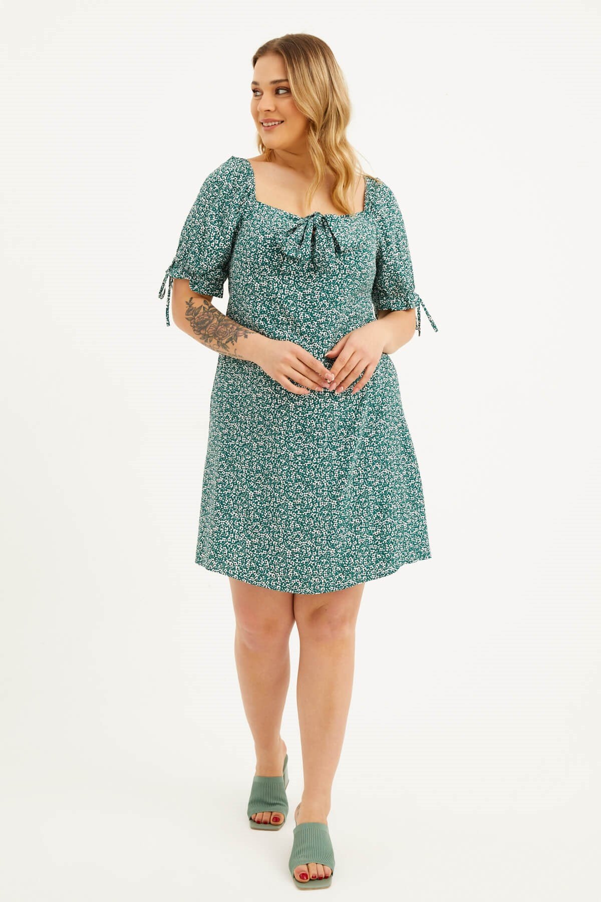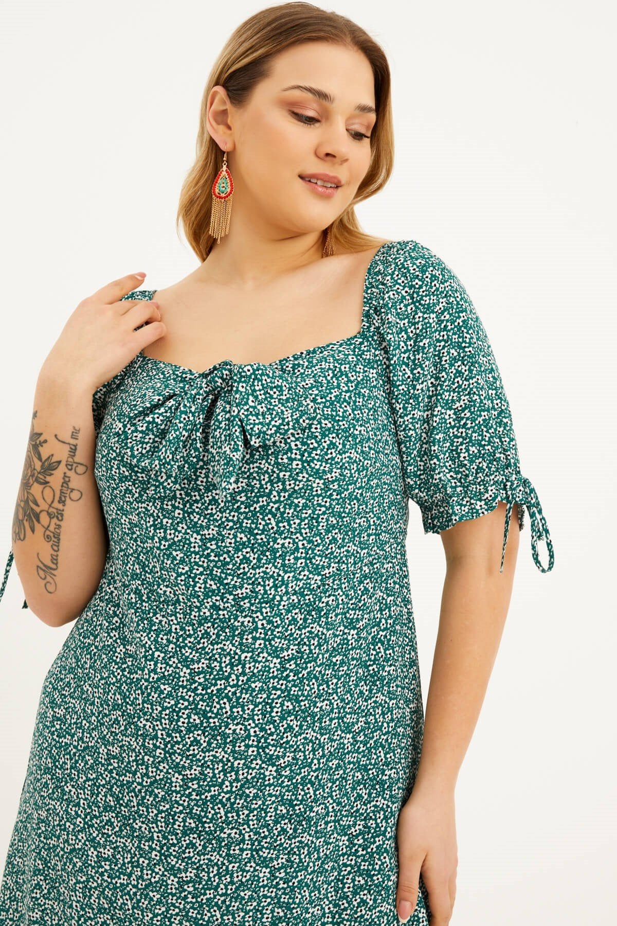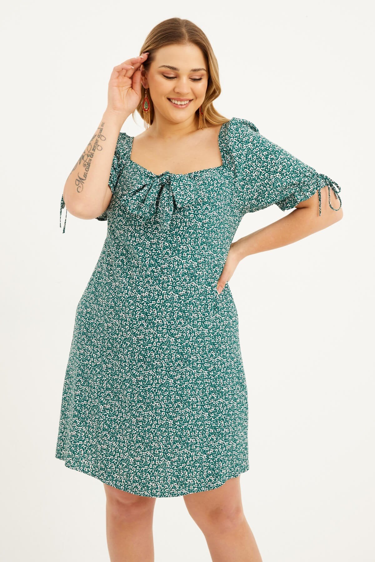 Kare Yaka Önü Bağlamalı Gipeli Elbise