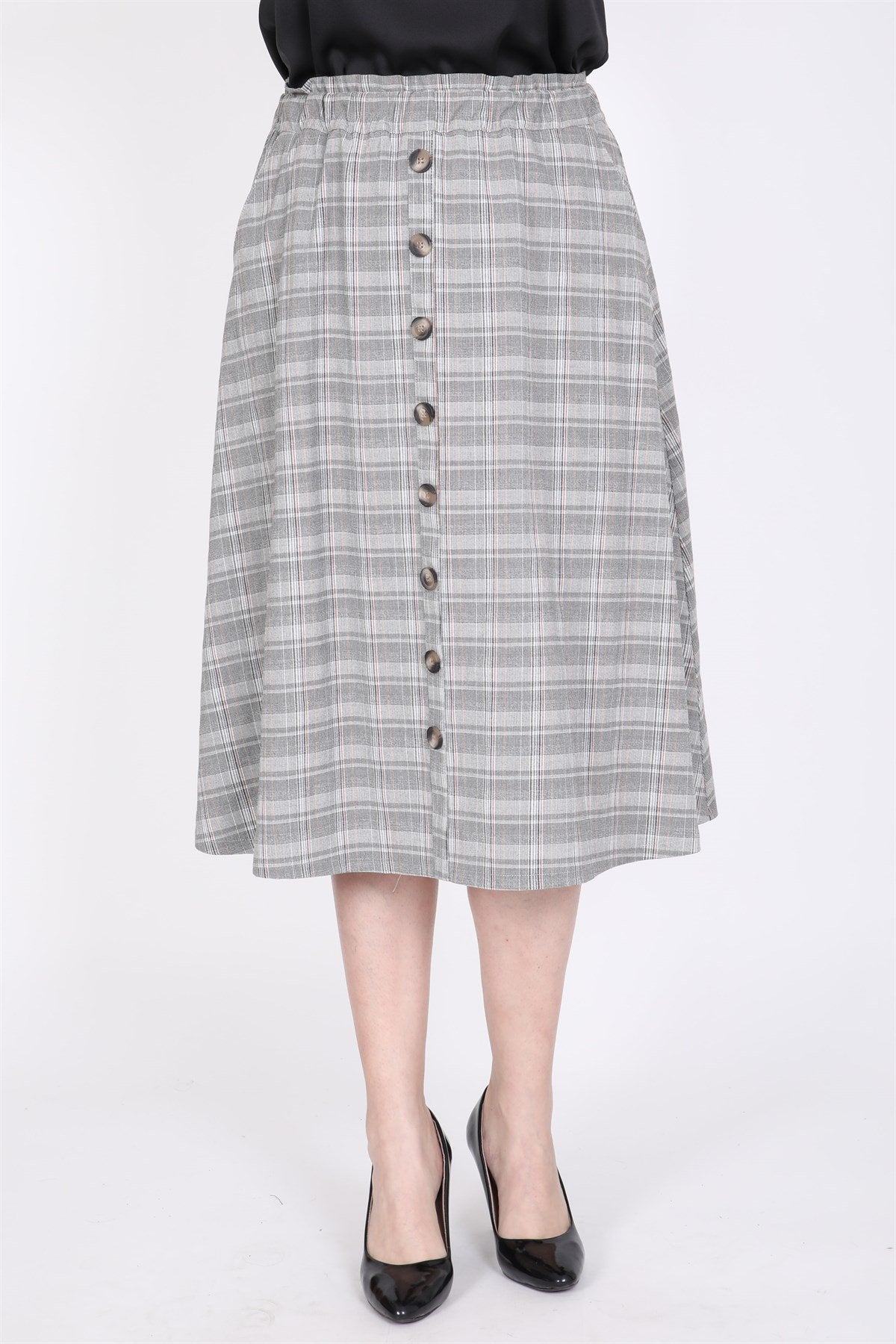 Kareli Beli Lastikli Etek