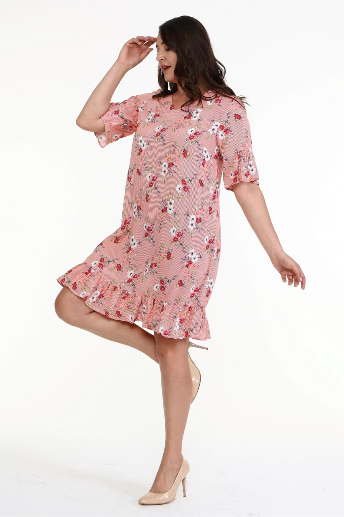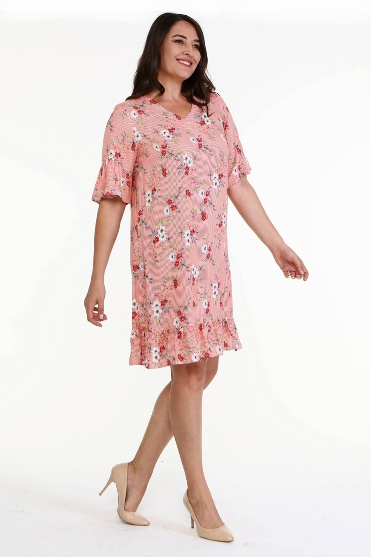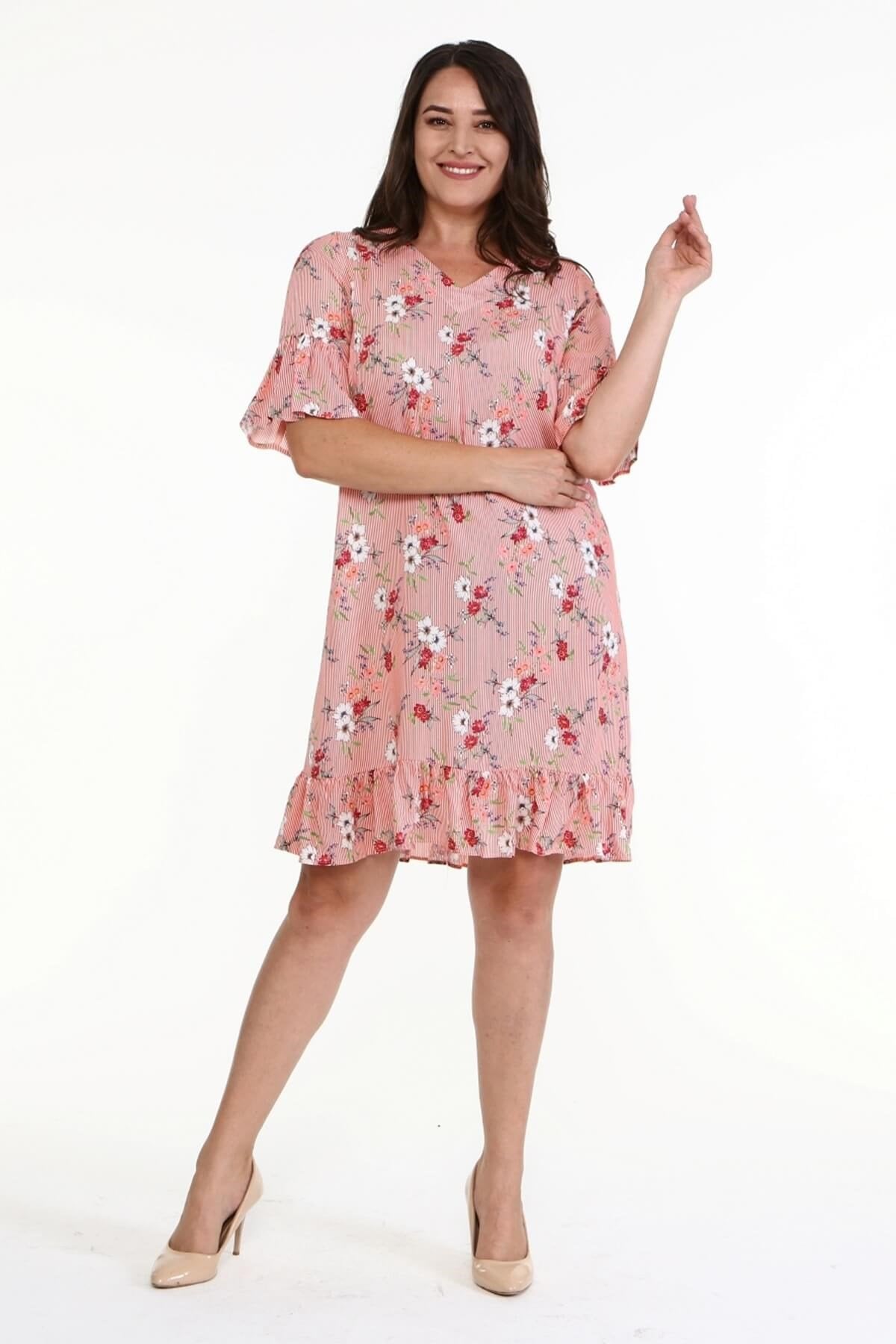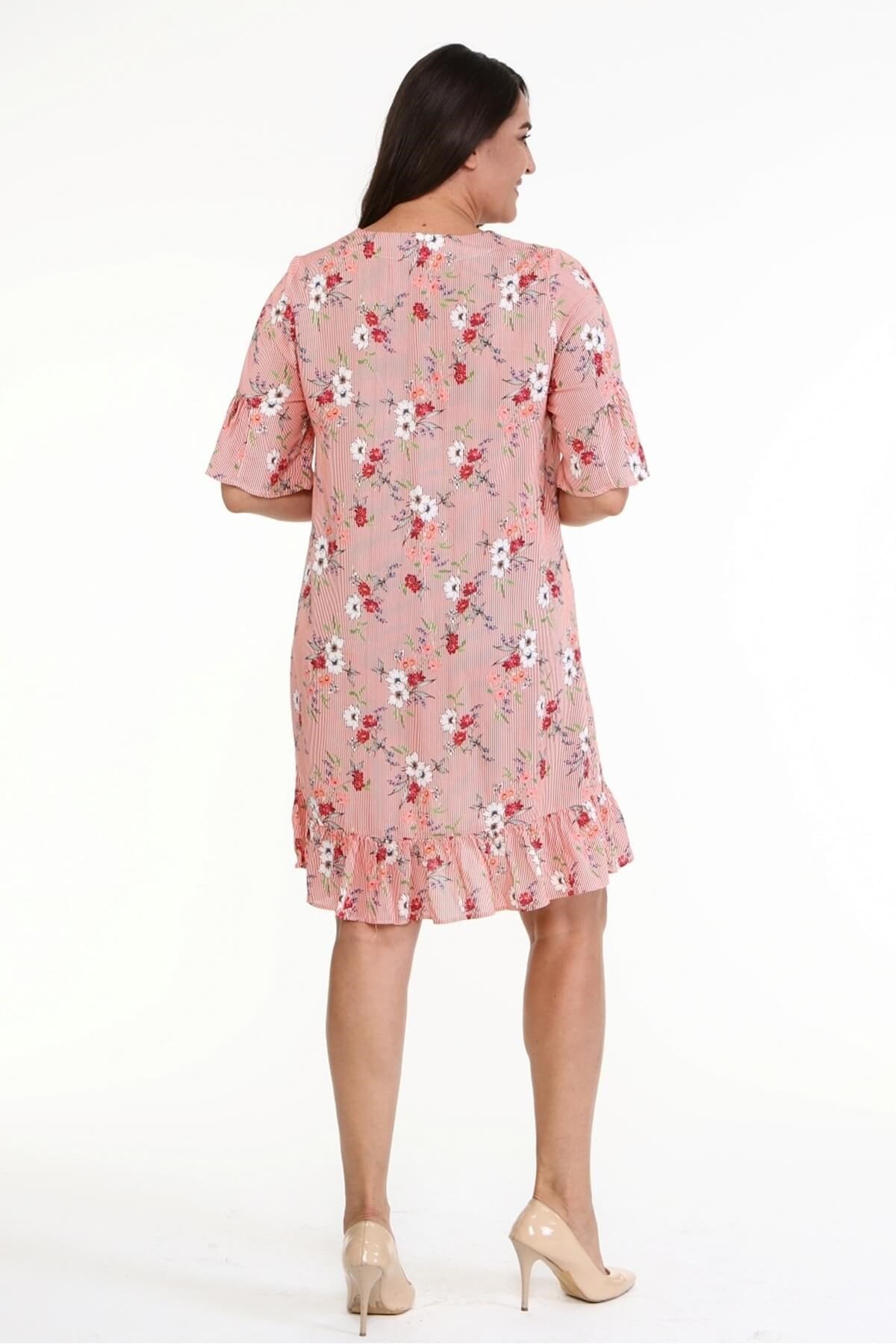 Eteği ve Kolları Fırfırlı Desenli Elbise