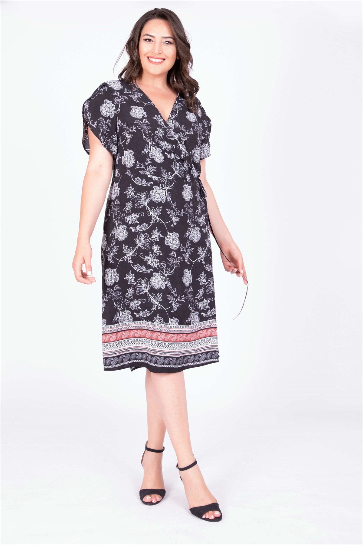 Kol Detaylı Kruvaze Elbise