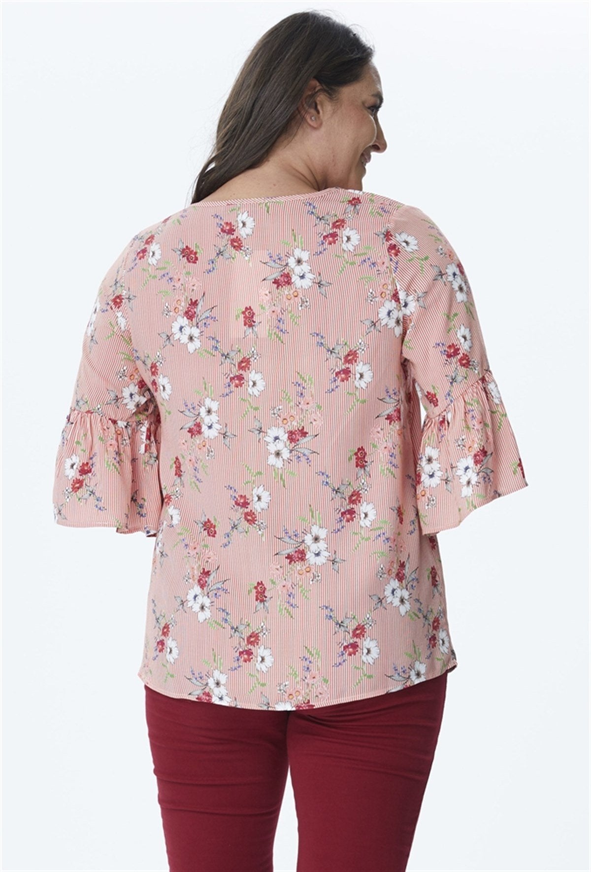 V Yaka Kolları Fırfırlı Bluz