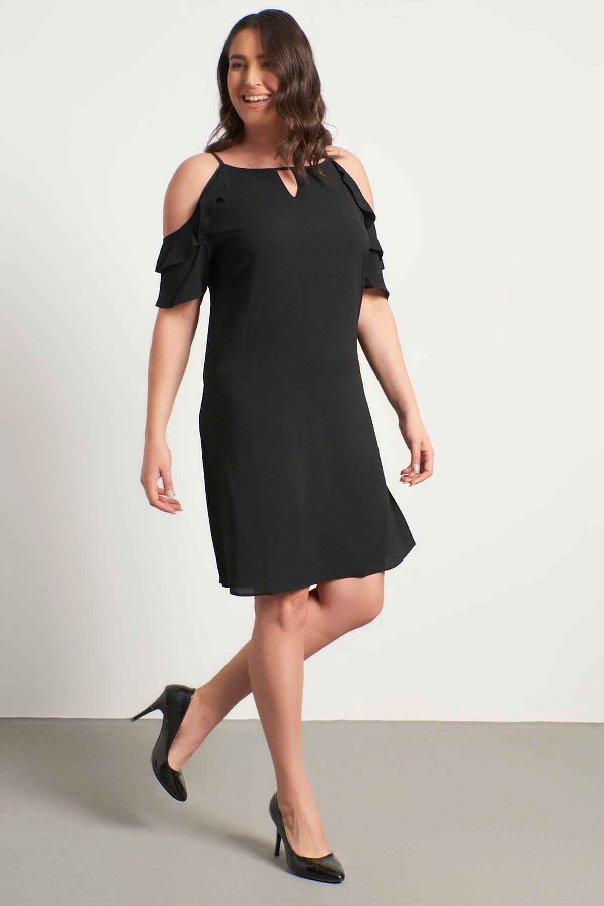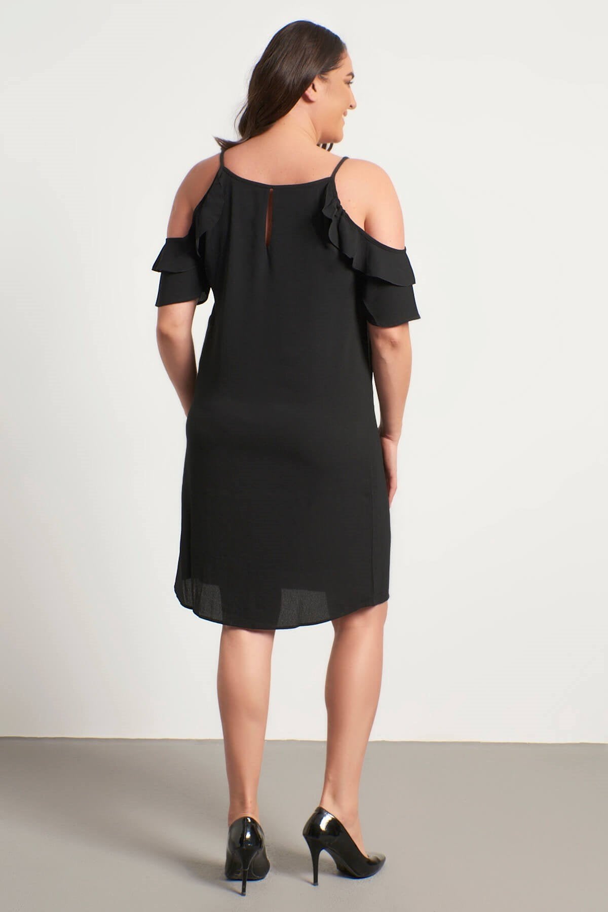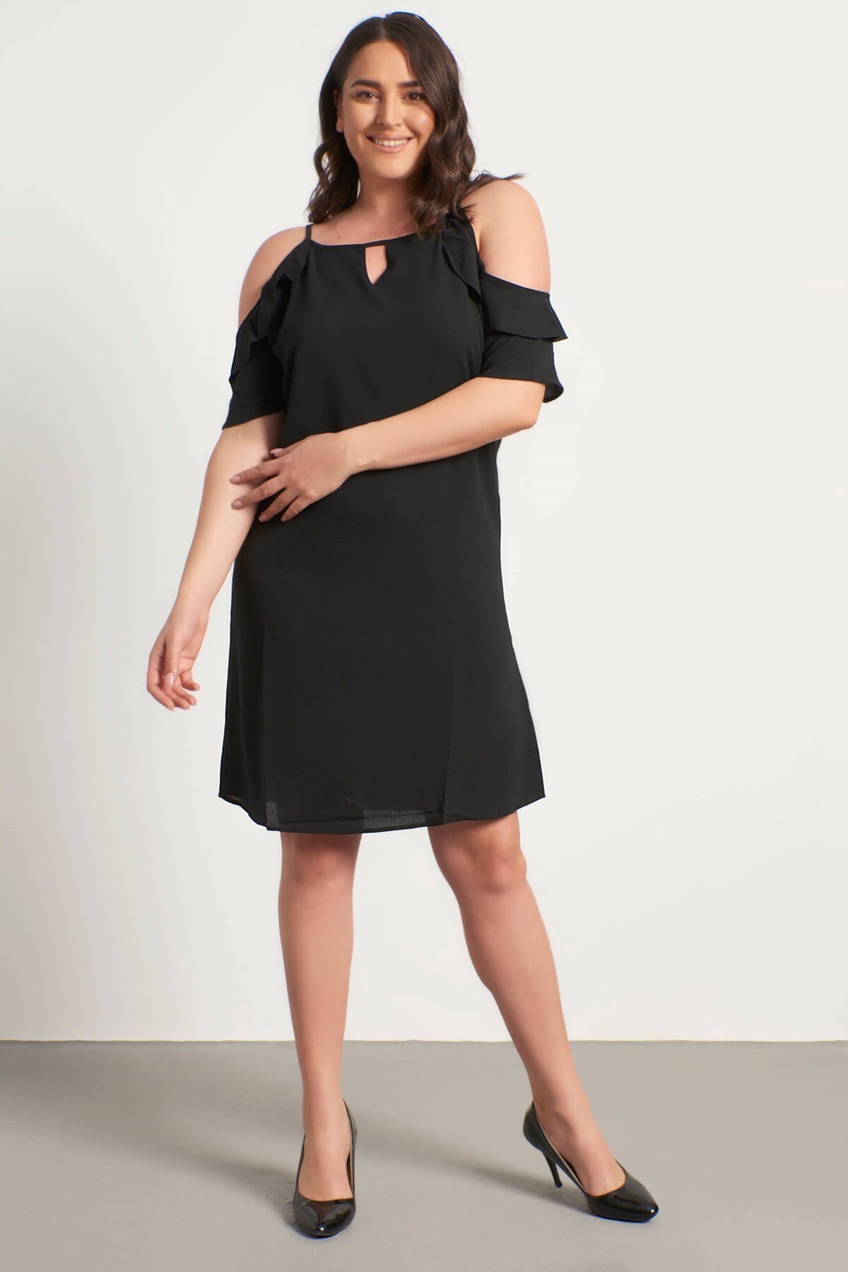 Kolları Pencereli Fırfırlı Elbise
