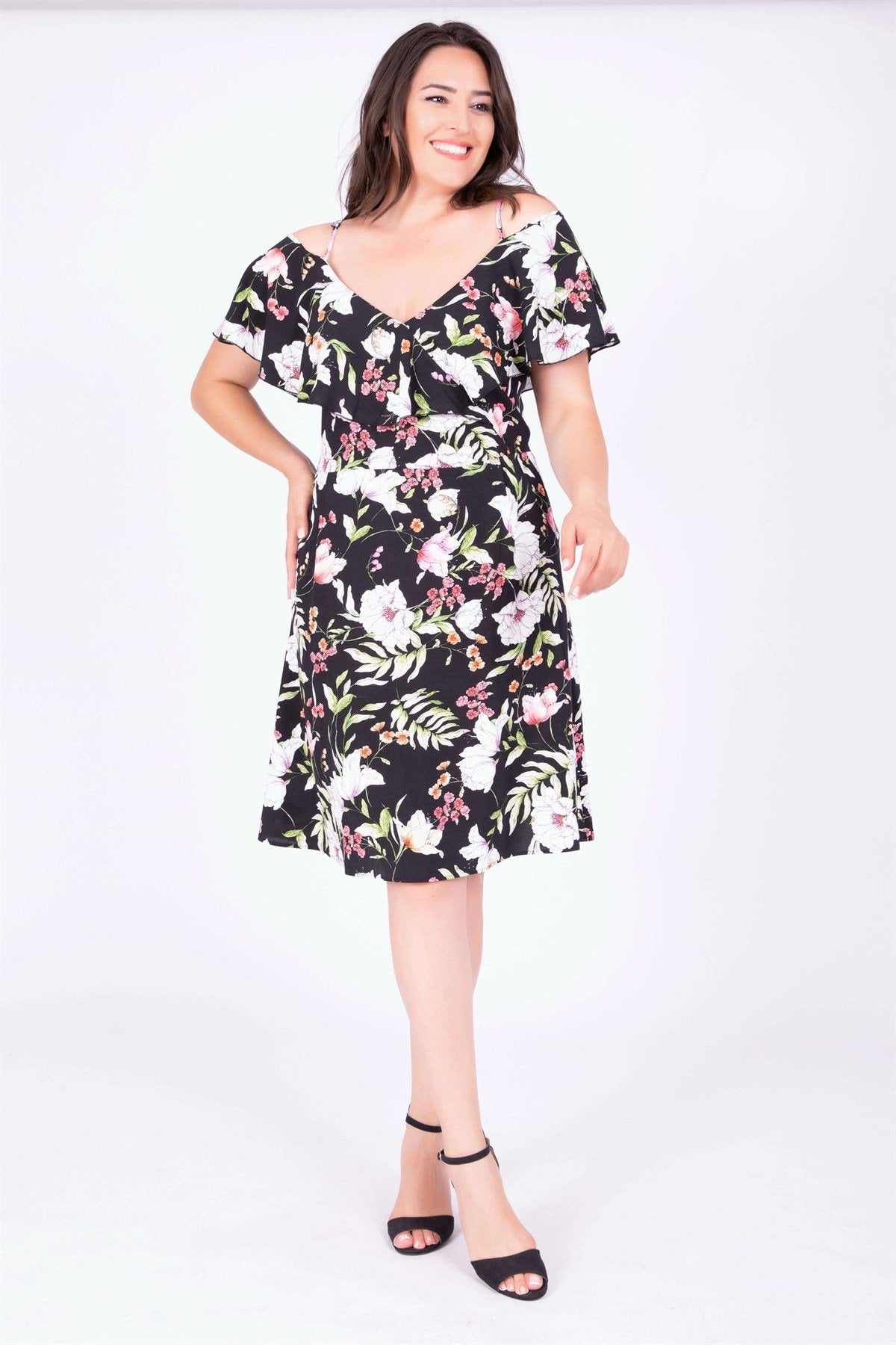 Kolları Volanlı Elbise