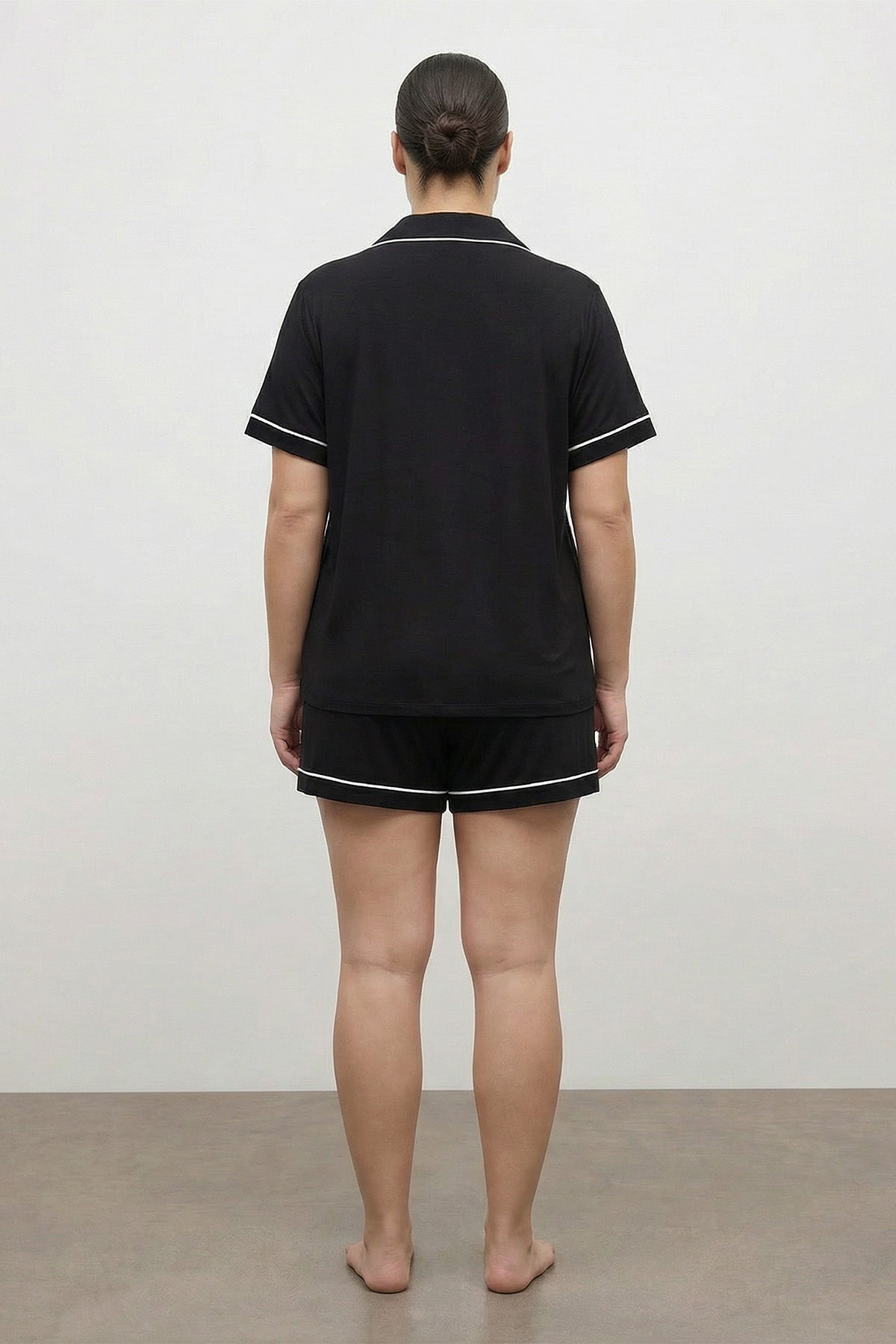 Kontrast Biyeli Şortlu Penye Pijama Takımı