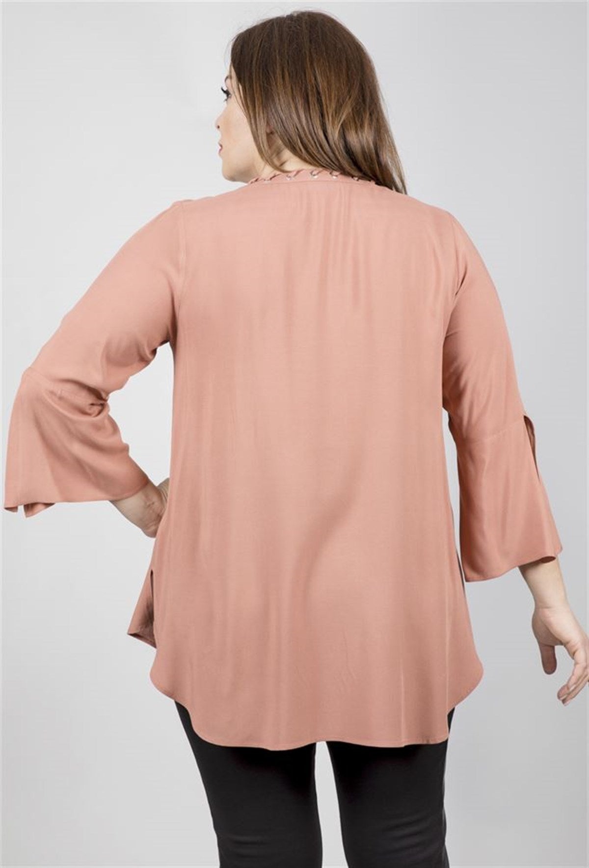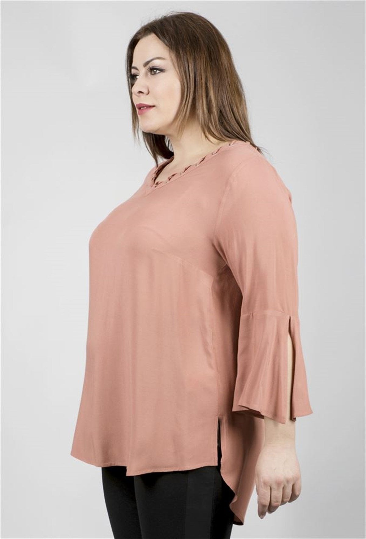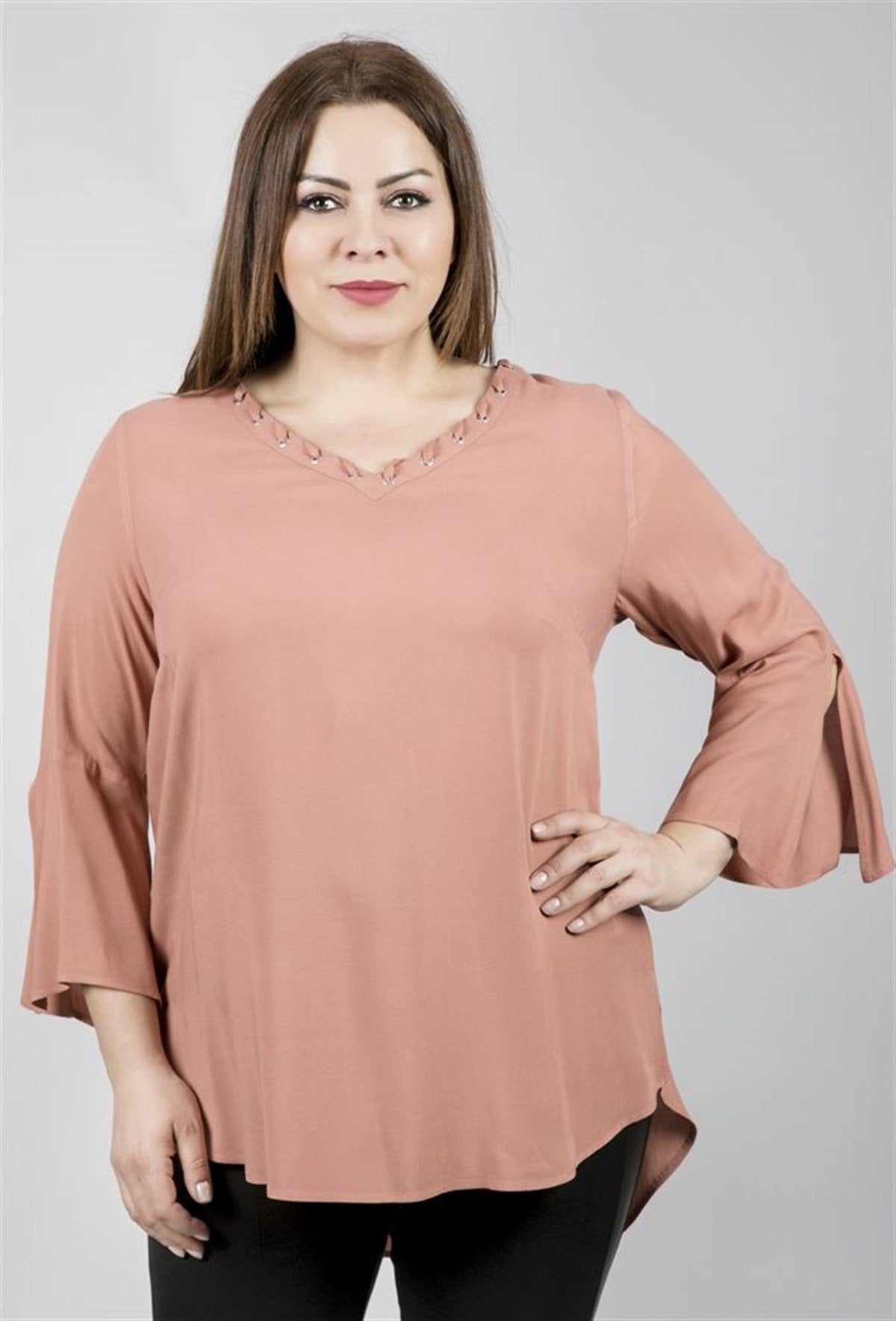 Kuşgözü Detaylı V Yakalı 3/4 Kollu Bluz