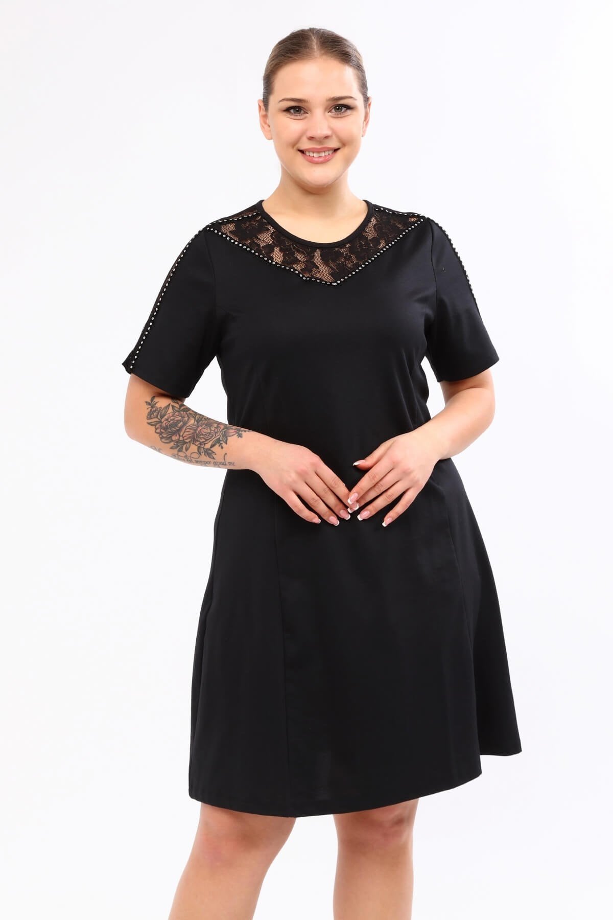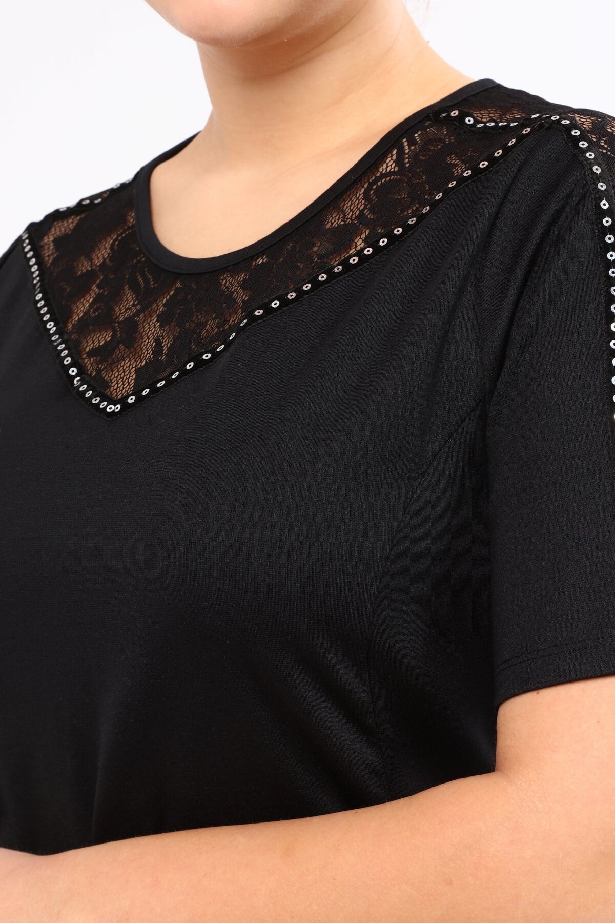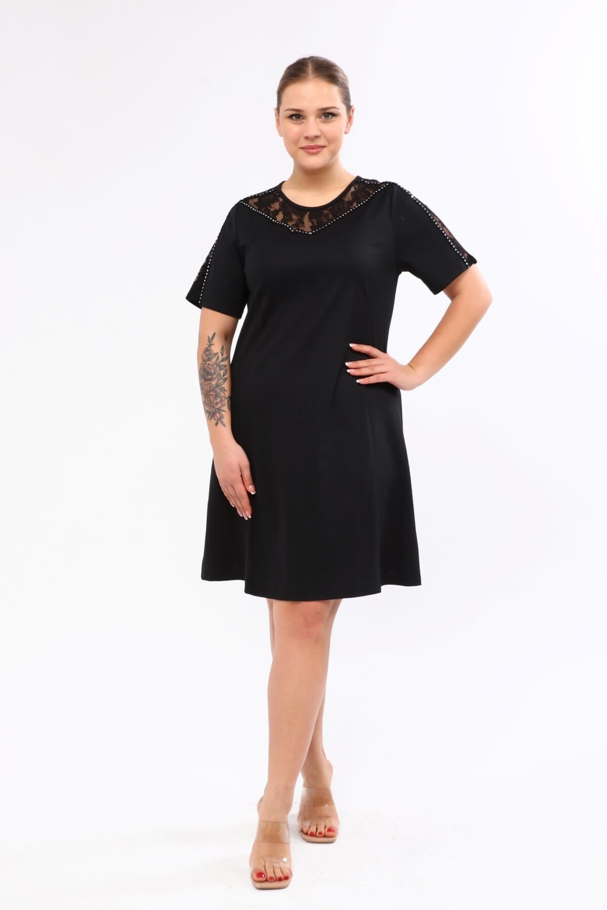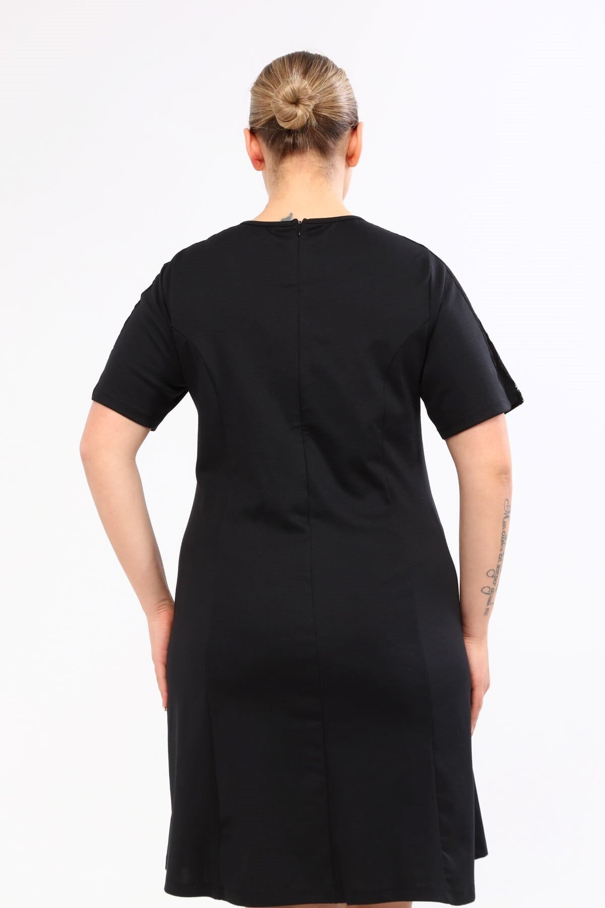 Omuzları Dantel ve Şerit Detaylı Elbise