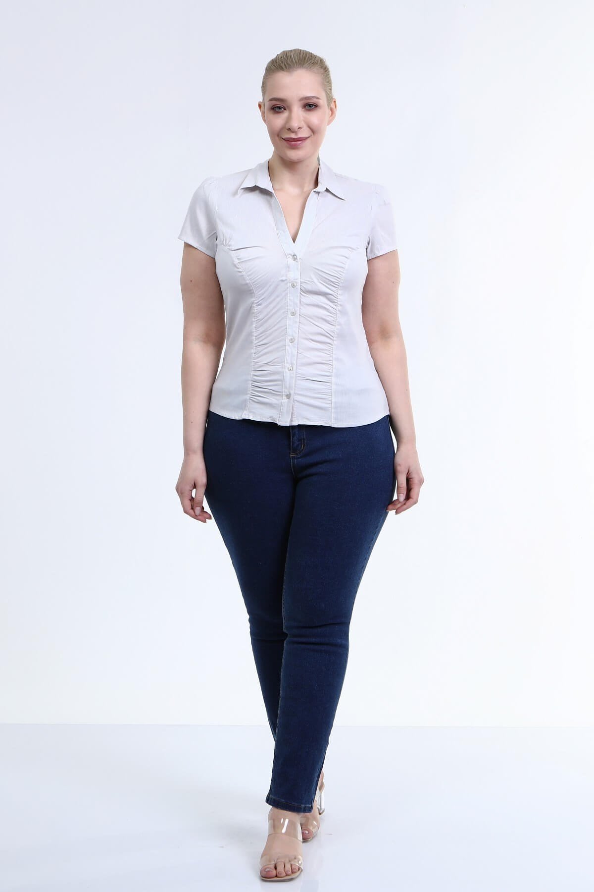 Önü Büzgülü Kısa Kollu Gömlek