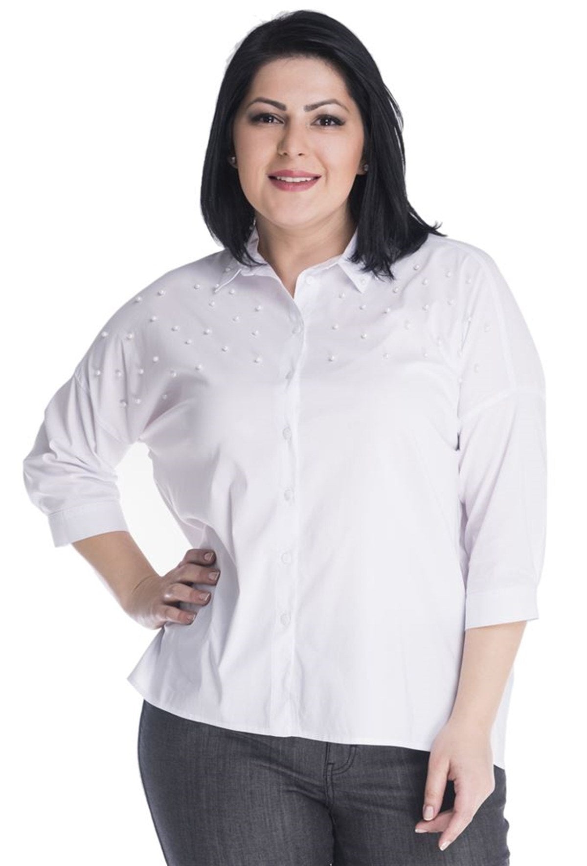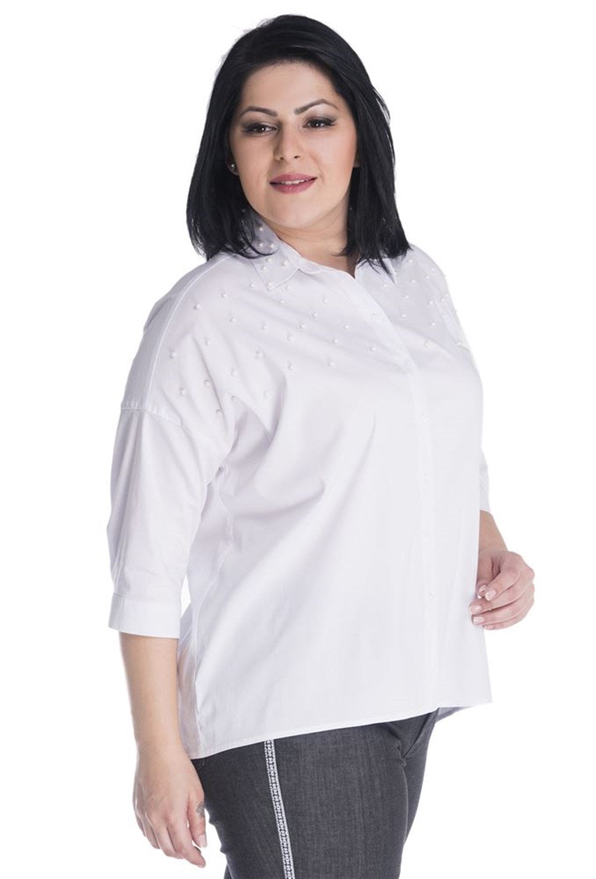 İnci Detaylı 3/4 Kollu Gömlek