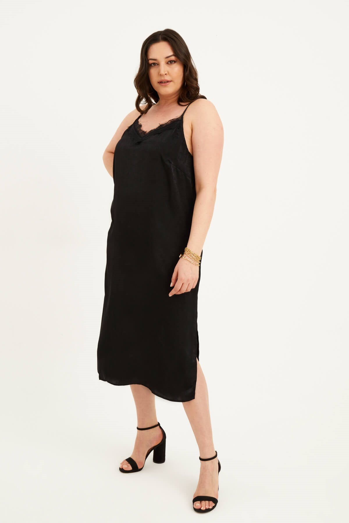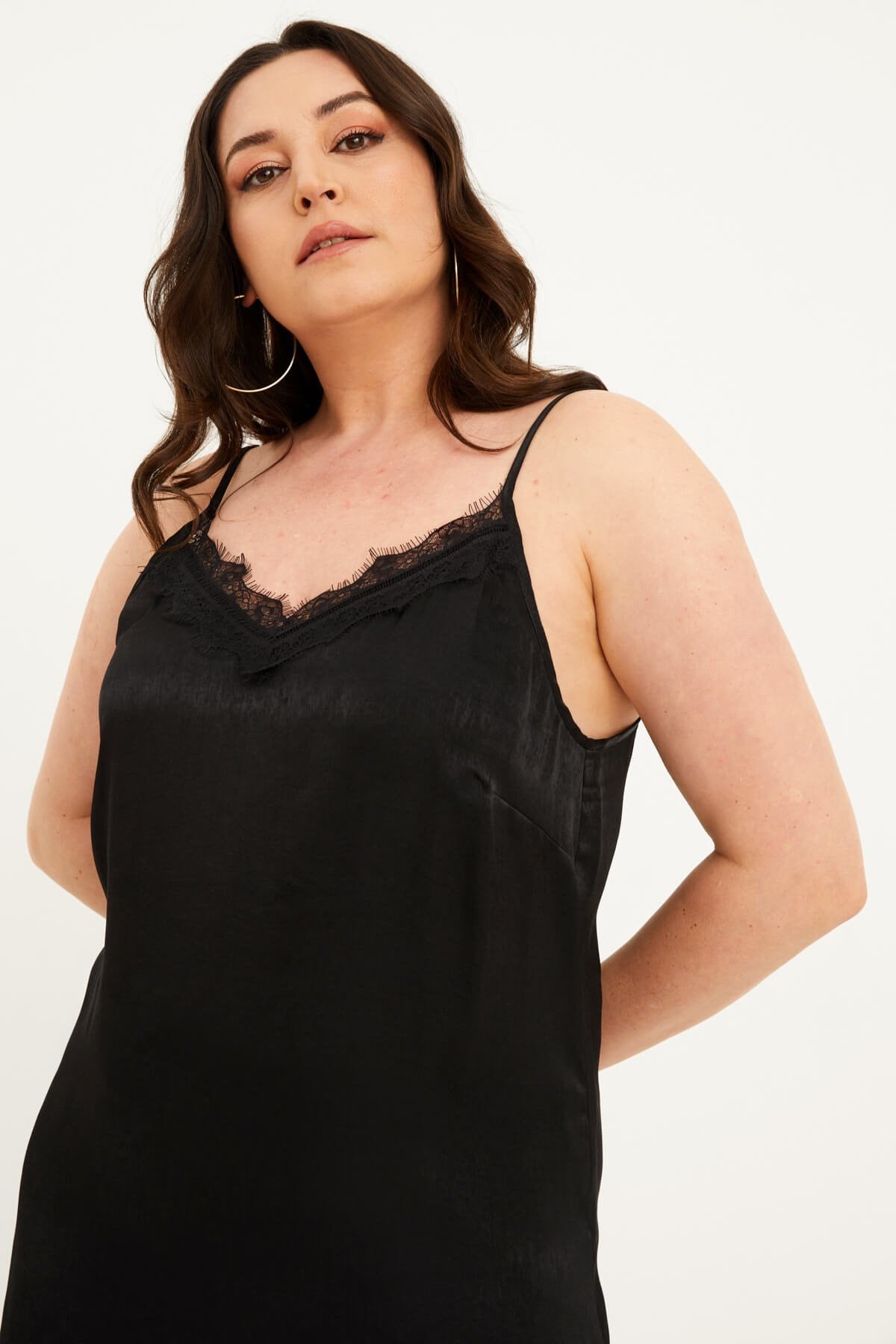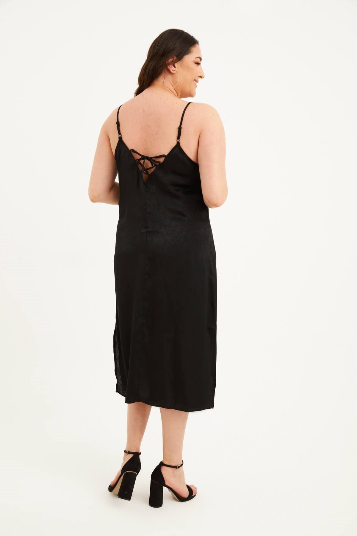 Saten Dantelli Arkası Çapraz Midi Elbise