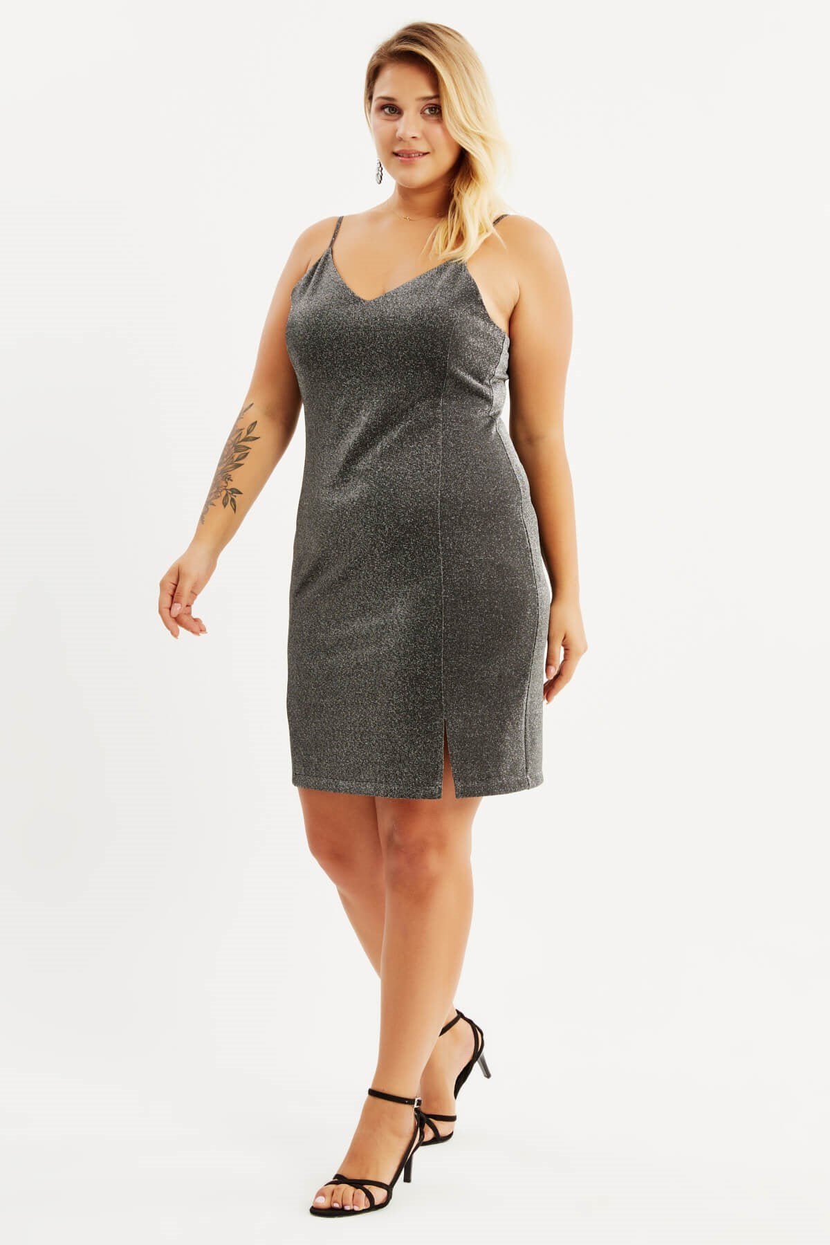 Simli İp Askılı Yırtmaçlı Elbise