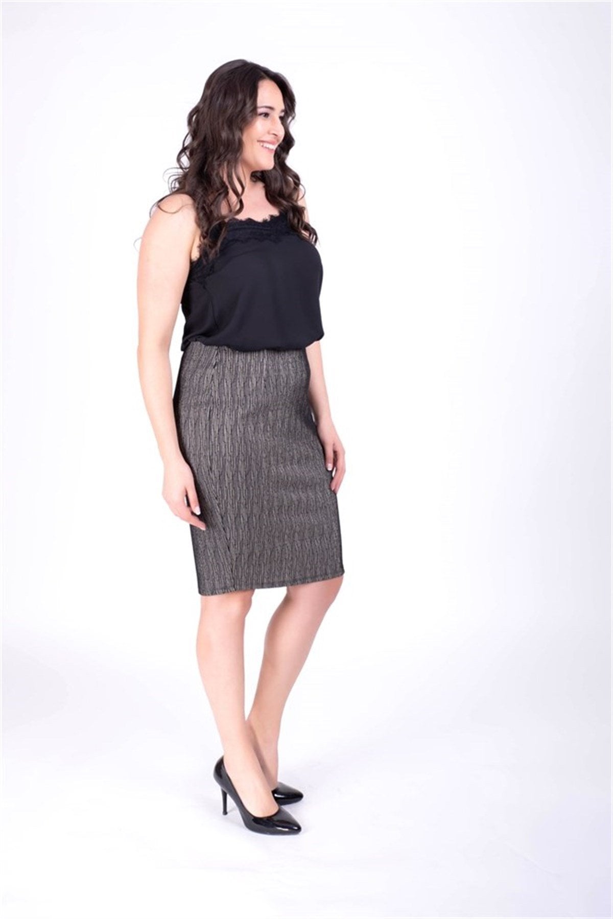 Model Ölçüleri : Boy: 180cm, Göğüs: 100cm, Bel: 84cm, Kalça: 117cm