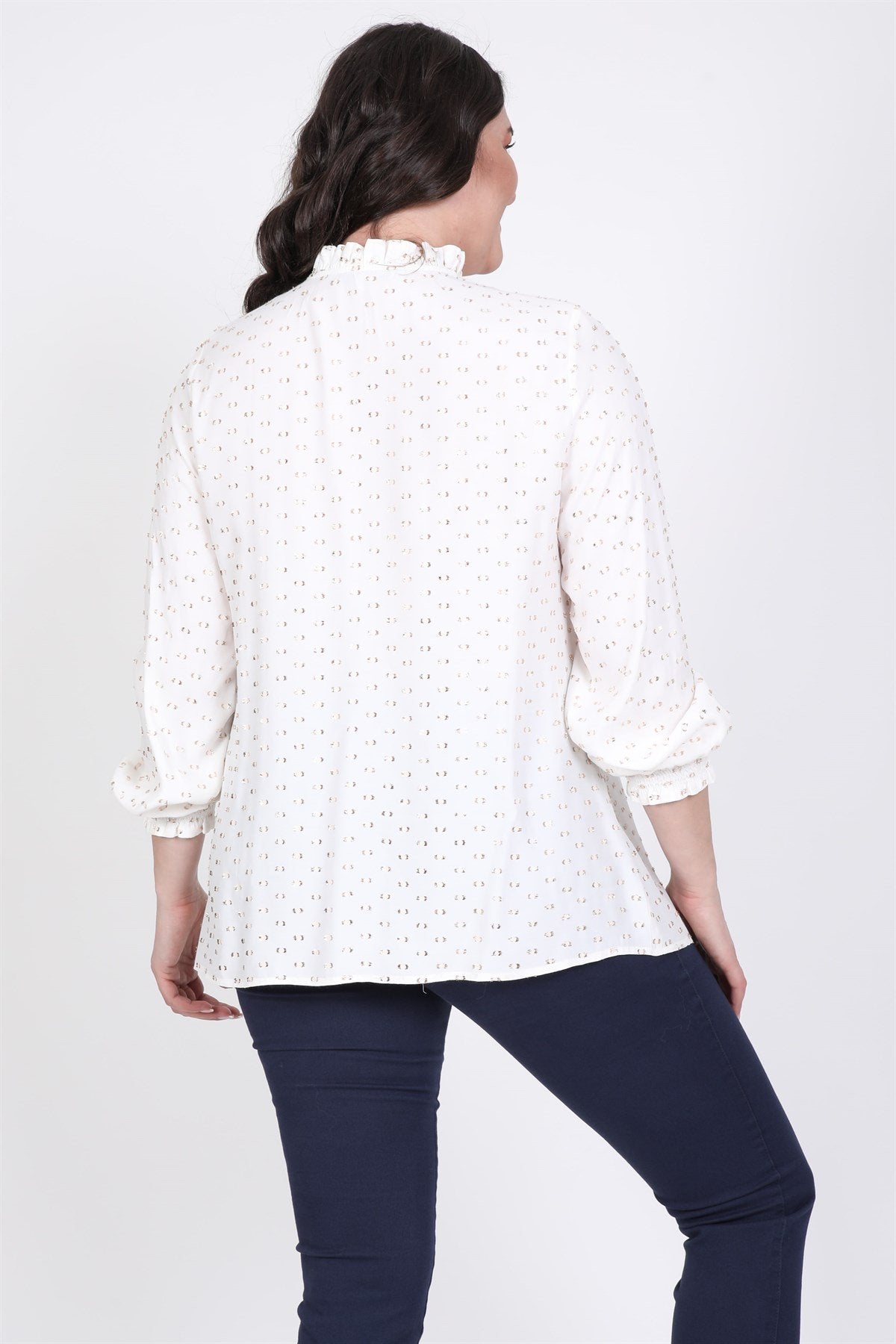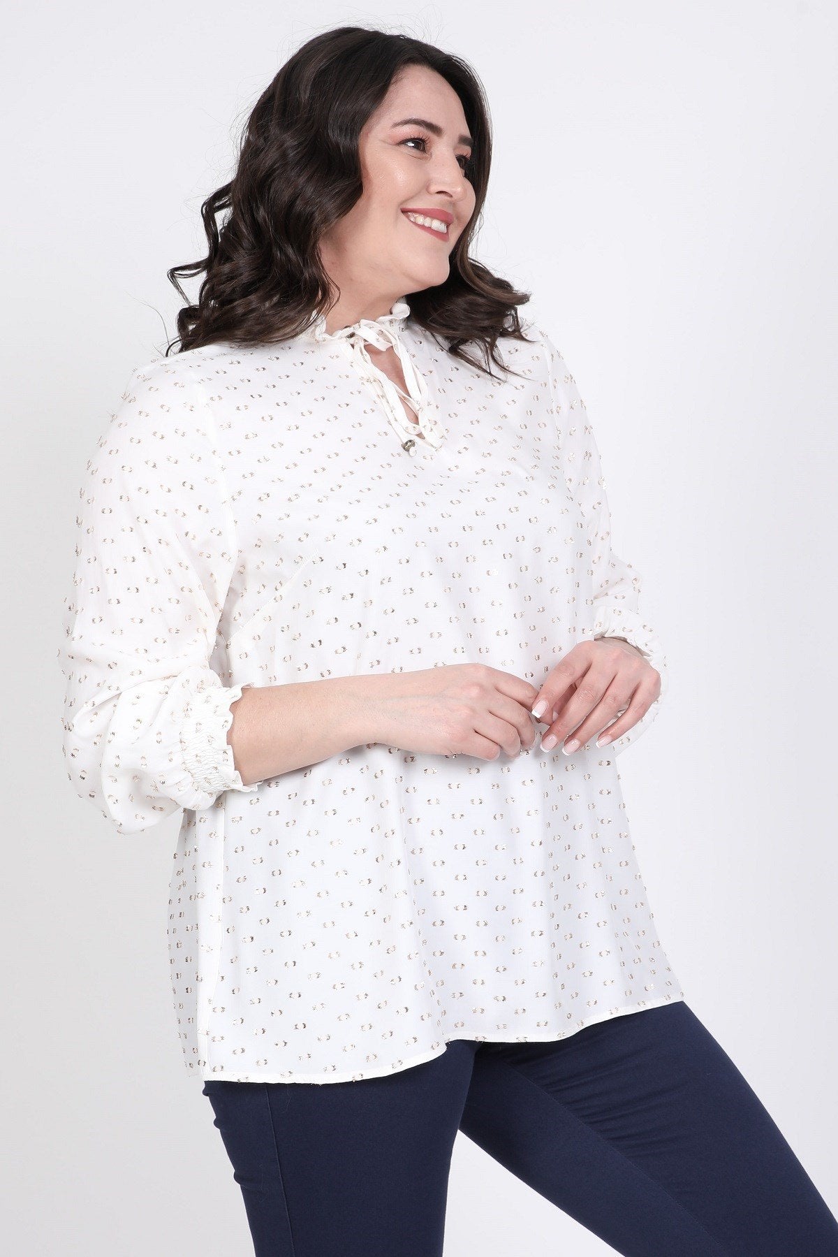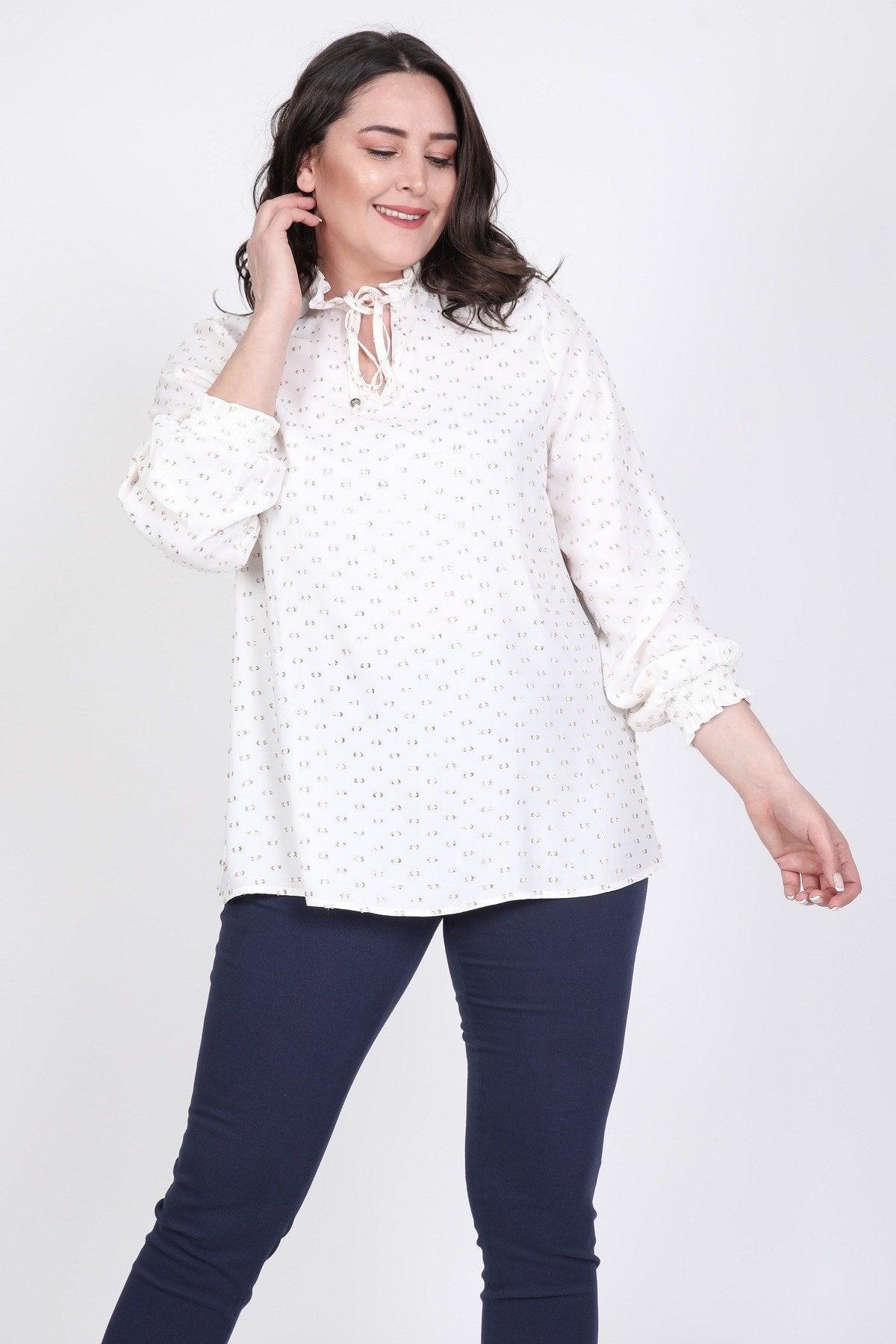 Simli Uzun Kollu Önü Bağcıklı Bluz