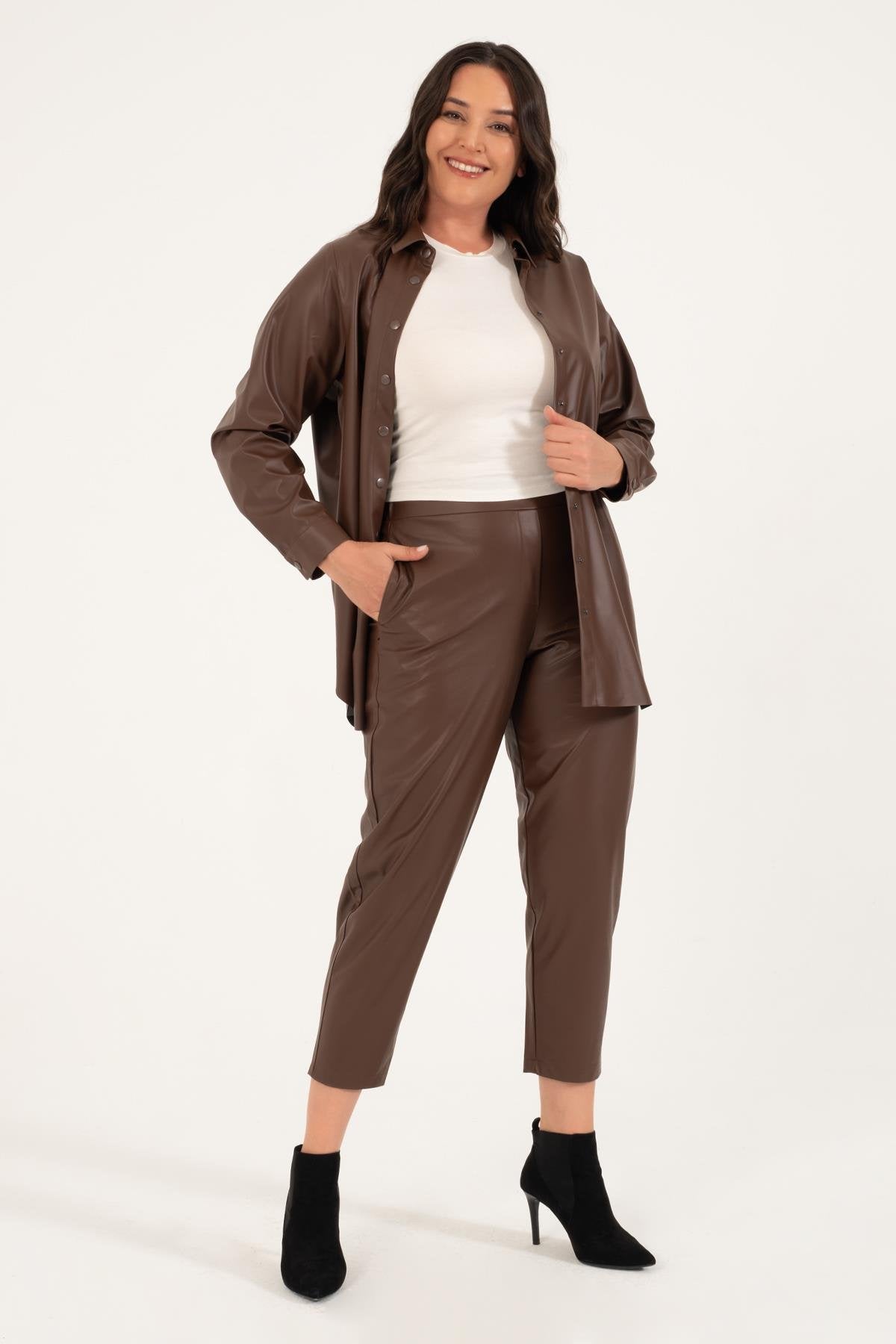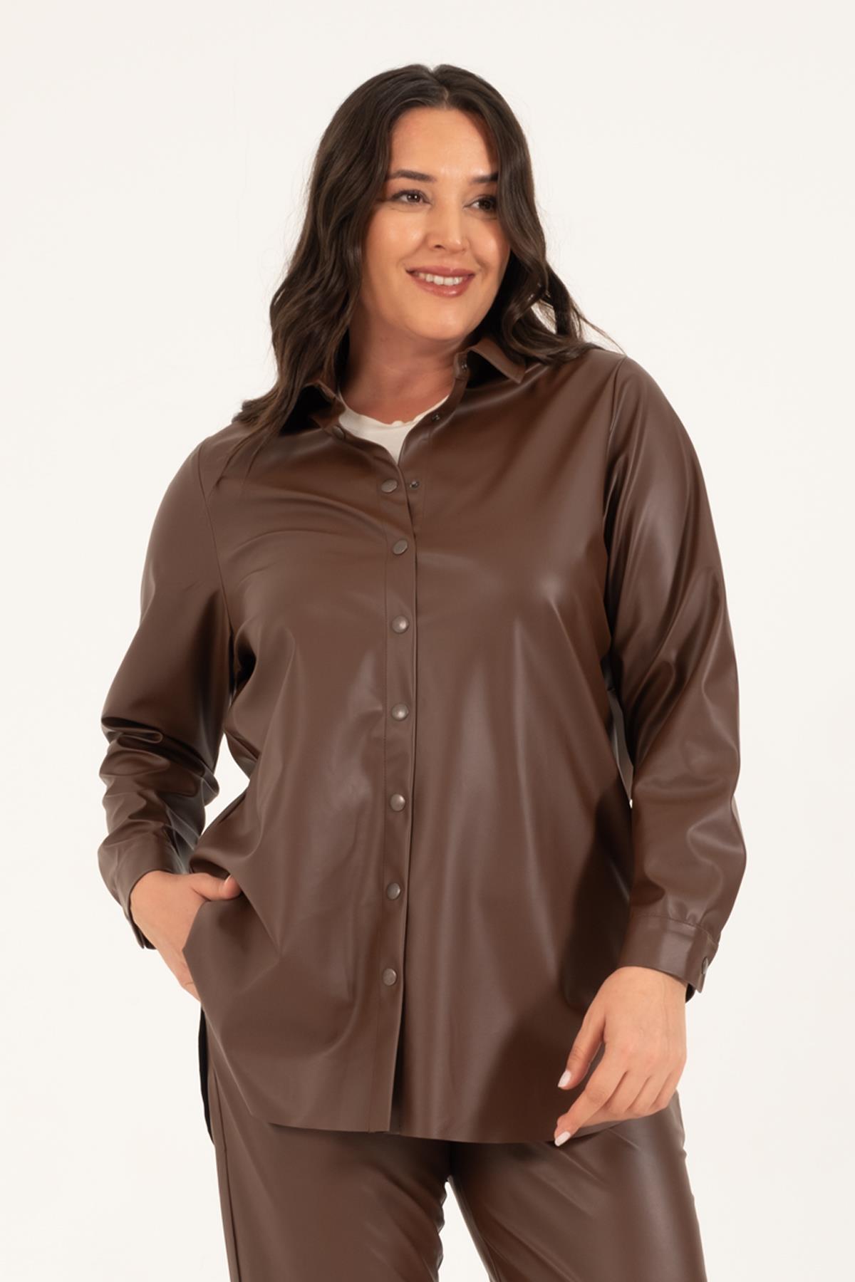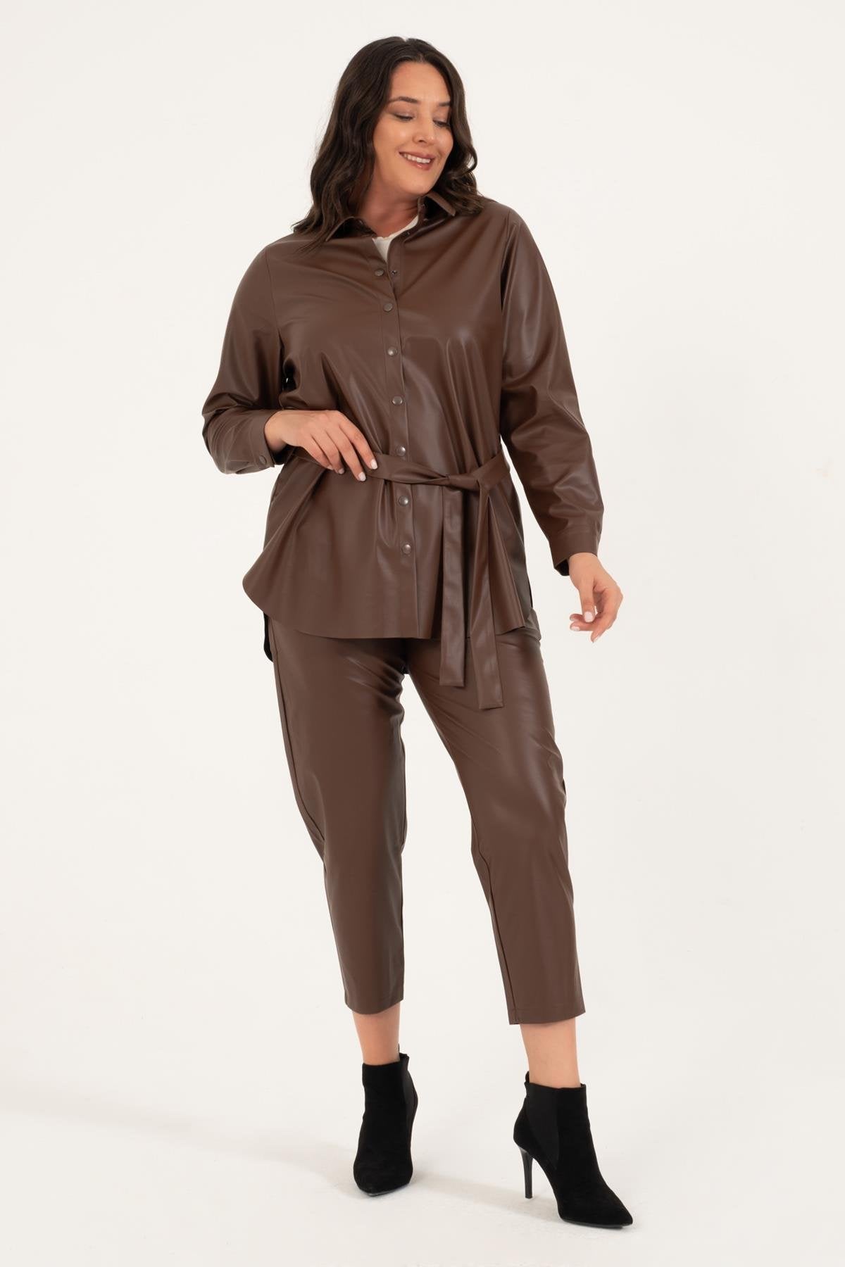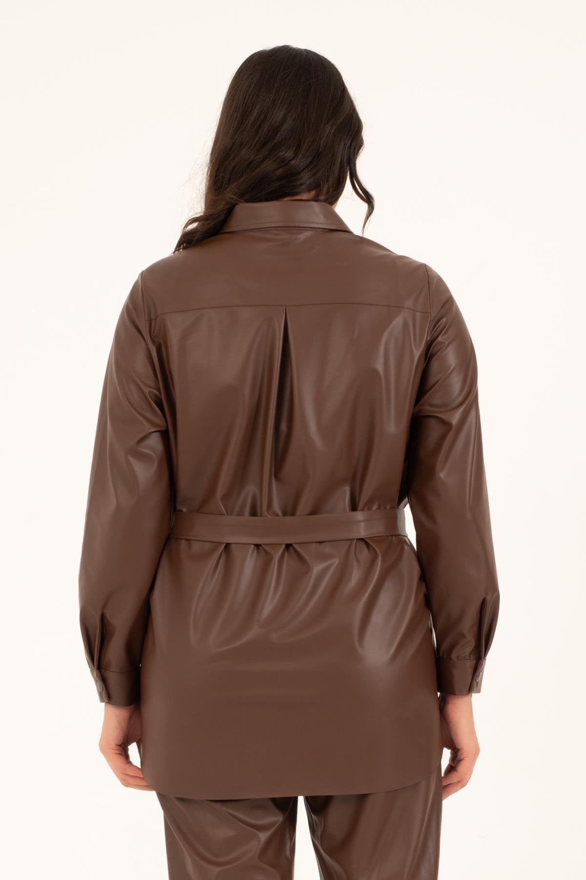 Suni Deri Kuşaklı Gömlek Ceket