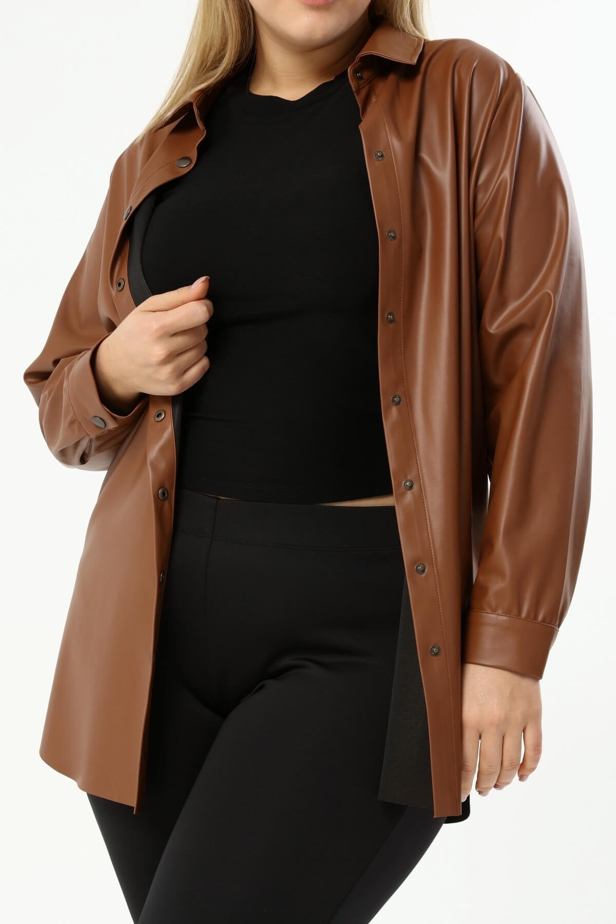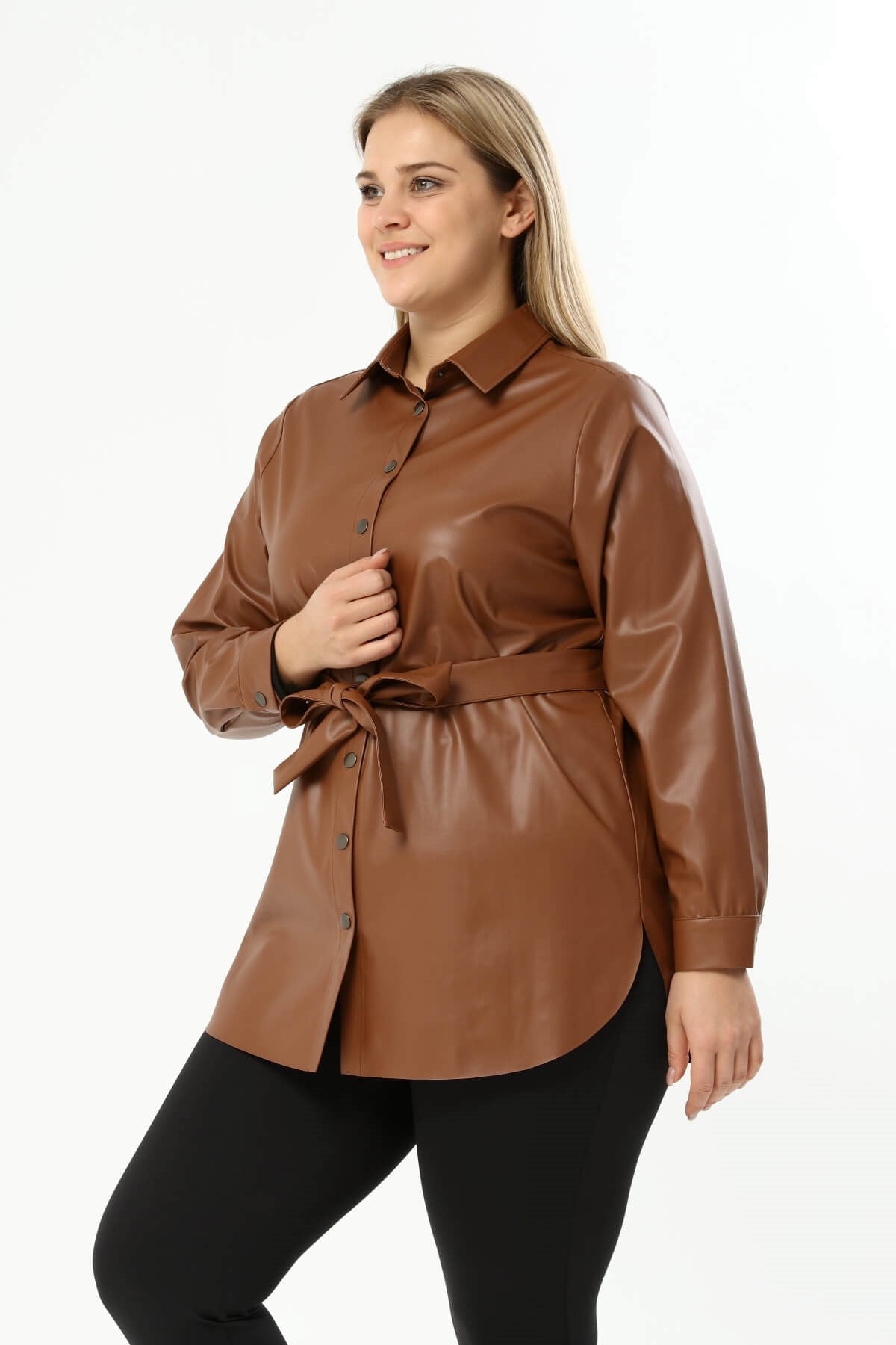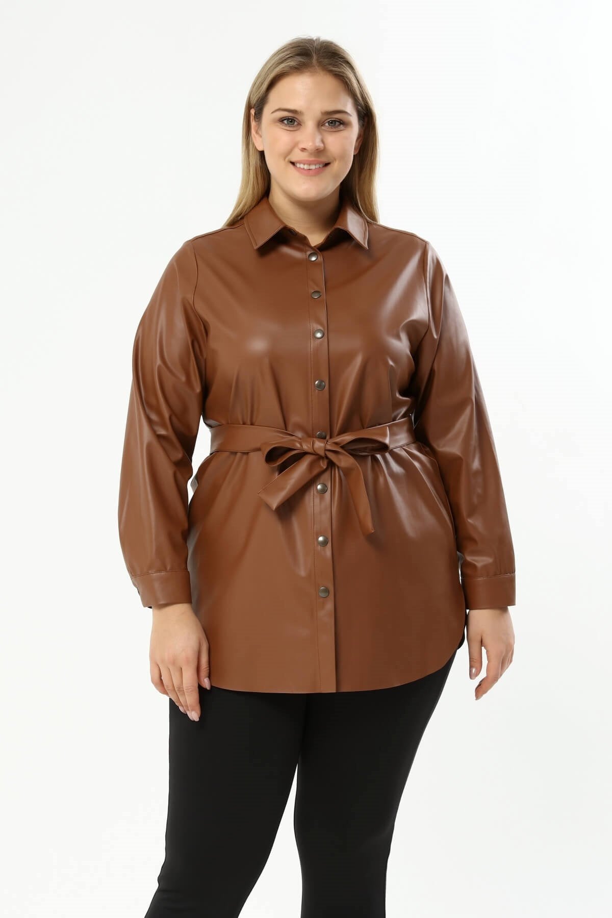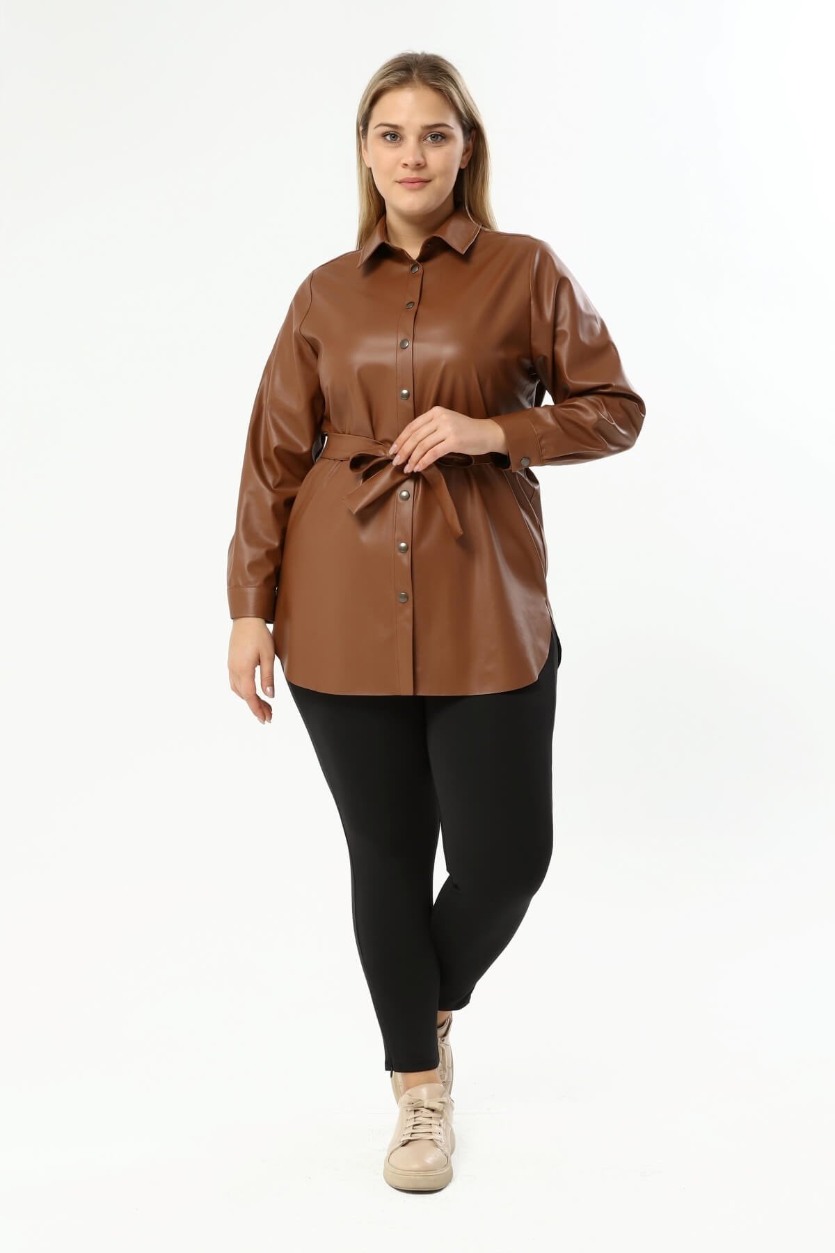 Suni Deri Kuşaklı Gömlek Ceket
