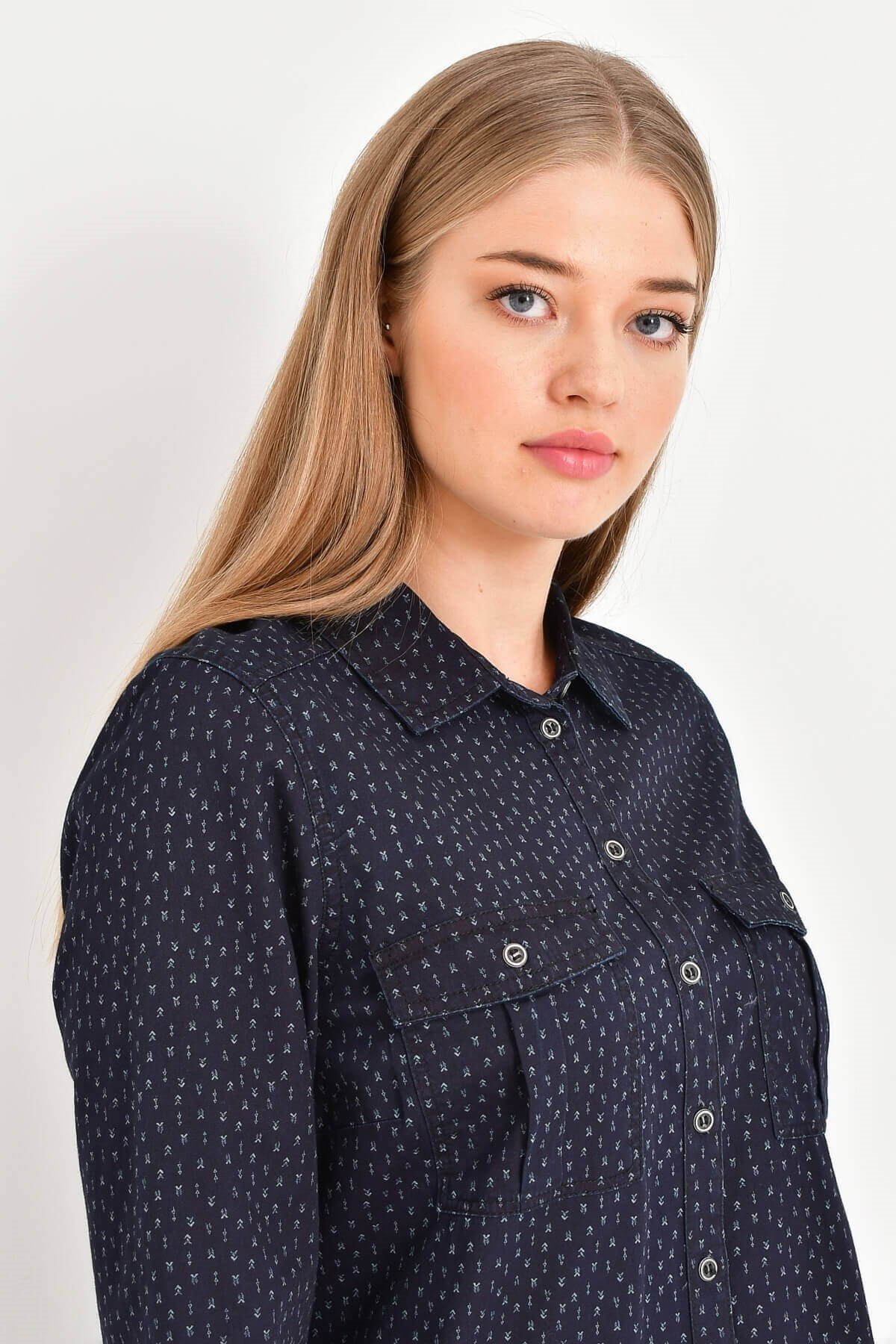 Uzun Kollu Desenli Denim Tunik