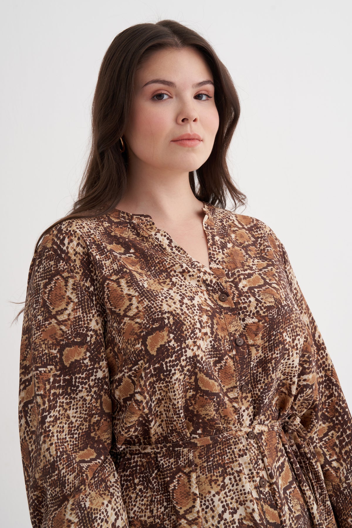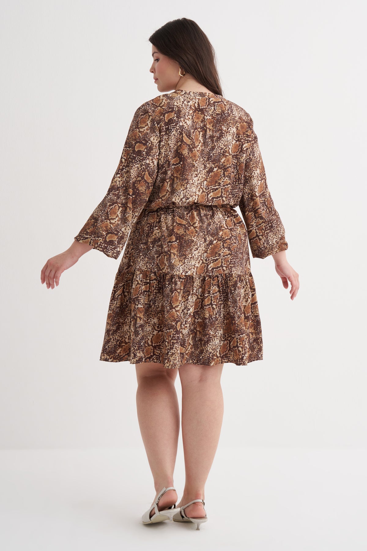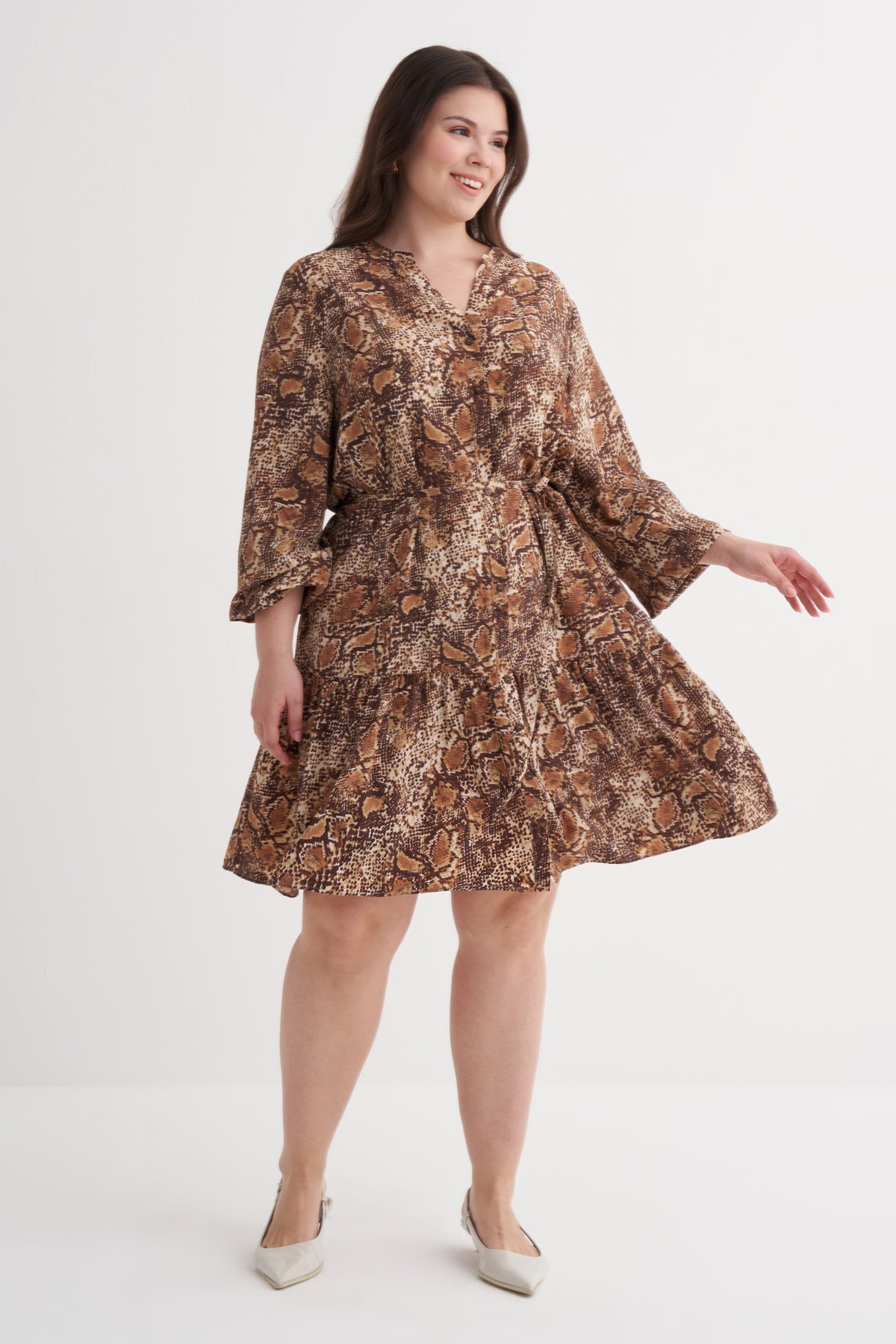 V Yaka Fırfır Detaylı Kuşaklı Elbise