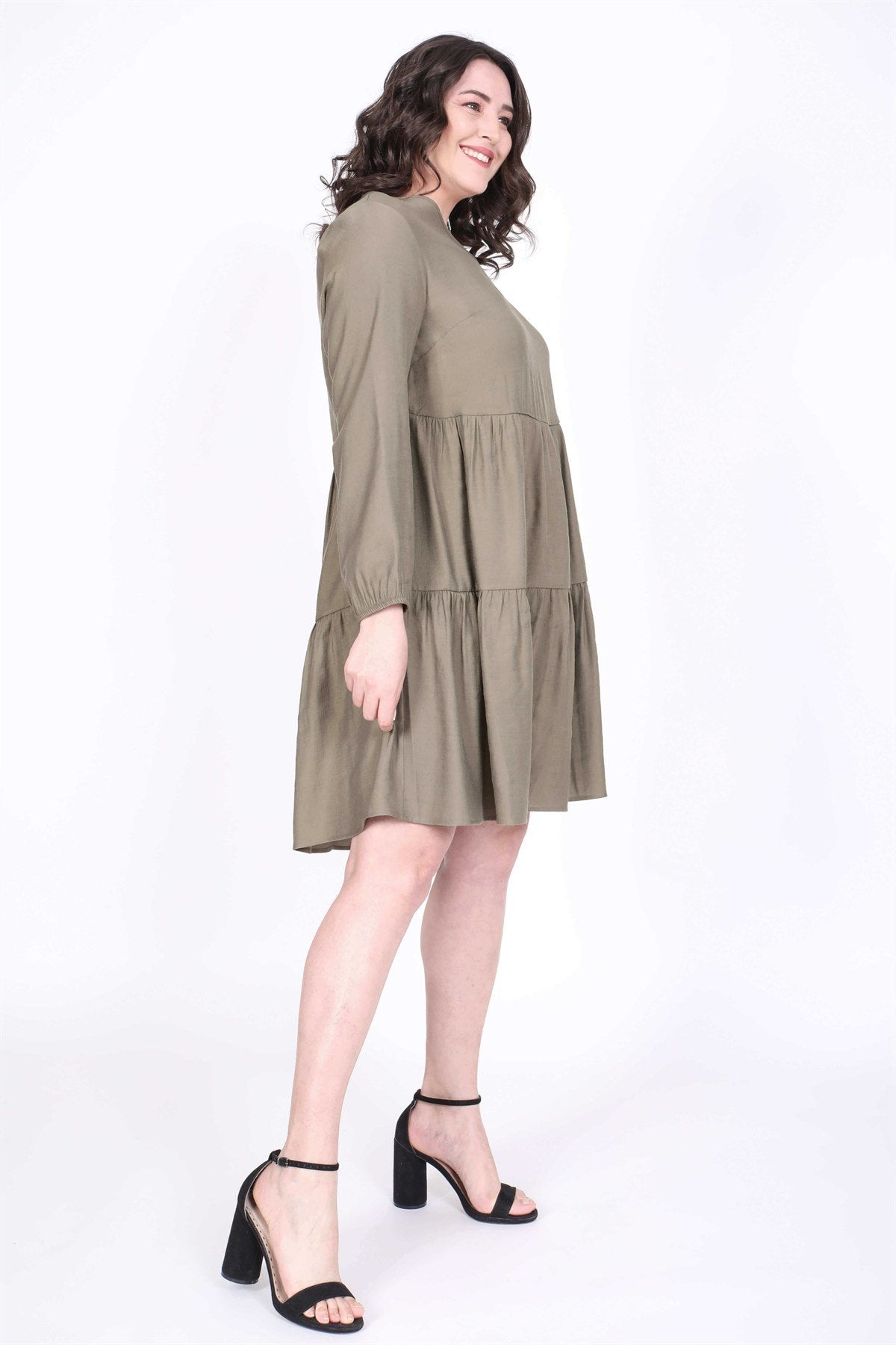 V Yaka Katlı Elbise