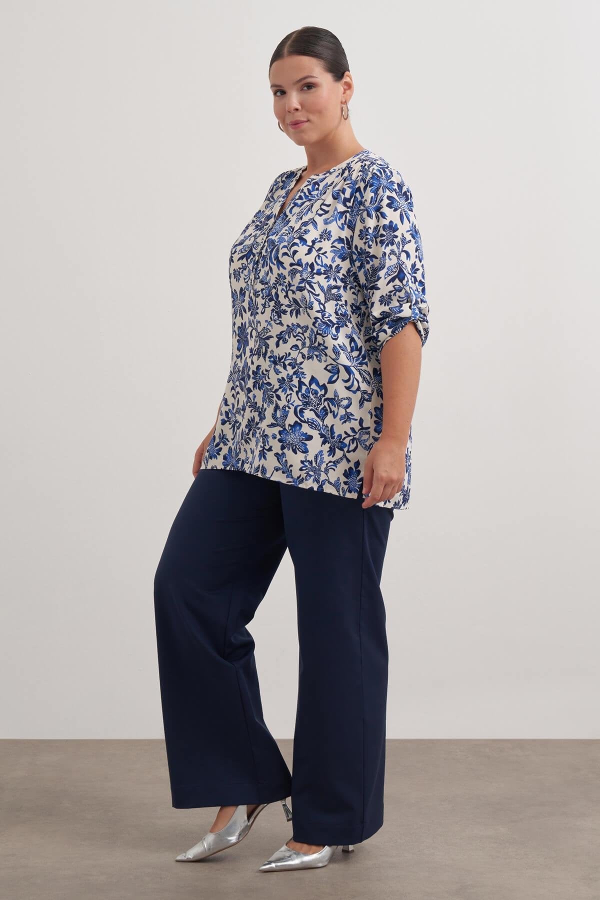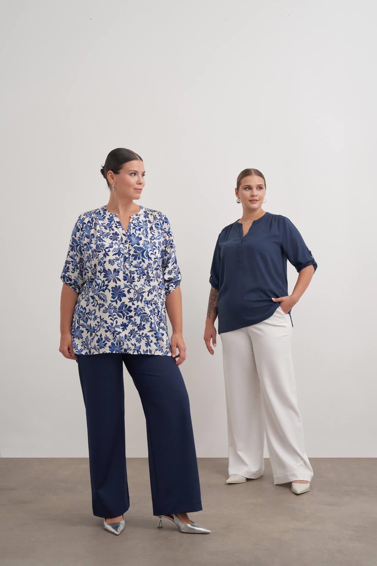 Viskon Kıvrık Kollu Bluz